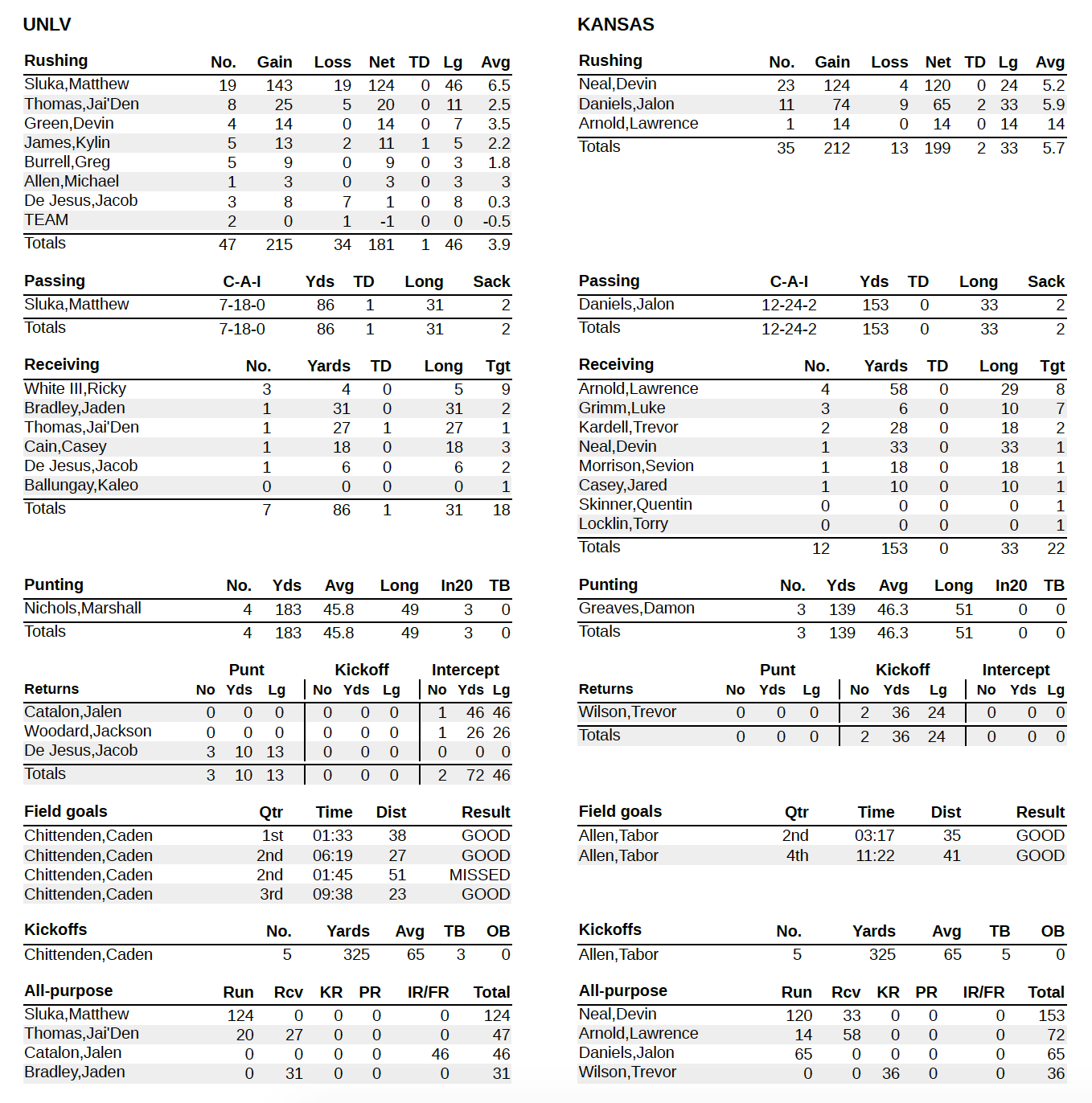 From there, the KU offense, even with two timeouts to use, could not pick up a first down on its final drive of the night and the game ended with a Jalon Daniels sack on fourth down and a couple of UNLV kneel-downs.