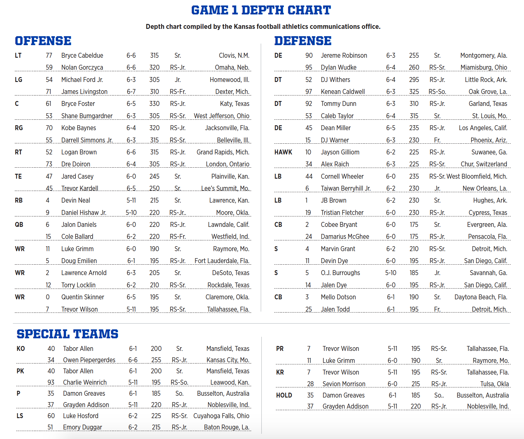 In many spots, the lack of an OR was obvious and an absolute no-brainer. But those OR’s have been on KU depth charts for more than a decade, and football coaches are famous for being as confidential as possible with this type of information, so it was great to see it on Monday when the initial depth chart of the 2024 season was released.