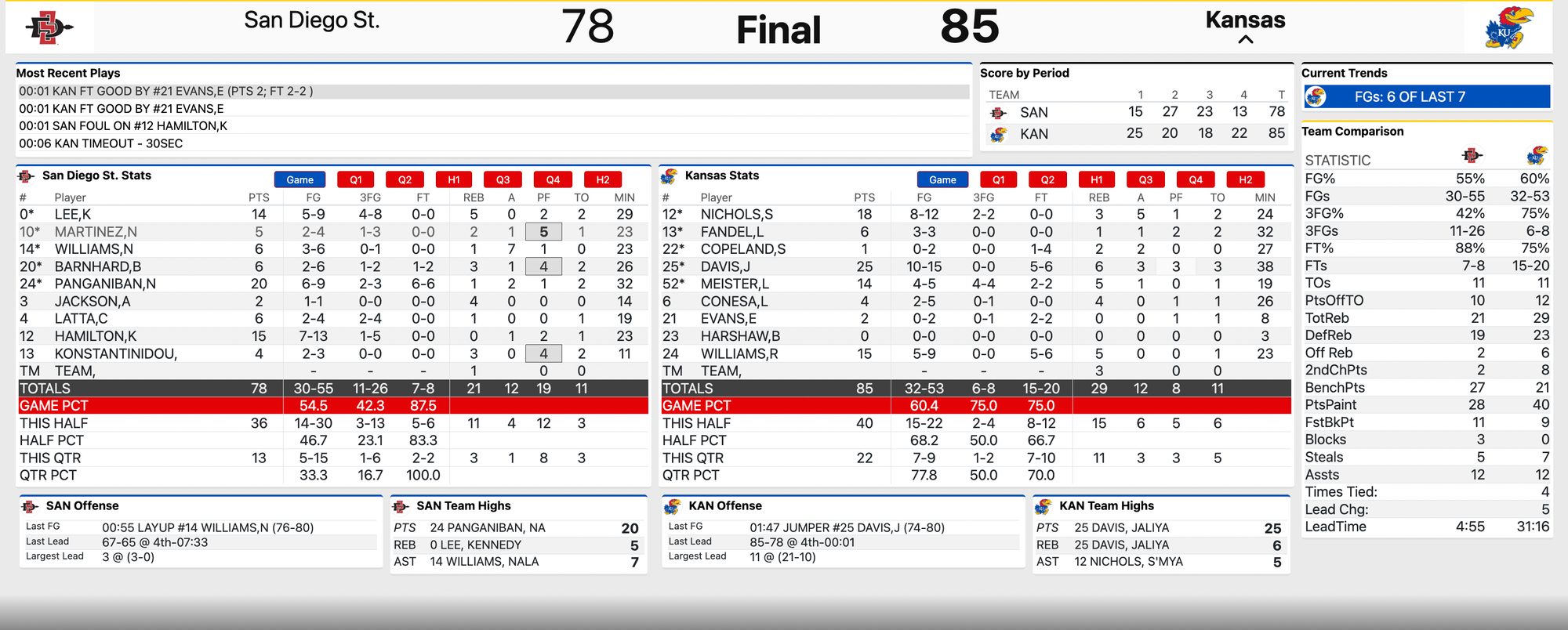 During that final stretch, SDSU cut a 6-point KU lead to 2 and actually had a shot inside the final minute to take the lead.