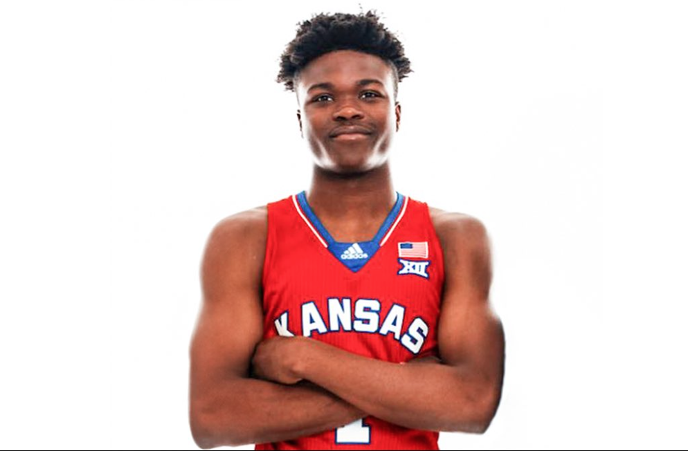 Freshman Rakease Passmore in his new gear during his visit to KU. [Kansas Athletics photo]
