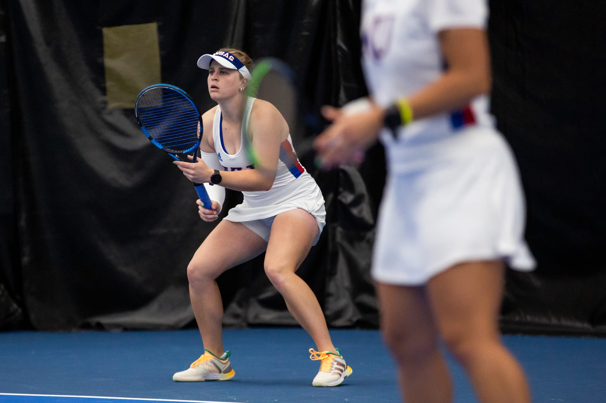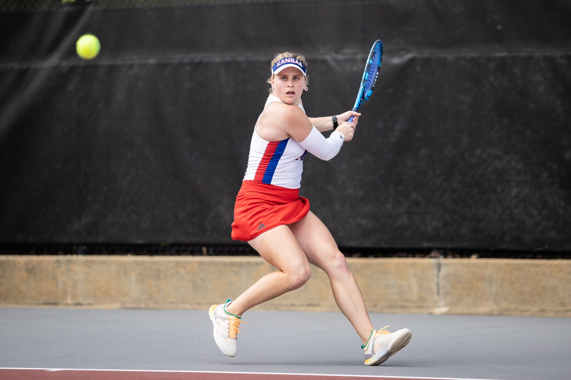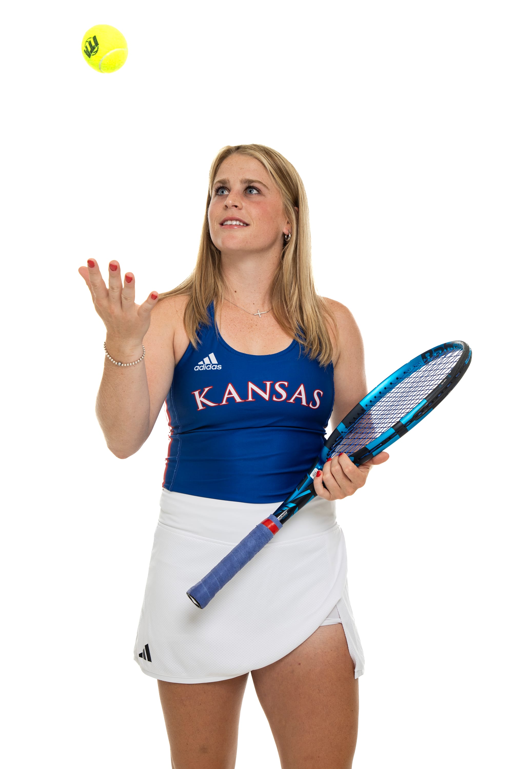 “Every day going on the tennis court is a new challenge here,” she said. “It’s been overwhelming at times, but it taught me to embrace being uncomfortable and being resilient. I’m really grateful to my coaches because life after tennis is going to be hard, with moments when you’re uncomfortable. Learning to deal with those makes you stronger, and that’s something being at Kansas has prepared me for.”
