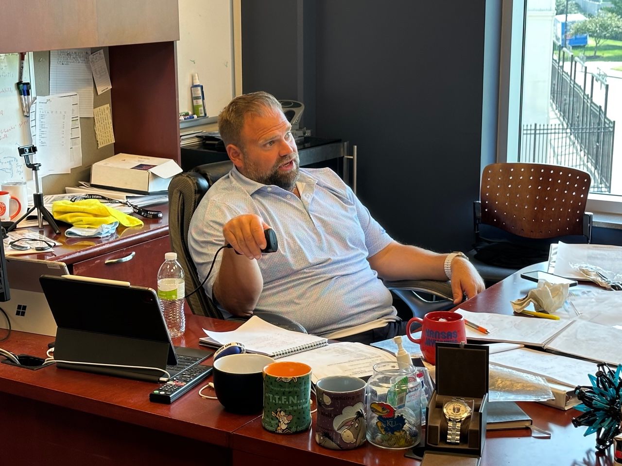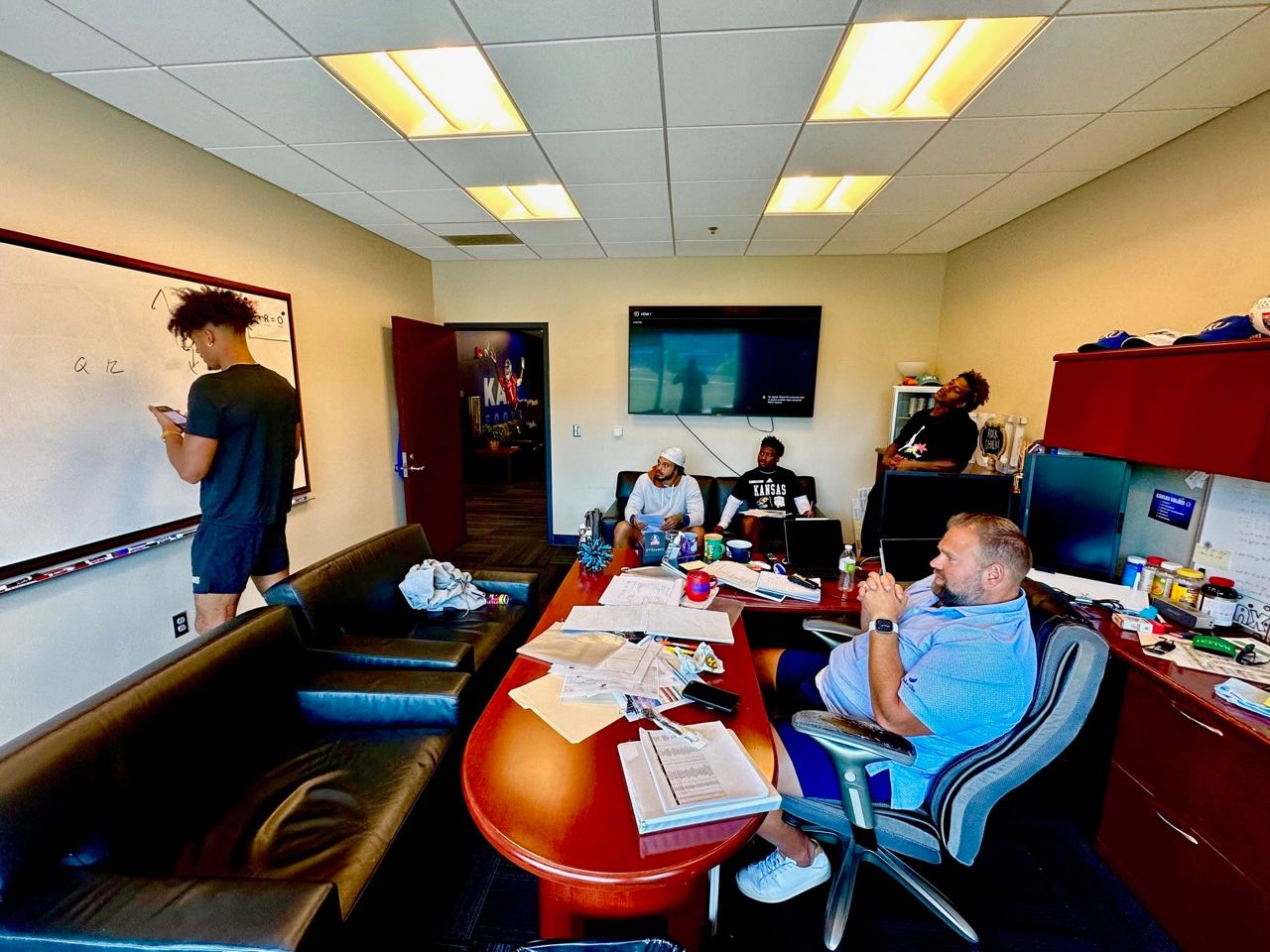 Around this time, KU head coach Lance Leipold, whose office is just one door over, peeked his head into the room.