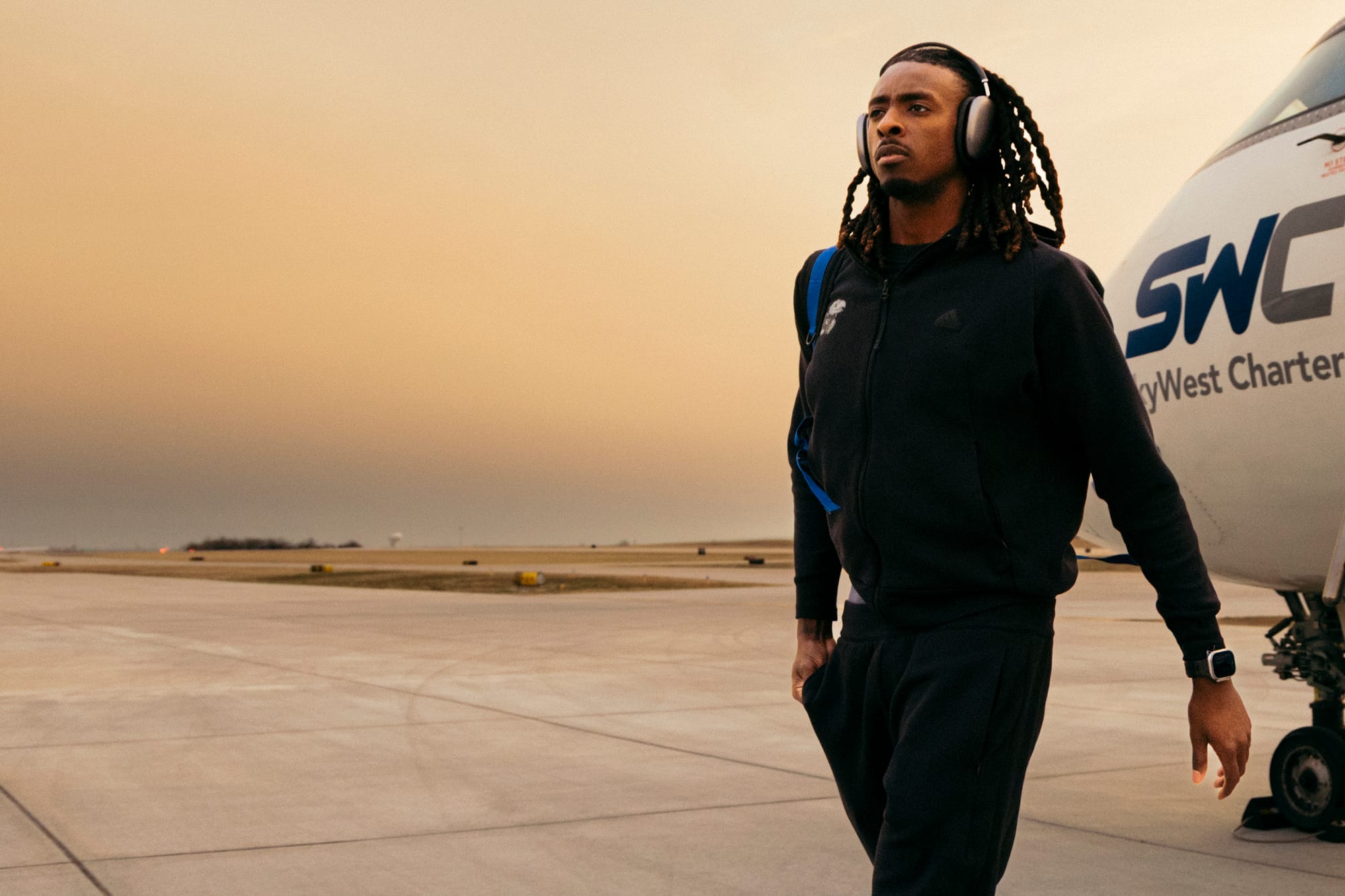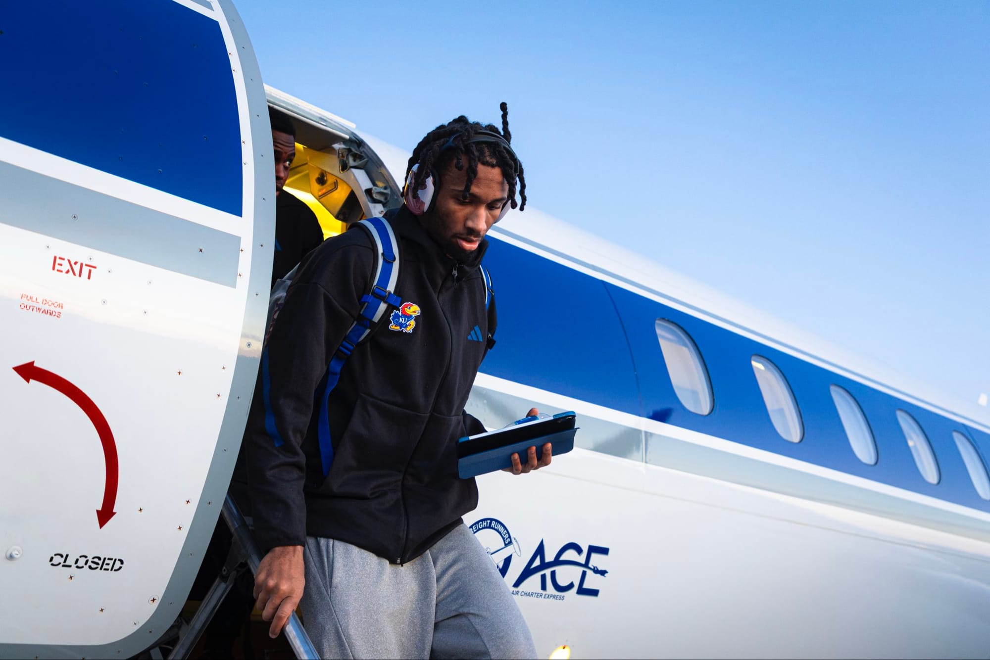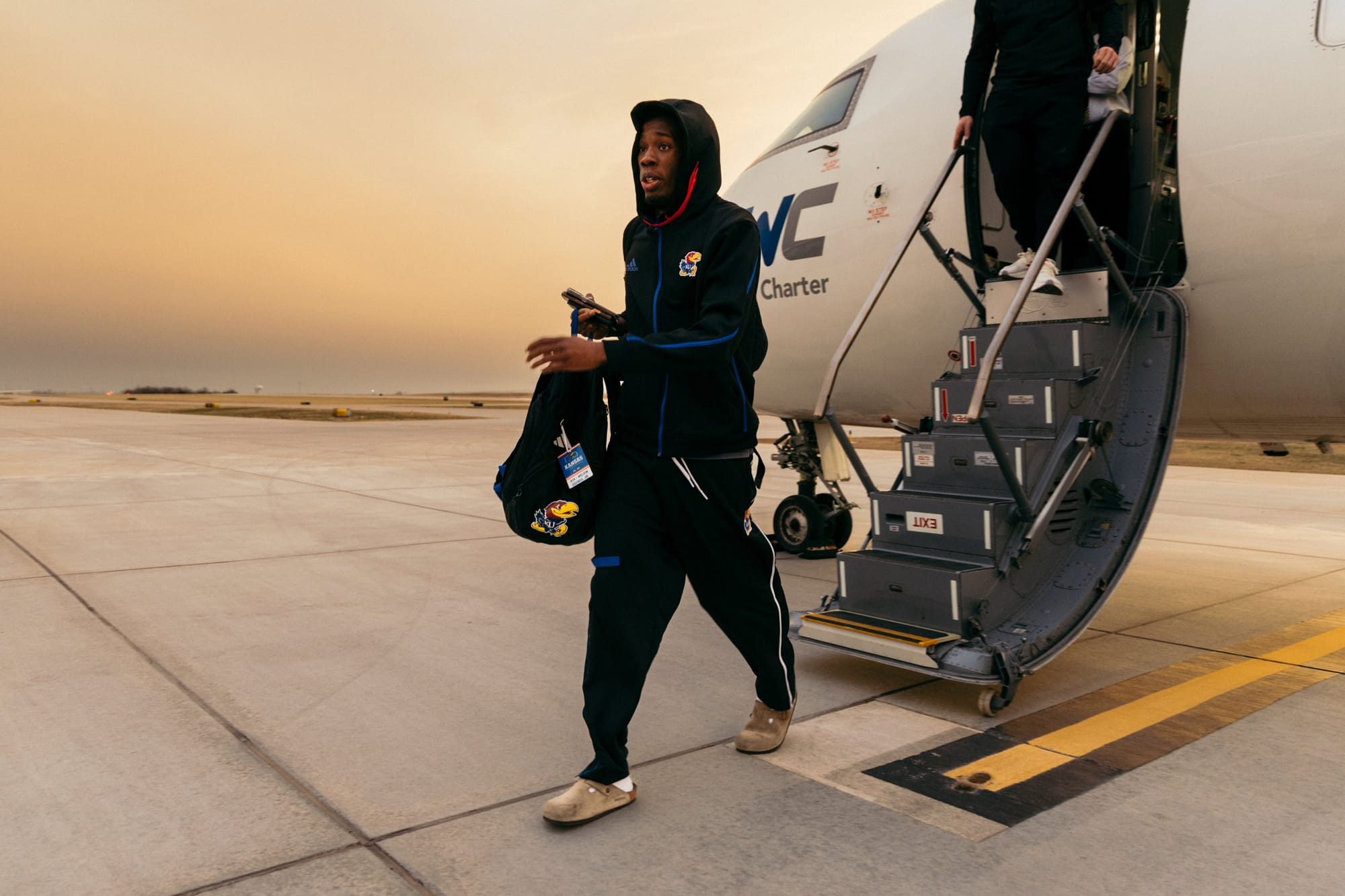 Scenes from KU's arrivals at various away games from earlier this season. [Kansas Athletics photos]