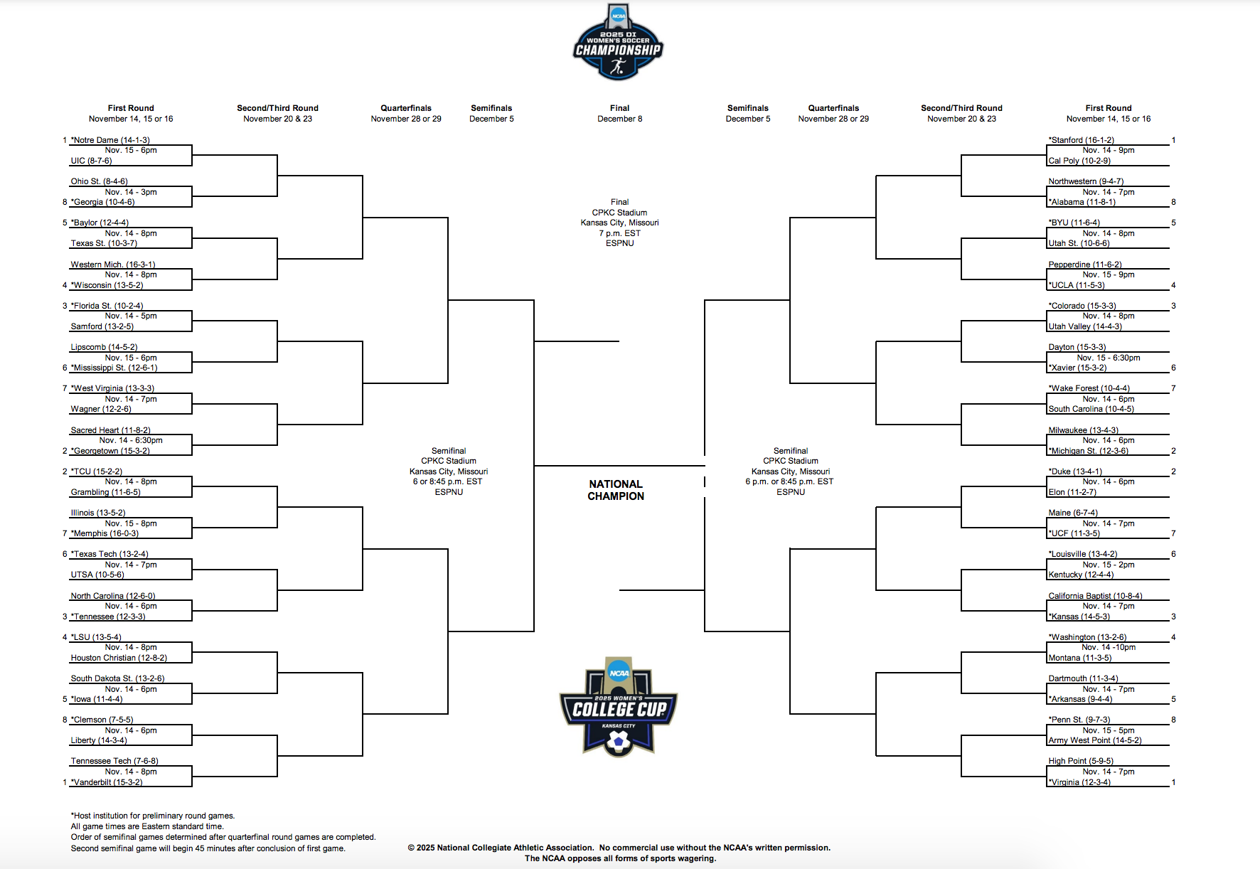 Win Friday — kickoff is slated for 6 p.m. on ESPN+ — and the Jayhawks would advance to Round 2, most likely on the home field of No. 2 seed Duke, the following week. KU’s second-round opponent, should they get there, would be the winner of the match between No. 6 seed Louisville and Cardinals rival Kentucky.