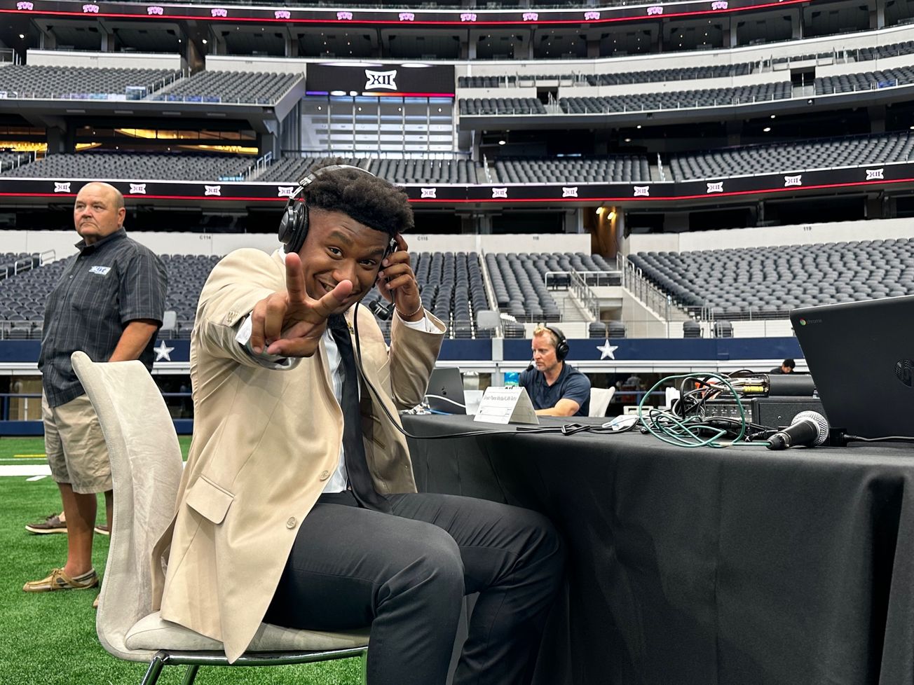 Arlington, Texas — Four Kansas football players and head coach Lance Leipold took their turn in front of the Big 12 Conference media on Wednesday for Day 1 of the annual Big 12 Media Days event at AT&T Stadium.