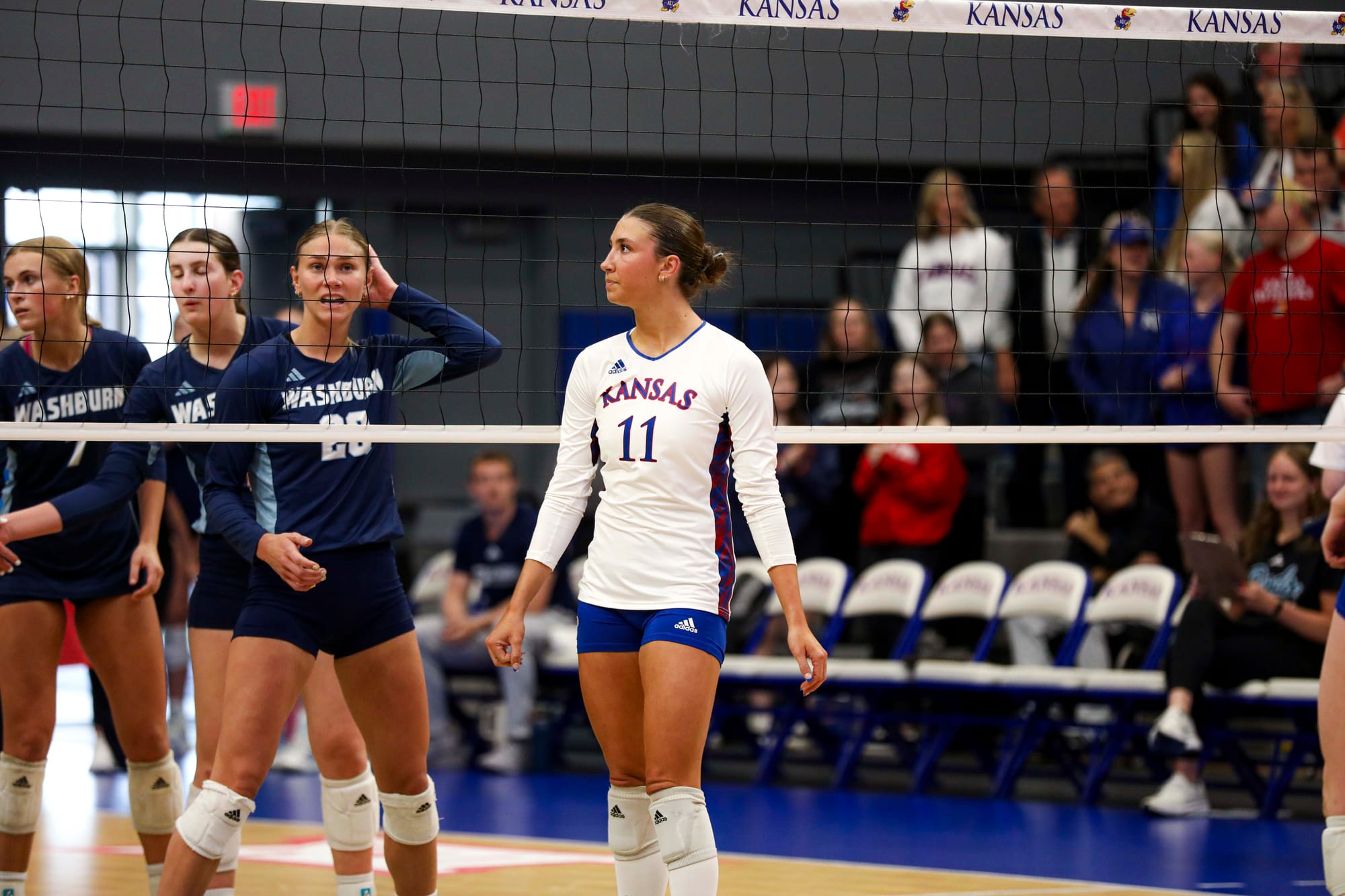 The Kansas volleyball team, led by new head coach Matt Ulmer, was back on the floor at Horejsi Family Volleyball Arena over the weekend, for an exhibition match against Washburn University that marked Ulmer's unofficial KU debut.