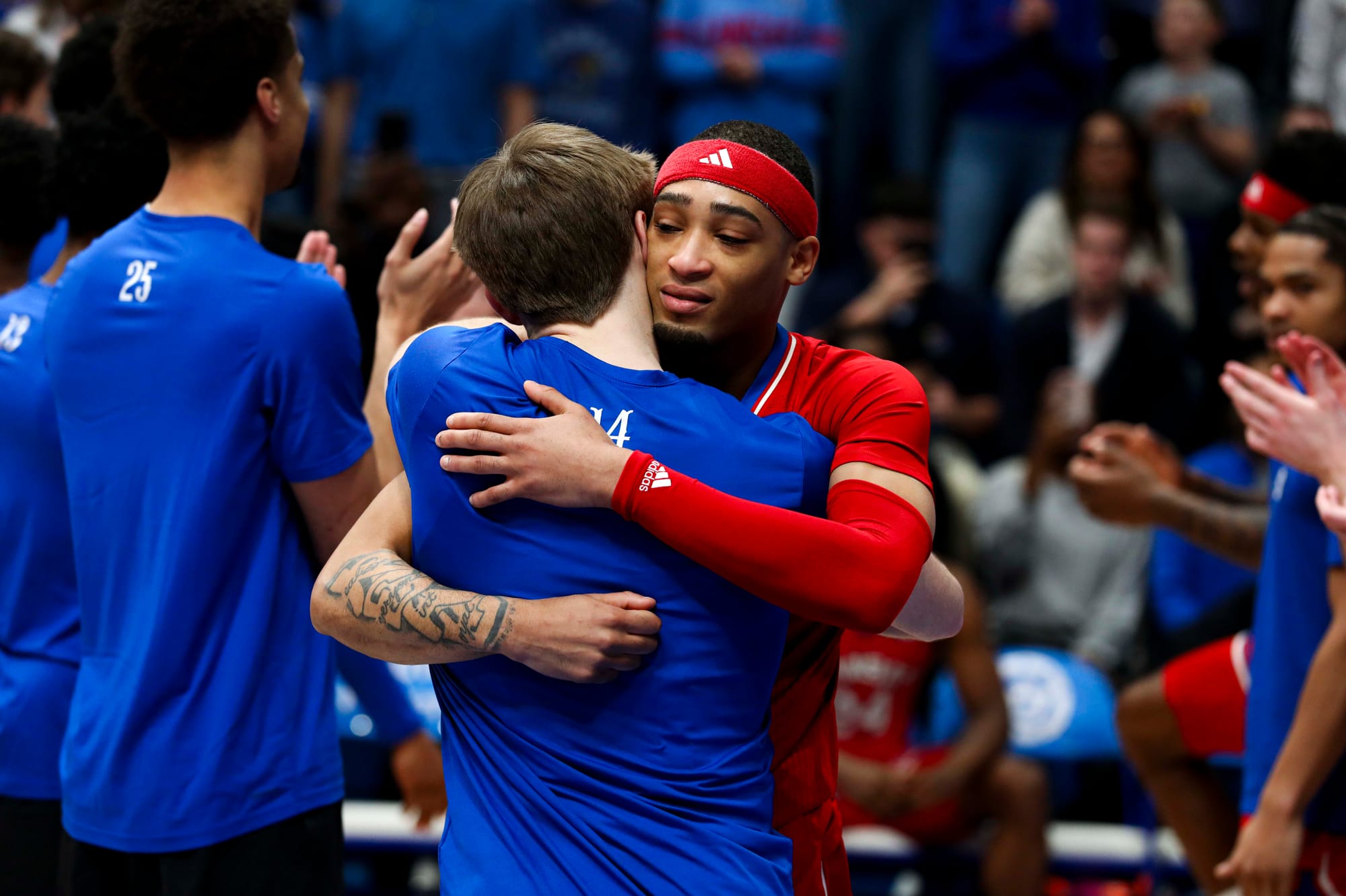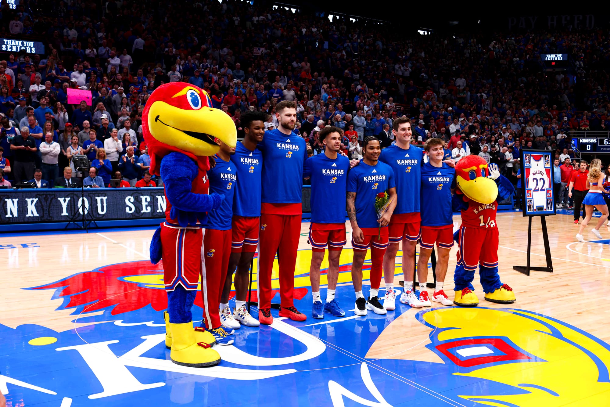 • Senior Day love – There was all kinds of love before and after Saturday’s game for the 7 seniors who were honored by the program. But by far the best was the ovation for both KJ Adams and Dajuan Harris Jr., when they were introduced during the pregame ceremony as they walked onto the floor with their family and friends. It was a much-deserved ovation for two diehard Jayhawks, who have given everything they have to the KU program and handled themselves with class, poise and professionalism the entire way. Seniors Adams, Harris, Dickinson, Mayo, Shak Moore, Dillon Wilhite and Patrick Cassidy were all honored before and after Saturday’s win, with Cassidy, Wilhite, Mayo, Harris and Adams giving the traditional senior speeches to a half-full Allen Fieldhouse after the win.