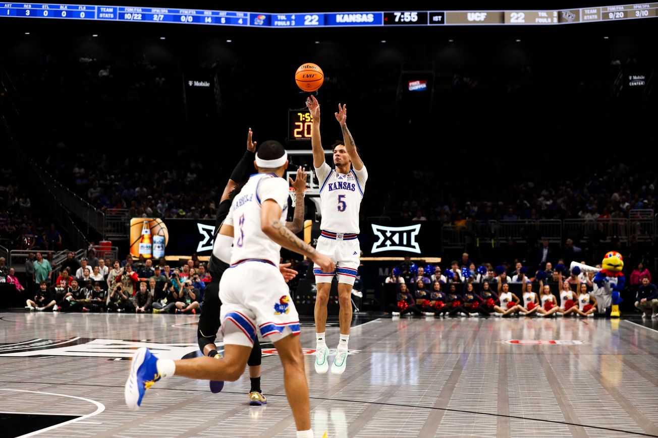 But thanks to some clutch plays late and a hot-shooting night from several Kansas players, the Jayhawks survived Round 3 with UCF, 98-94 in overtime in the opening game of the Big 12 tournament at T-Mobile Center.
