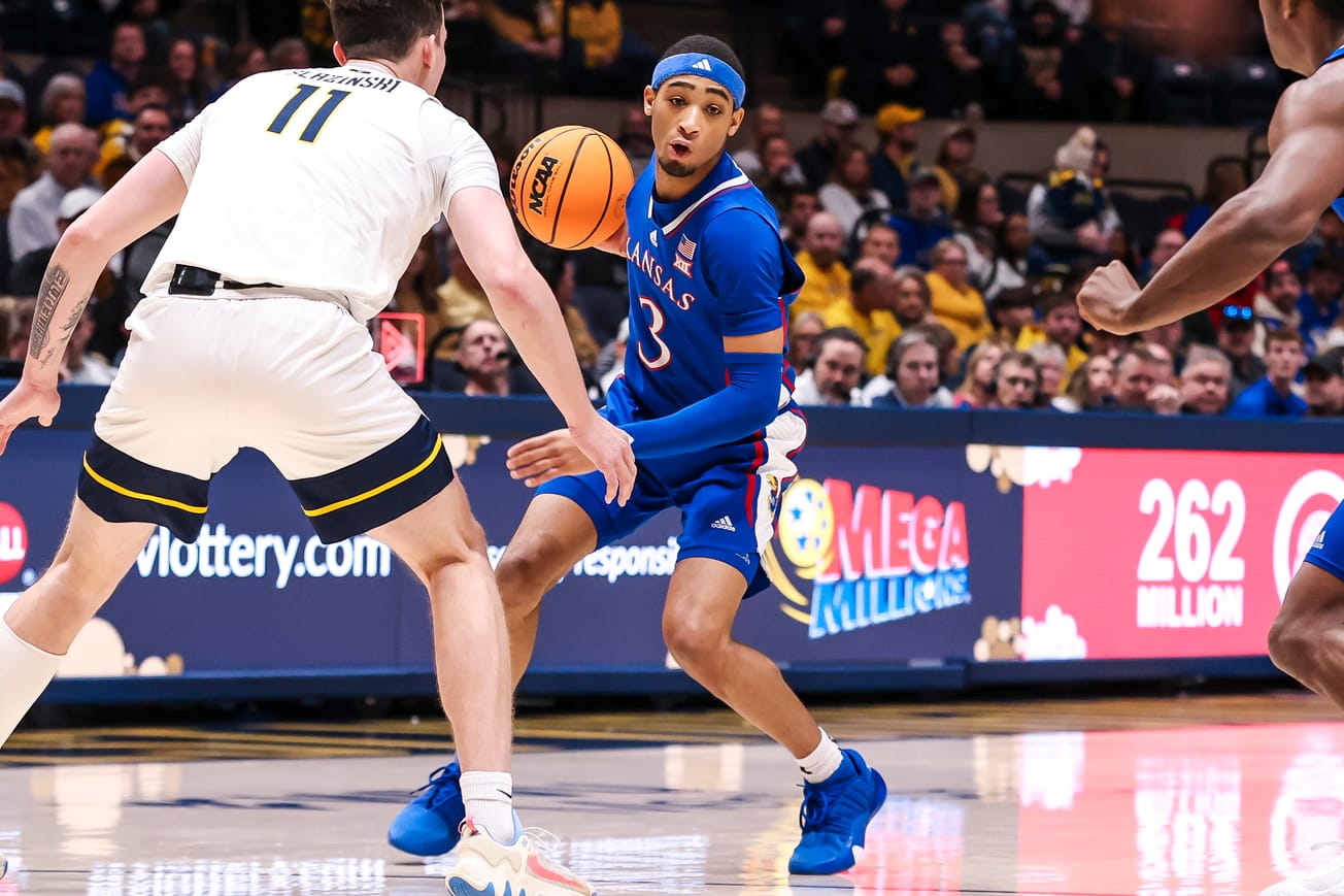 • Timberlake’s spark: During a particularly scary stretch in the first half when the Jayhawks had starters Dajuan Harris Jr., Kevin McCullar Jr. and Hunter Dickinson on the bench at the same time, it was the slumping senior transfer from Towson who delivered on the offensive end for the Jayhawks. Timberlake, whose KU career high prior to Saturday was 13 points in a home win over Yale, scored 12 points in the first half to help KU keep pace with a scorching WVU squad. R1S1 Sports recently caught up with Timberlake to break down what he’s done to stay positive despite the rough start to his KU career.