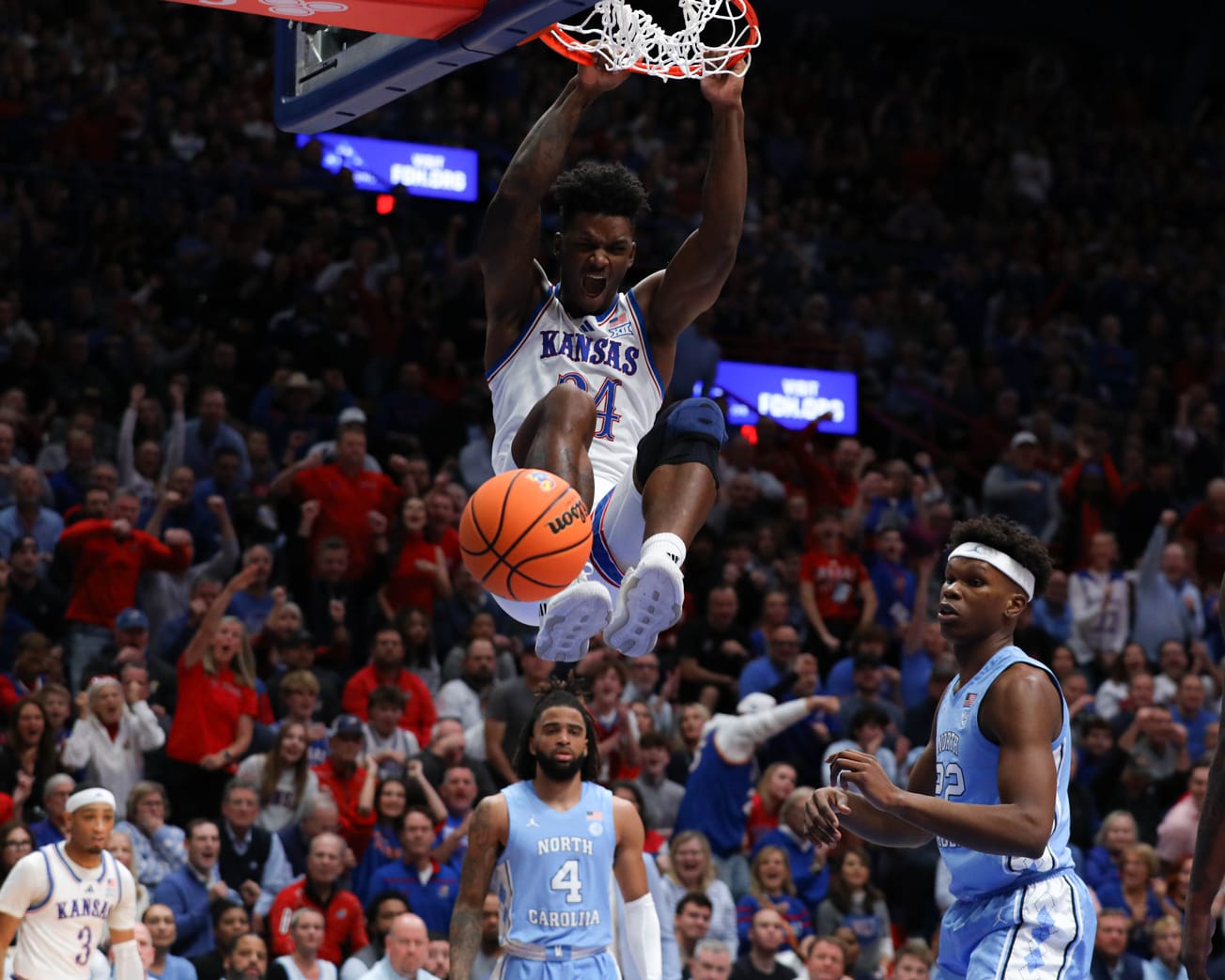 In the first Allen Fieldhouse meeting between blue blood programs Kansas and North Carolina since 1960, the top-ranked Jayhawks knocked off No. 9 UNC 92-89 in a game that went down to the final shot.