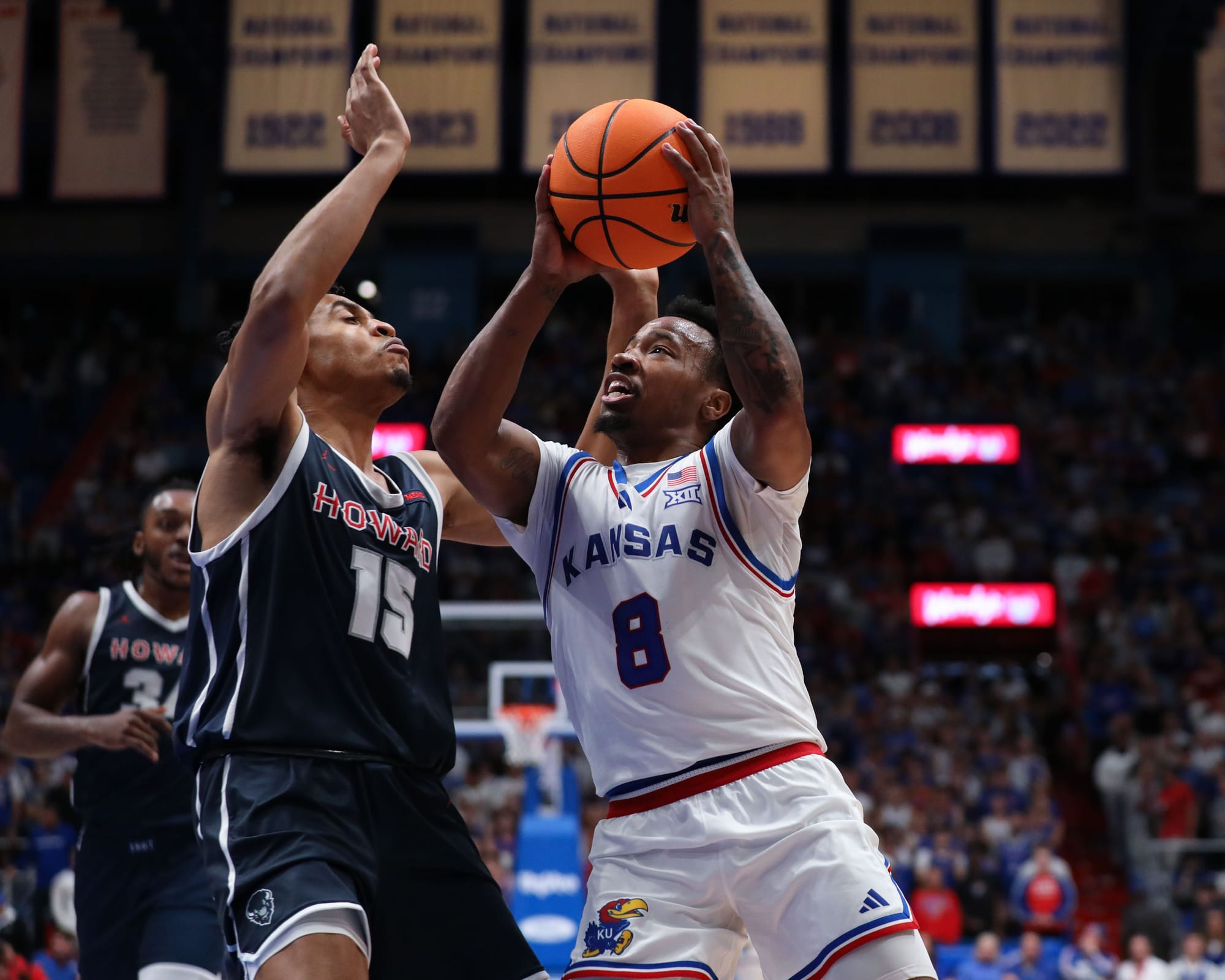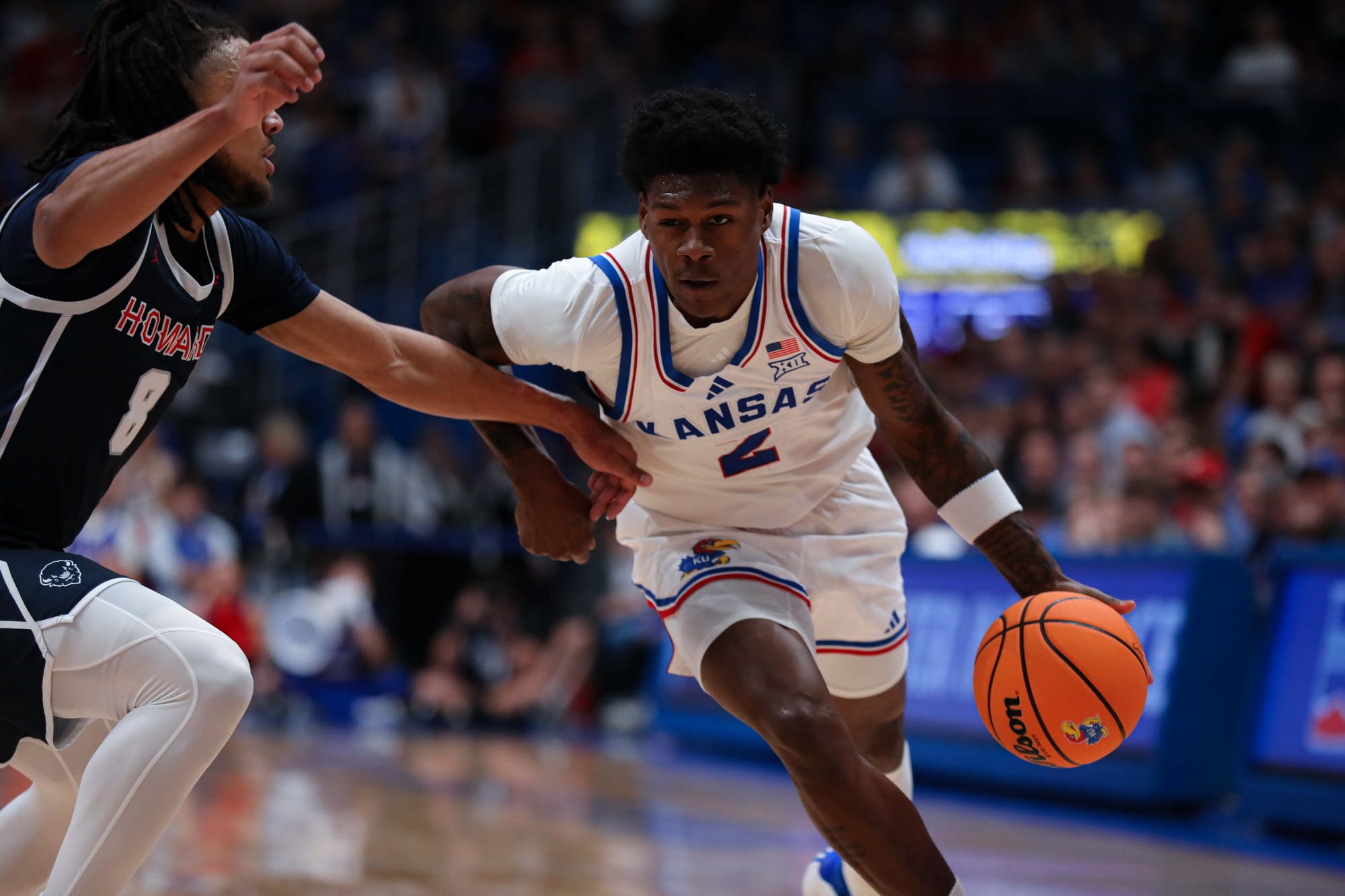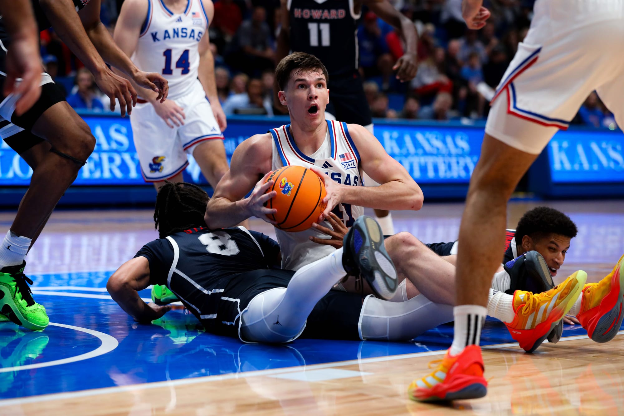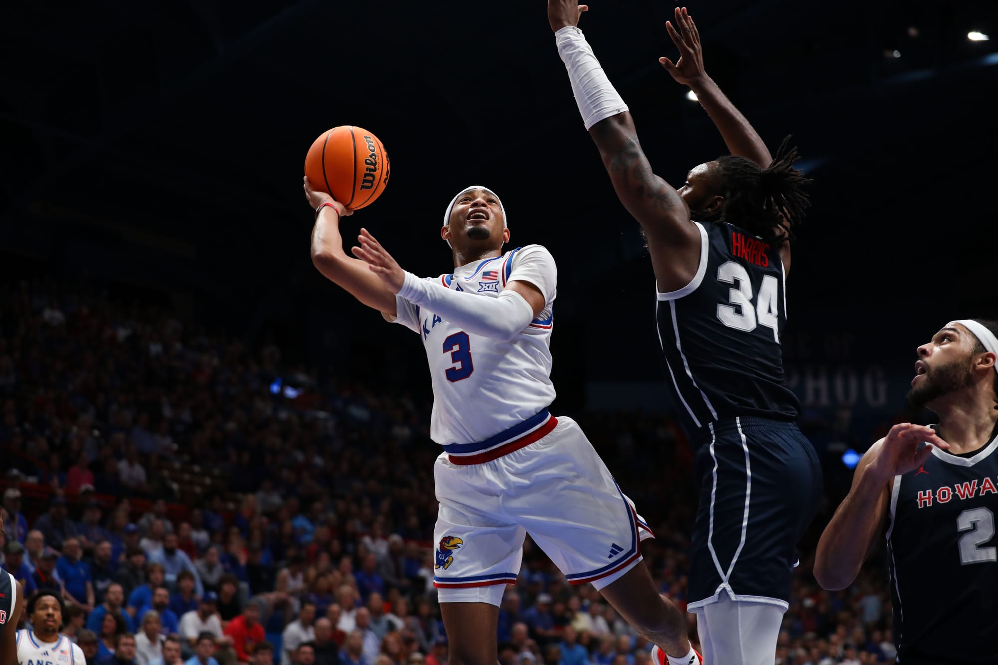 The top-ranked Kansas men's basketball team rolled past Howard in the regular season opener on Monday night at Allen Fieldhouse.