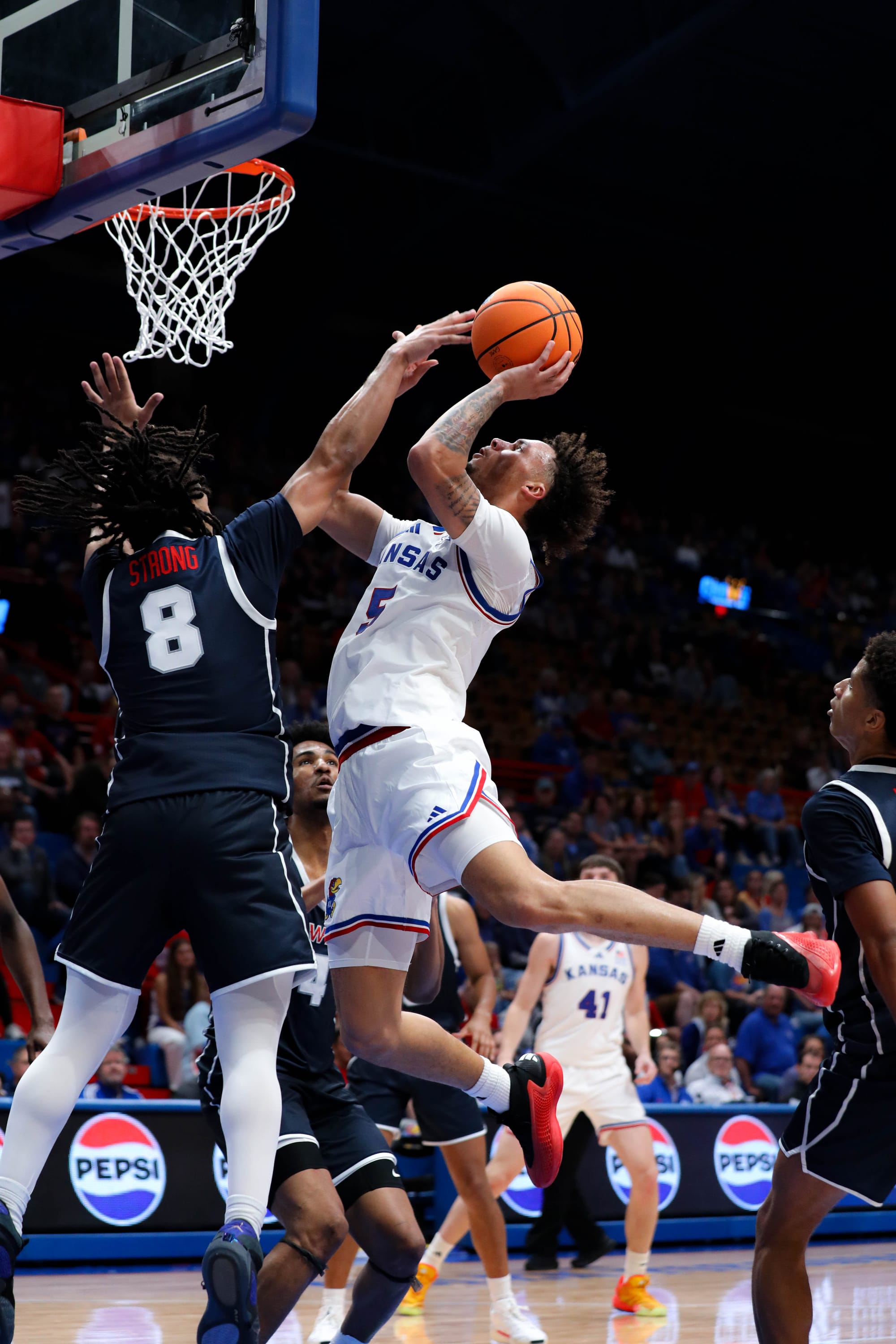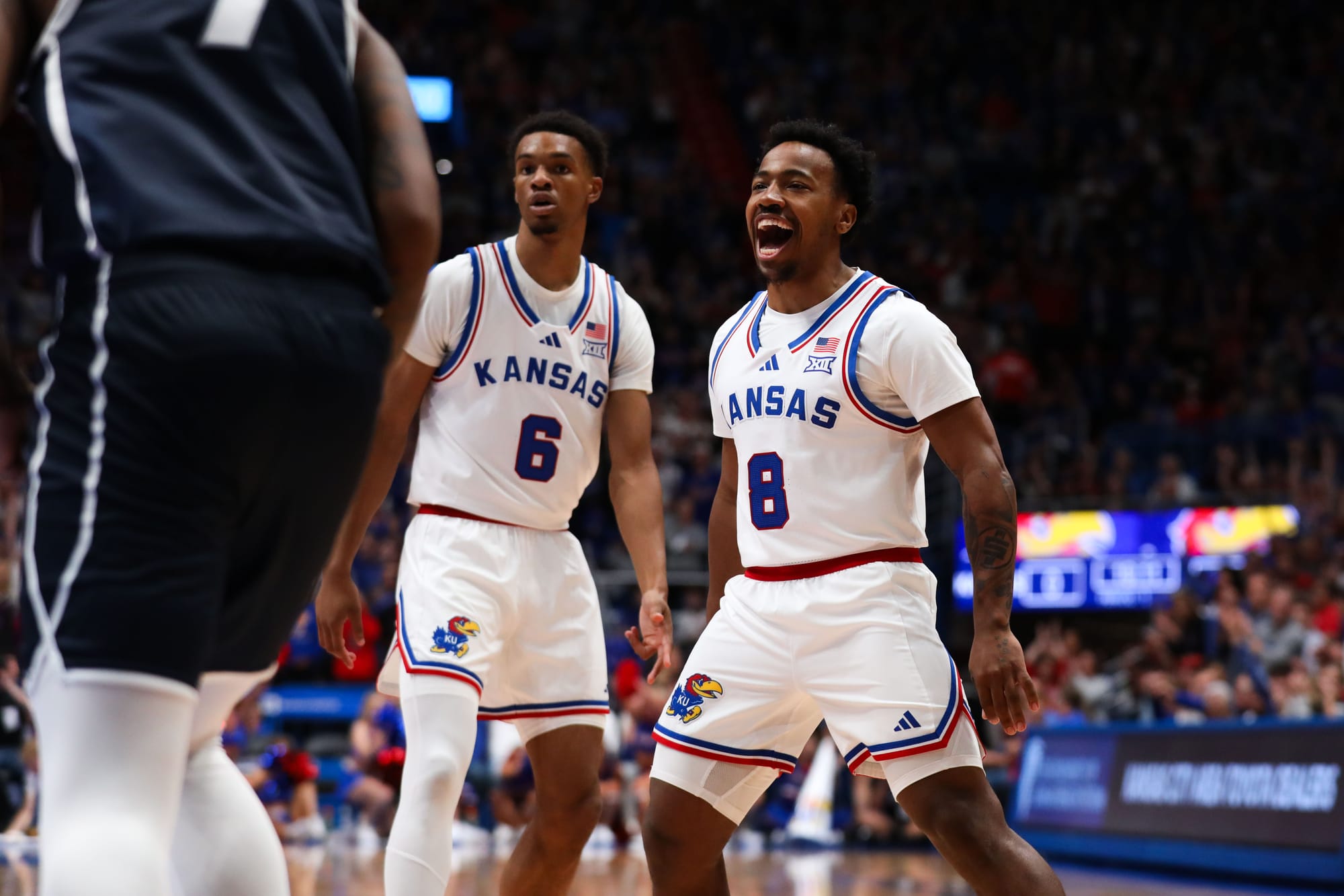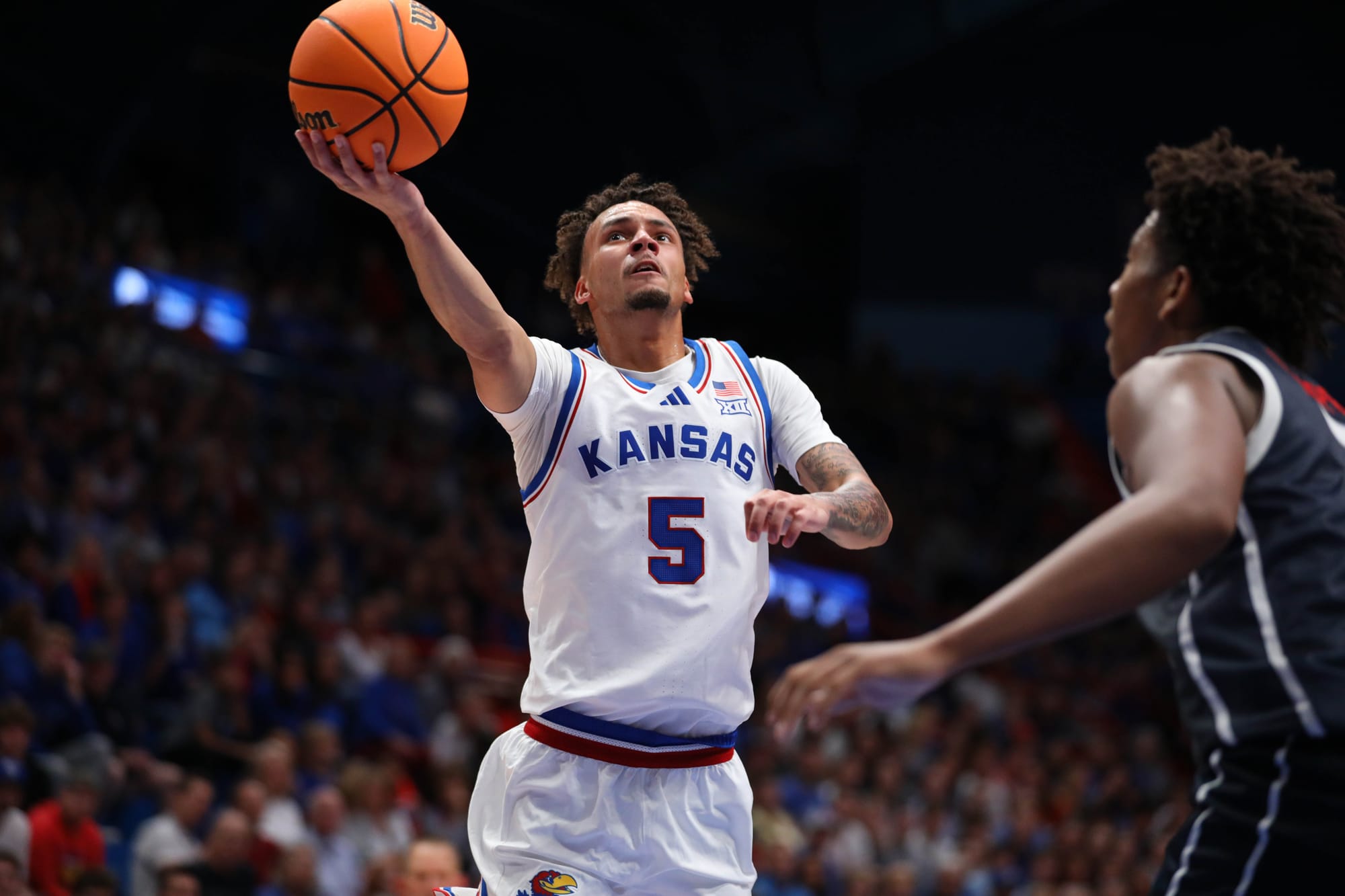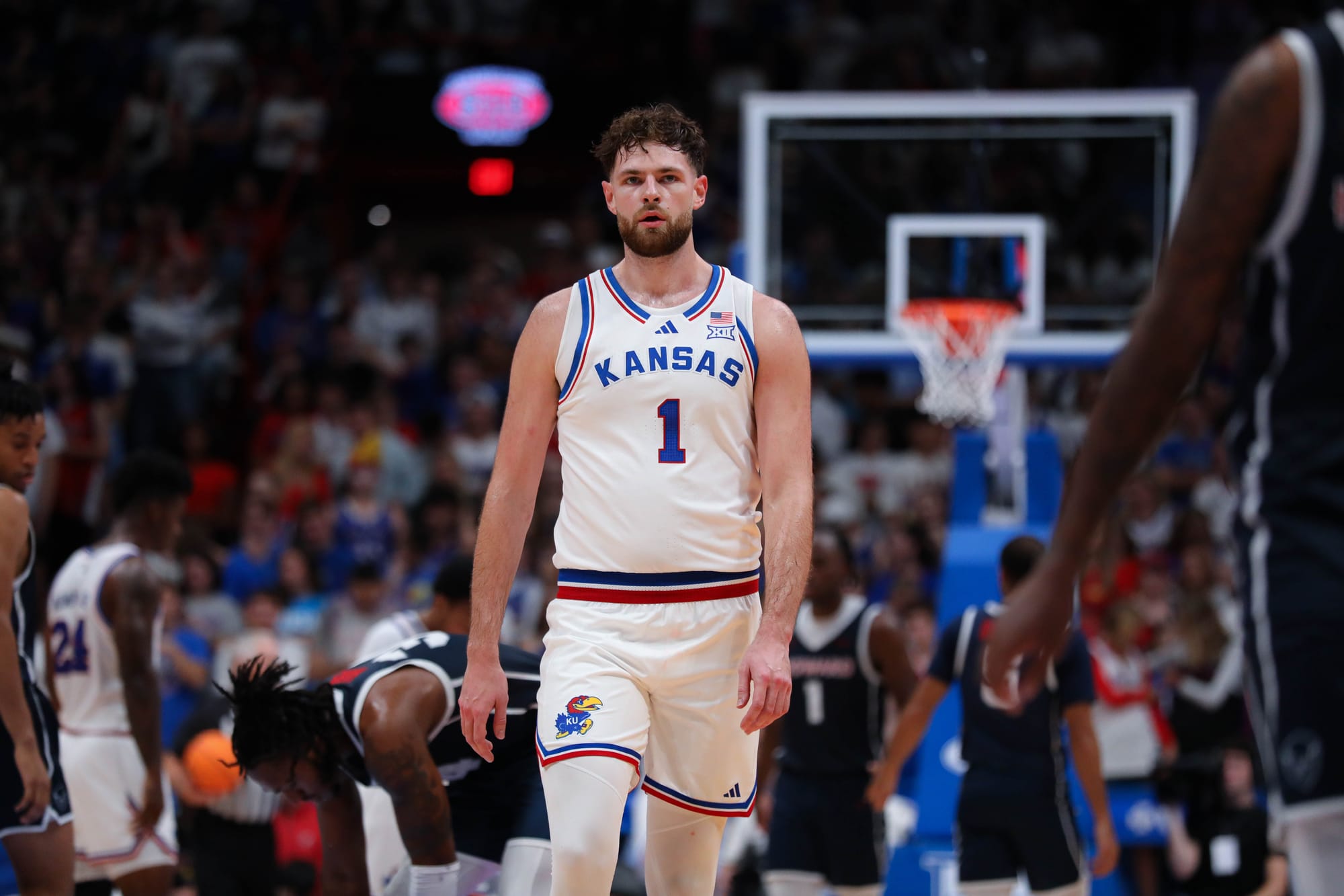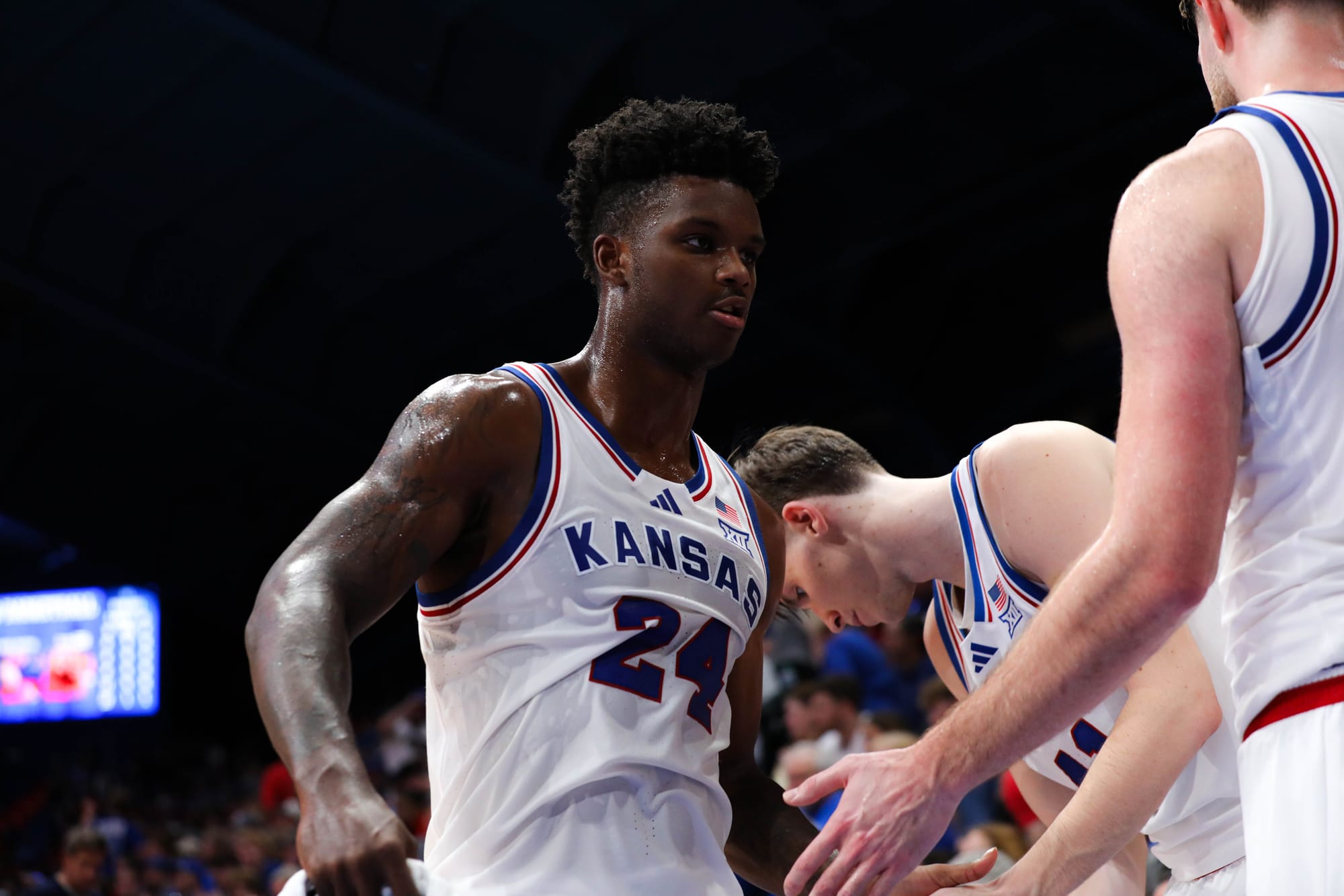 The Jayhawks went with the starting five of Dajuan Harris Jr., David Coit, Rylan Griffen, KJ Adams and Hunter Dickinson and got all kinds of production from its bench in the 87-57, run-away victory.