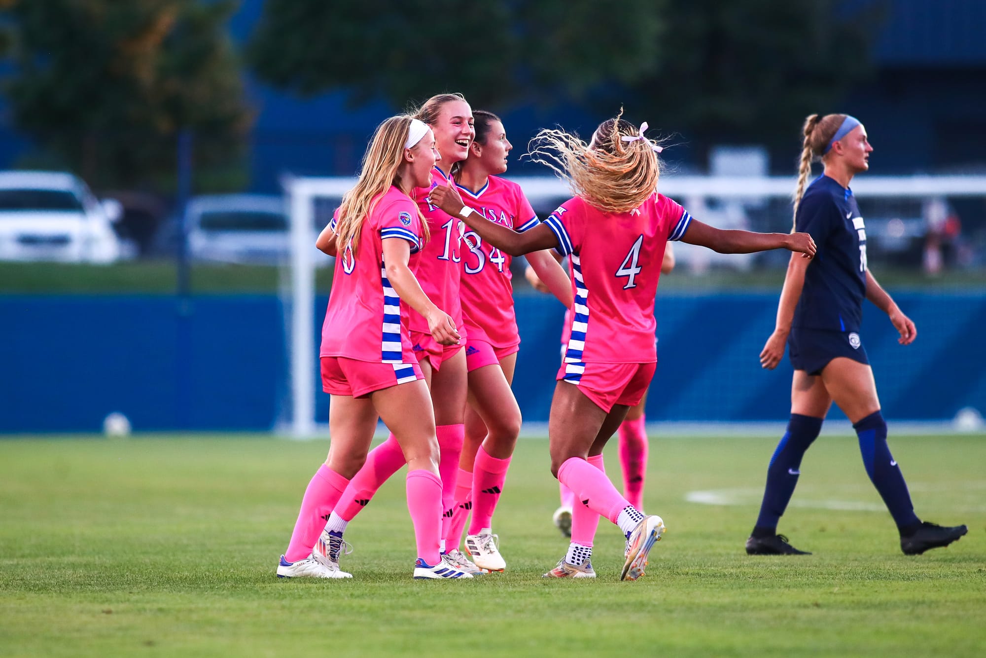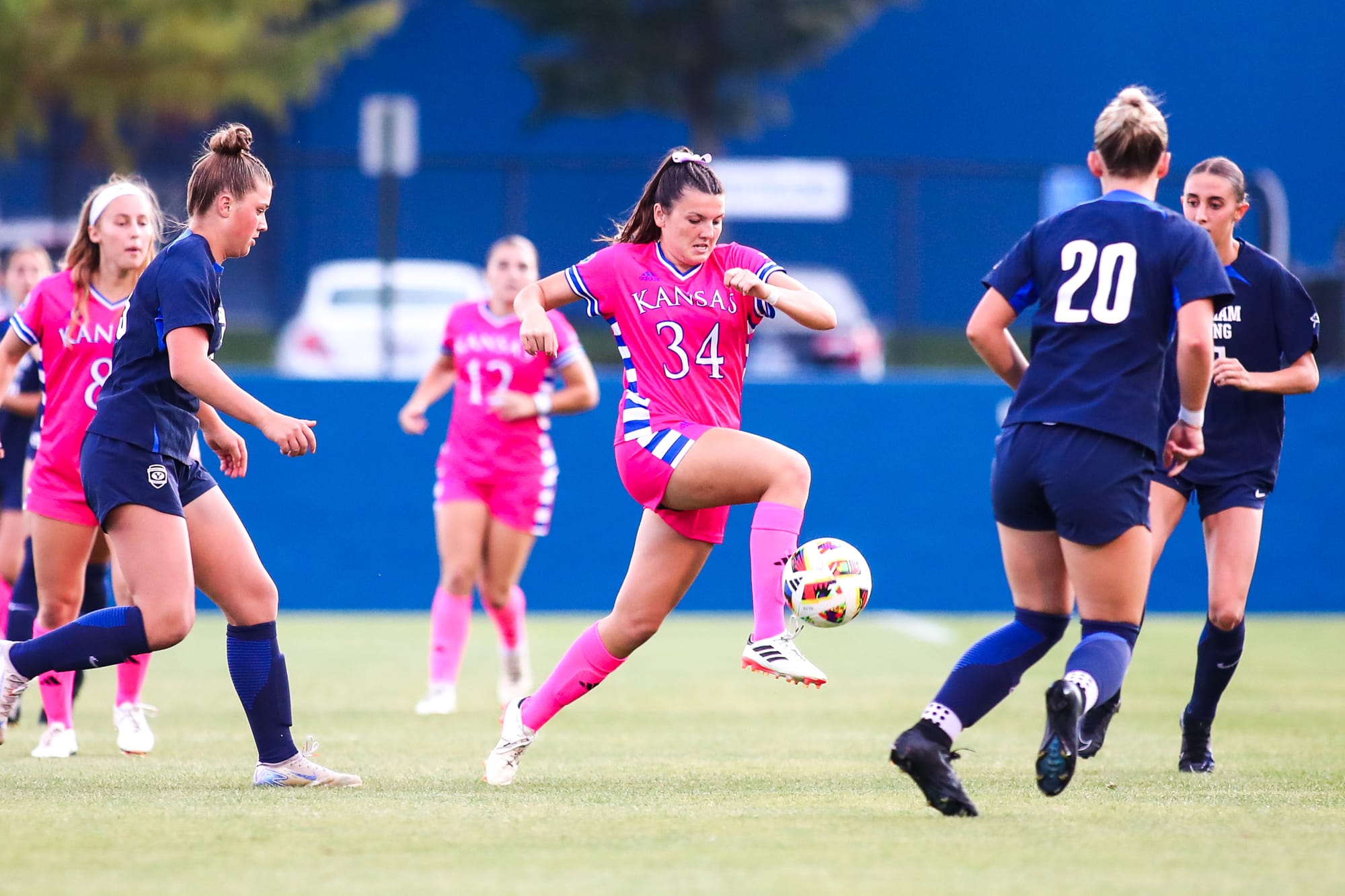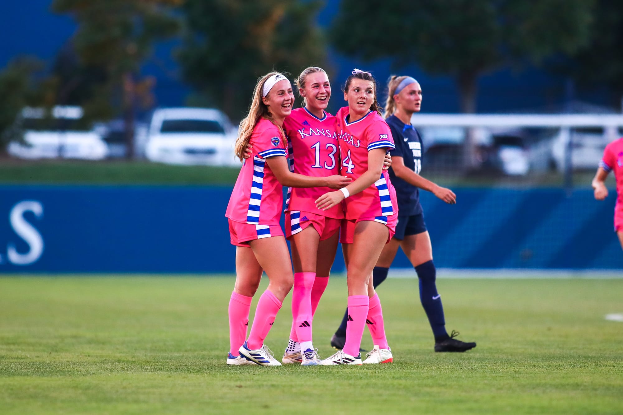 KU's other goal came midway through the first half, when a BYU player knocked it into the Cougars' net for an own goal to tie the game at 1-all. KU goalkeeper Sophie Dawes delivered a career-best 6 saves in the match.