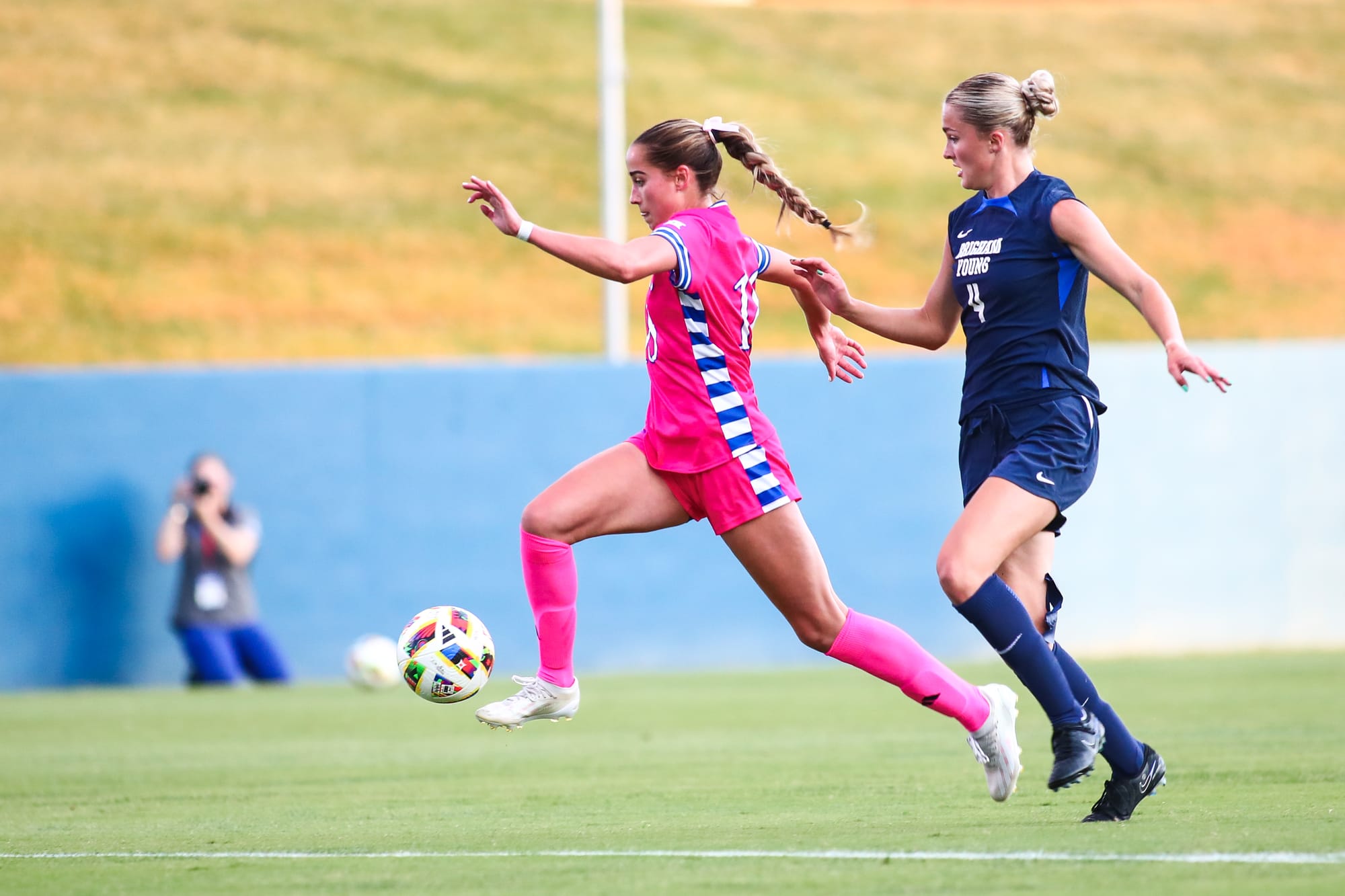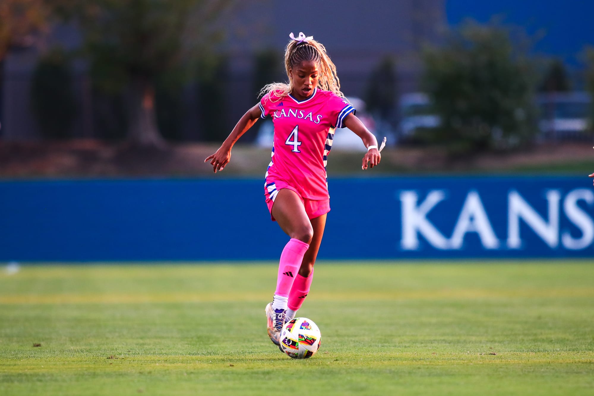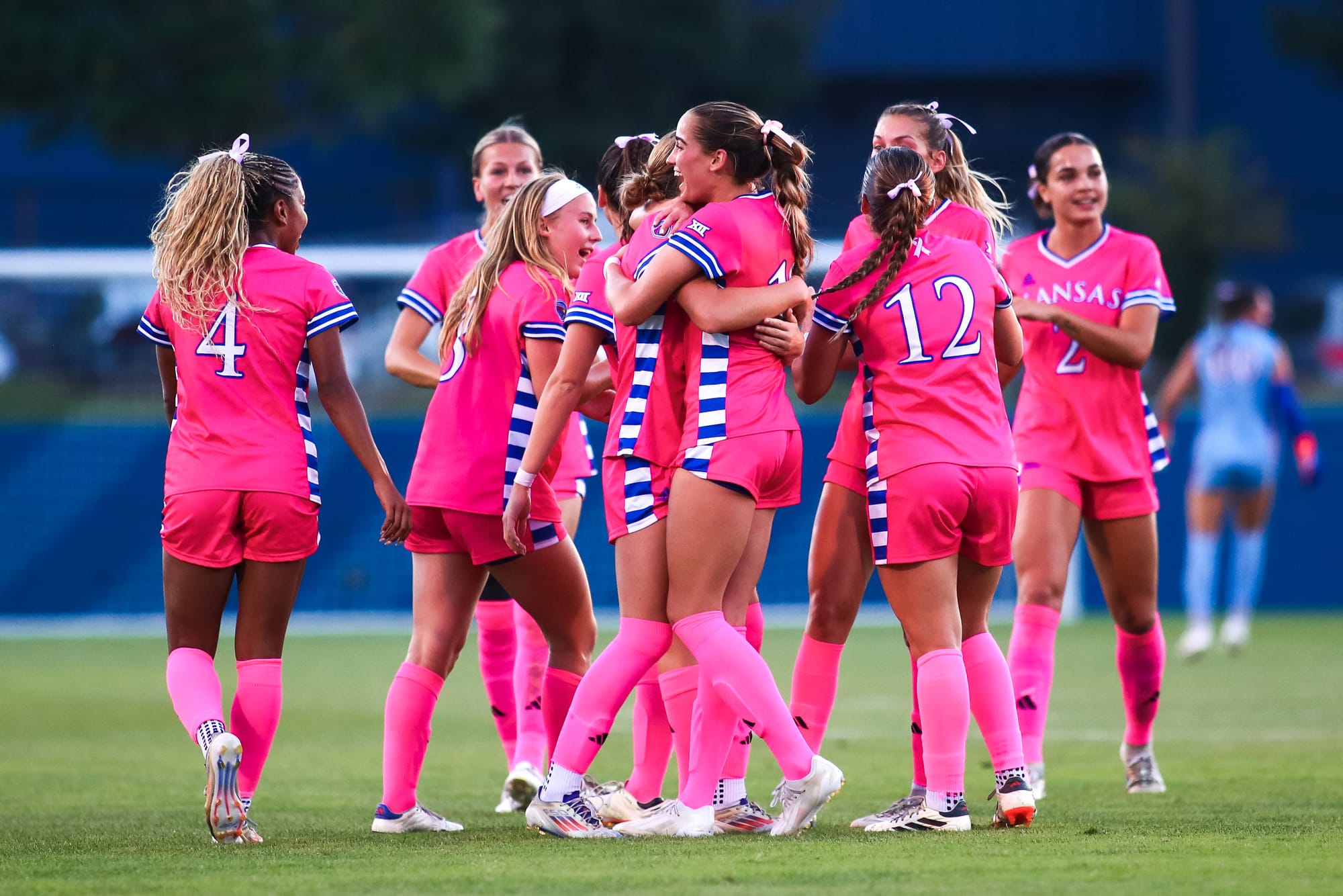 KU's other goal came midway through the first half, when a BYU player knocked it into the Cougars' net for an own goal to tie the game at 1-all. KU goalkeeper Sophie Dawes delivered a career-best 6 saves in the match.
