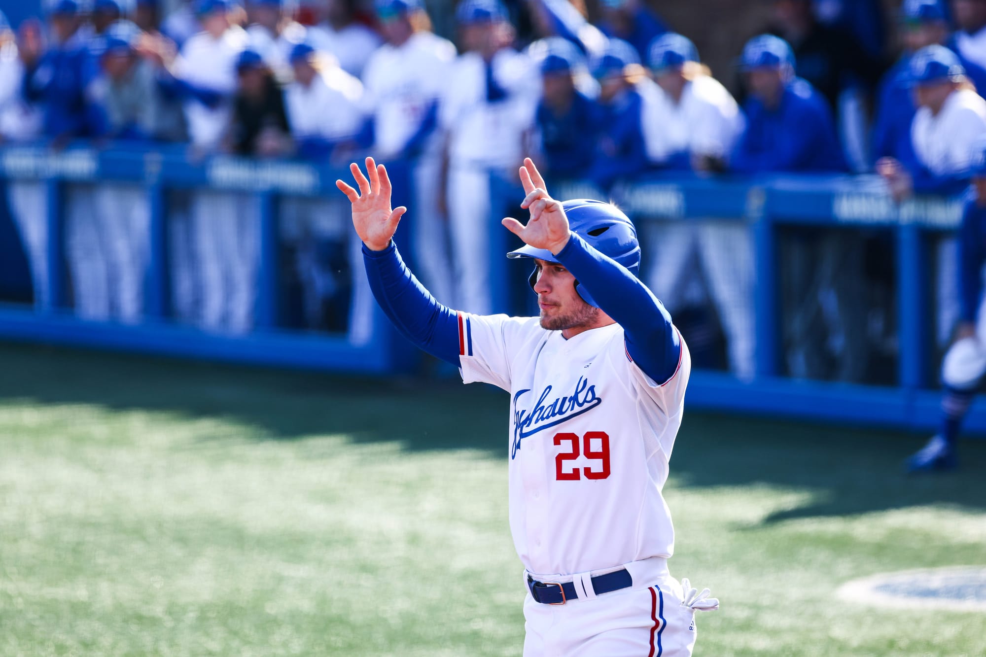 “I thought that the fans were great," second-year KU coach Dan Fitzgerald said. "They brought a ton of energy and I think our guys fed off it. They were definitely behind Reese out there and he scattered three hits over seven and I thought he was fantastic. Awesome to be home. It was it was a very productive road trip, but the expression ‘there’s no place like home’ really is true because you’re just able to work and get batting practice in beforehand and sleep in your own bed and have your own locker and all that stuff. I know I was fired up to be home and I think they were too.”