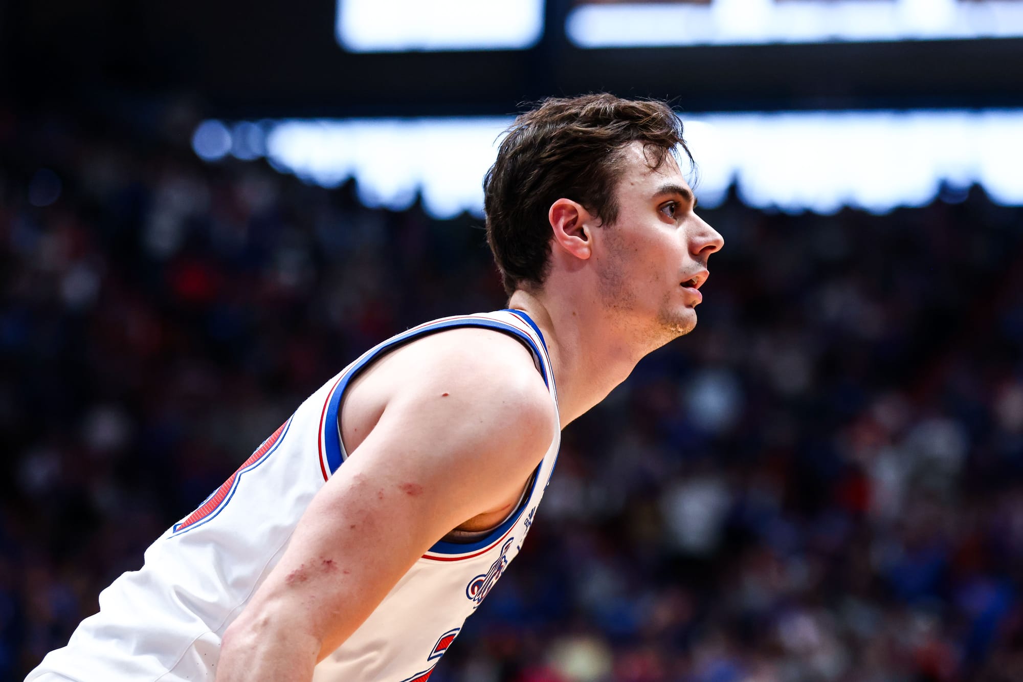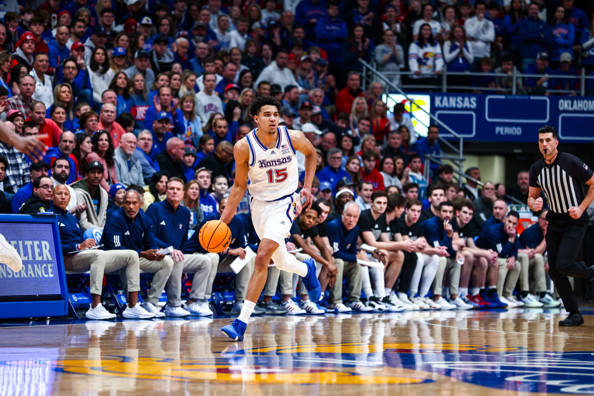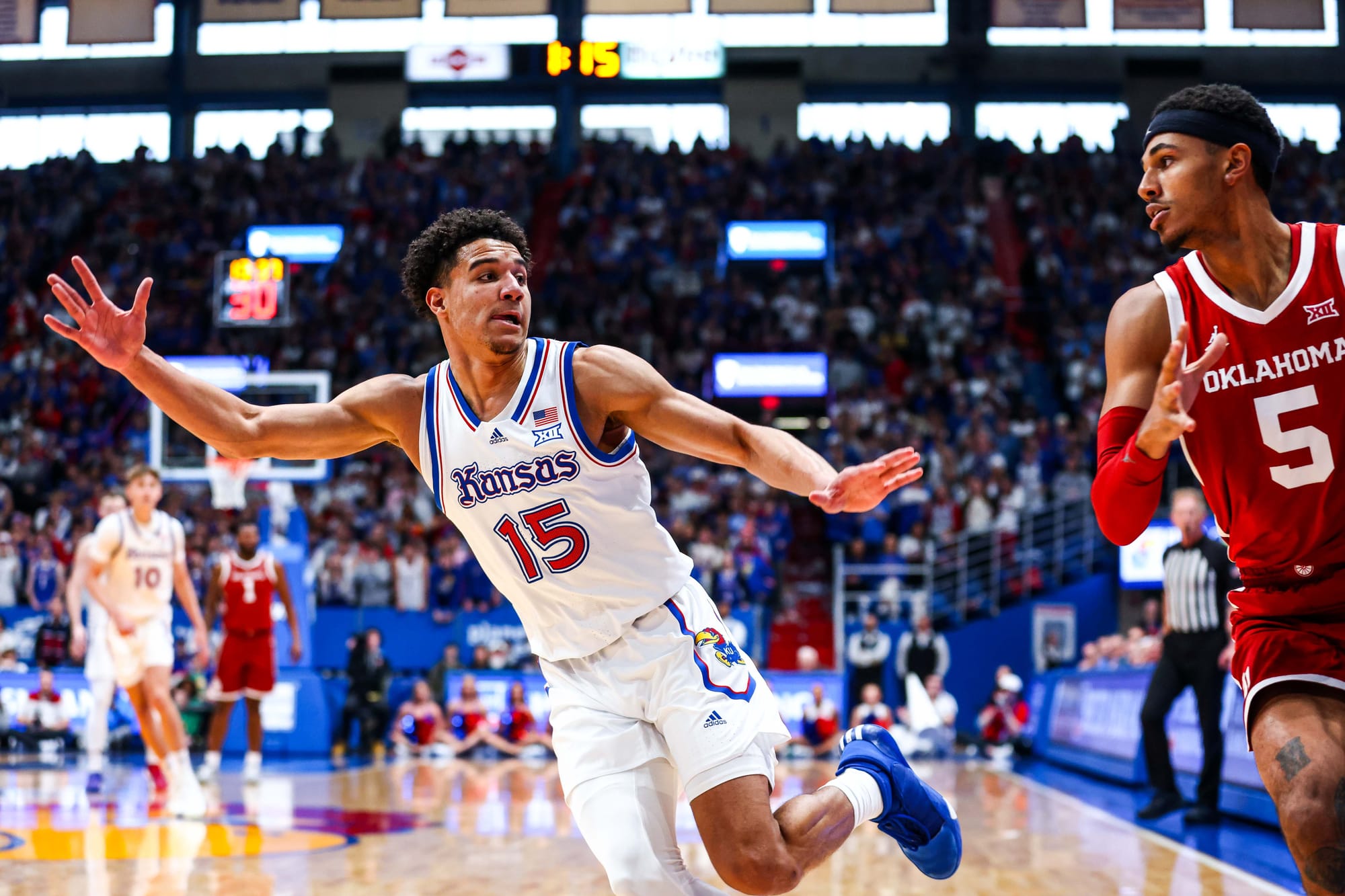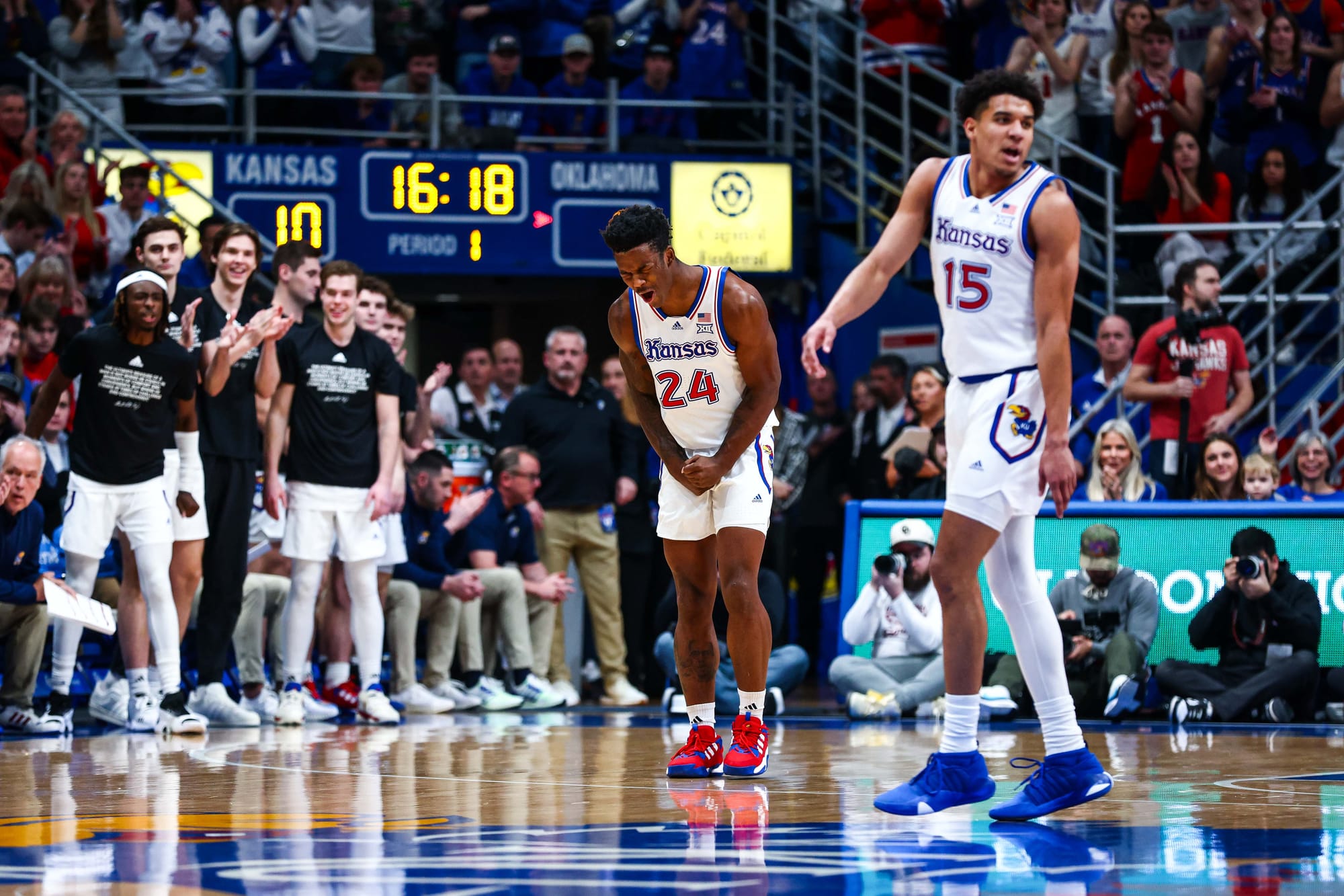 Hunter Dickinson finished with 24 points, 14 rebounds and 5 blocks and Kevin McCullar Jr. added 21 points, with KJ Adams chipping in another double-double of 15 points and 10 rebounds while playing all 40 minutes. KU PG Dajuan Harris Jr. also played all 40 minutes, finishing with 7 points, 8 assists and 0 turnovers.