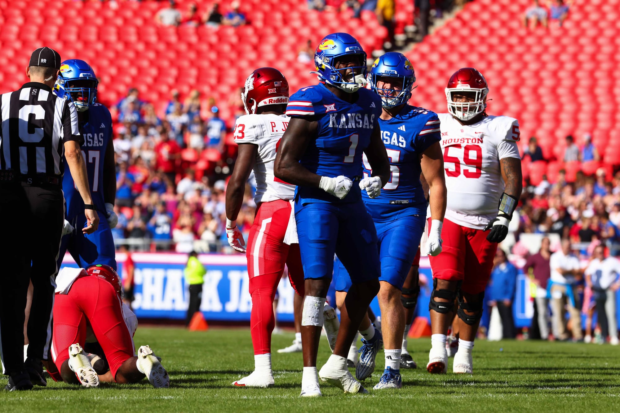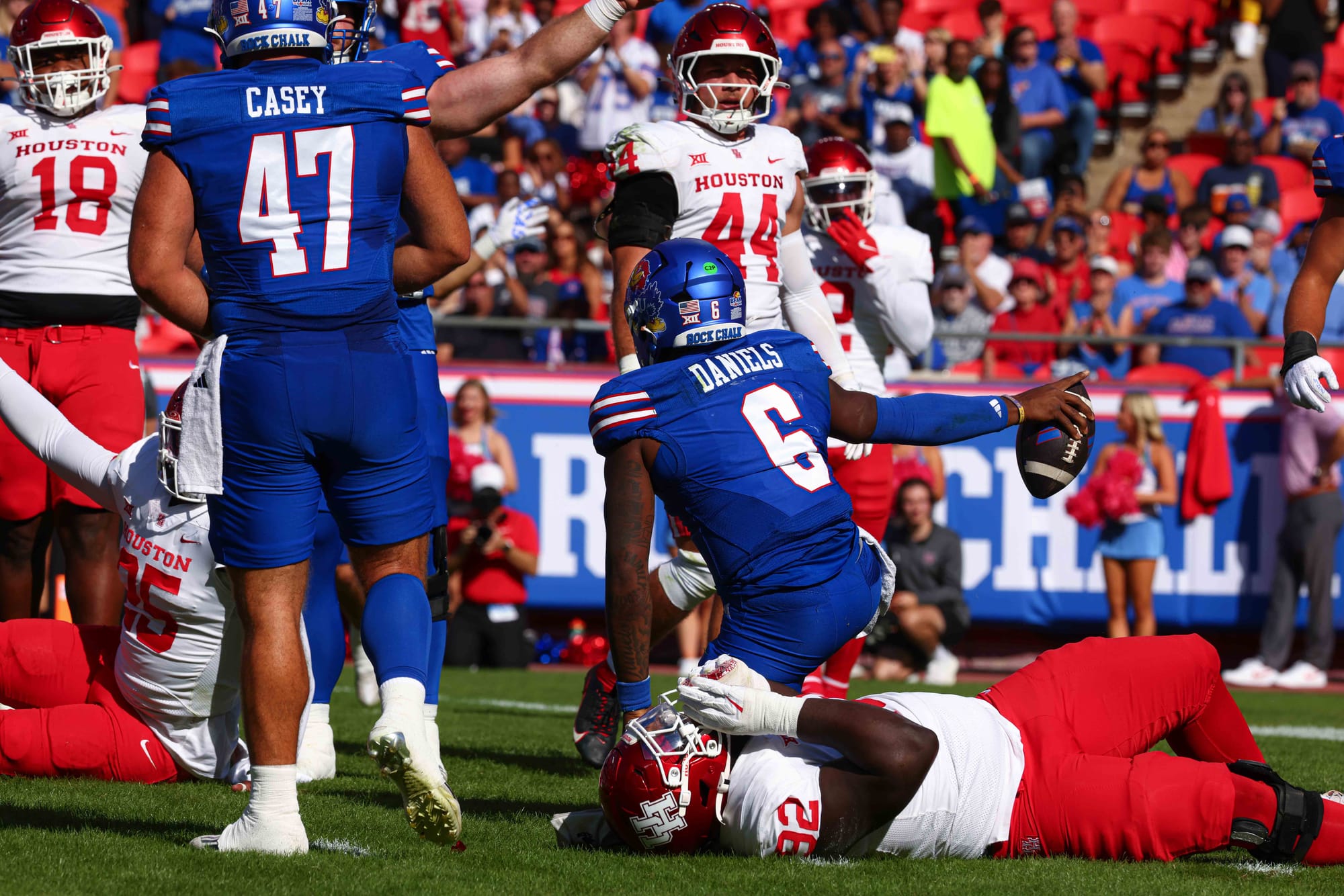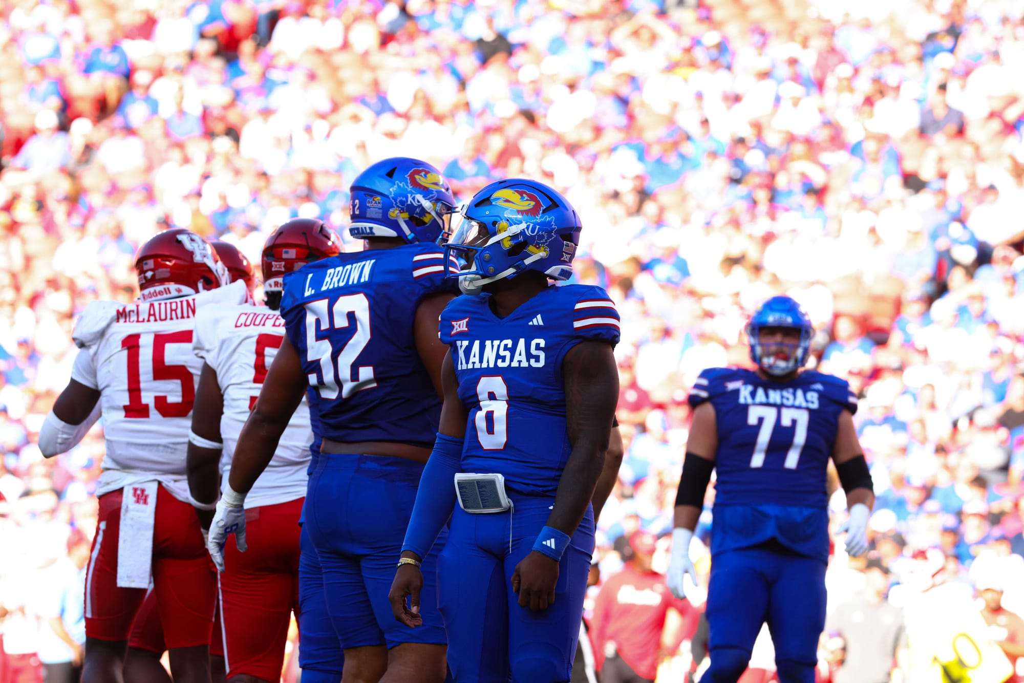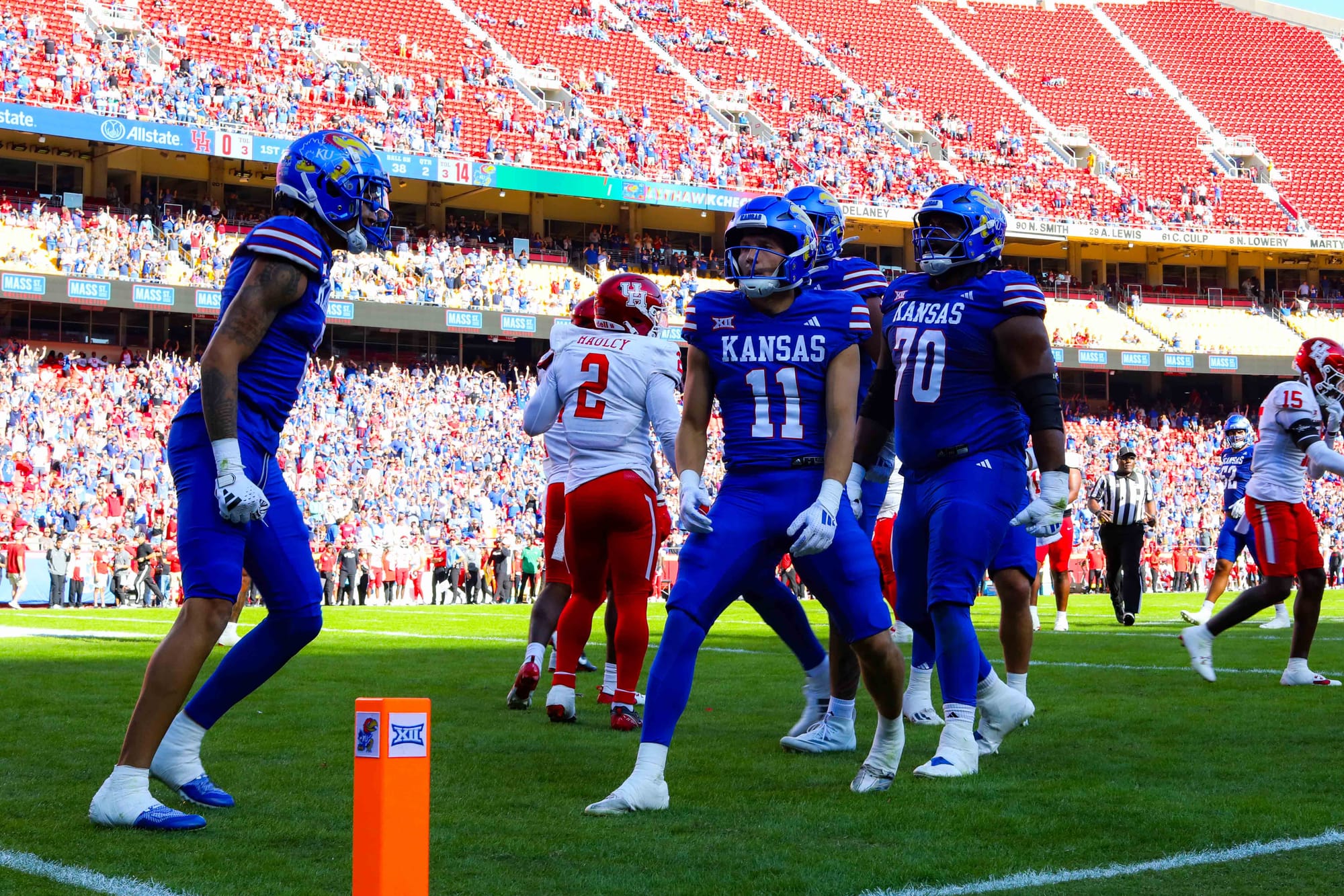 Kansas City, Missouri — The Kansas football team snapped its five-game losing streak in convincing fashion on Saturday, clobbering visiting Houston 42-14 at Arrowhead Stadium.