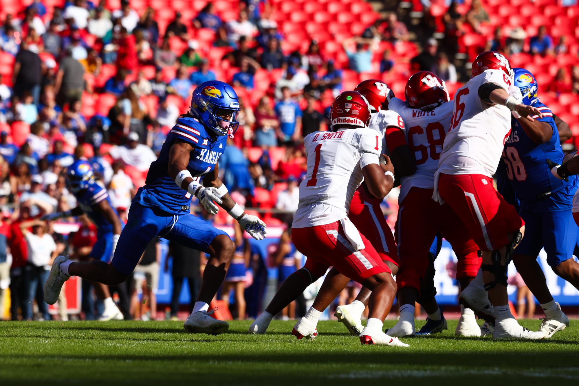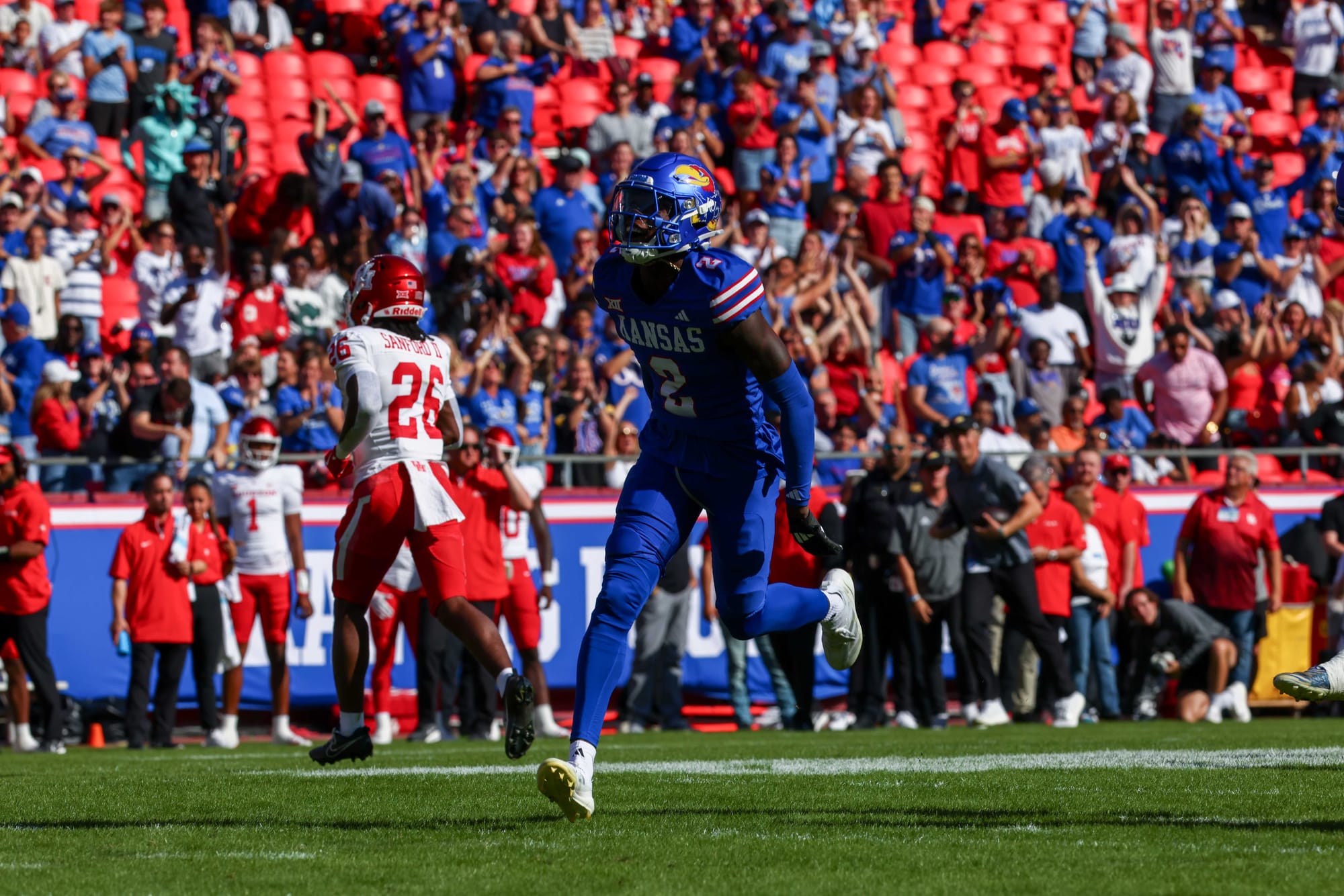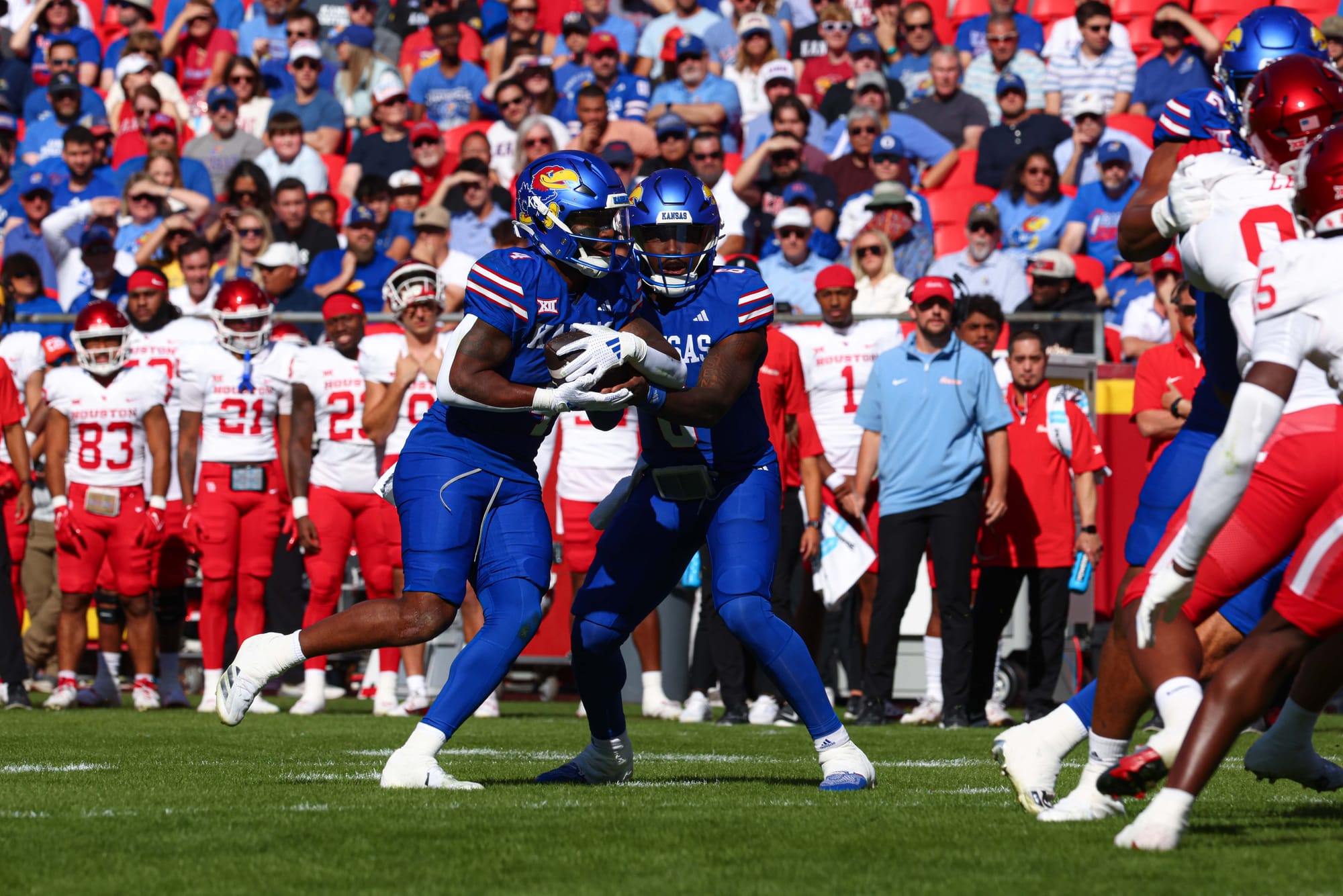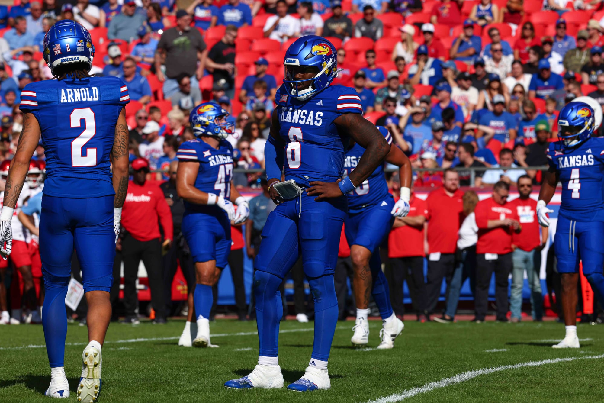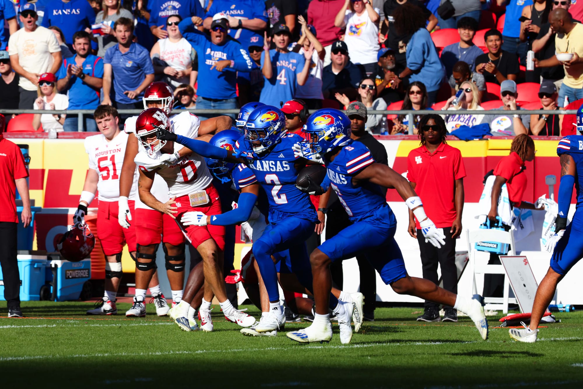 Kansas City, Missouri — The Kansas football team snapped its five-game losing streak in convincing fashion on Saturday, clobbering visiting Houston 42-14 at Arrowhead Stadium.