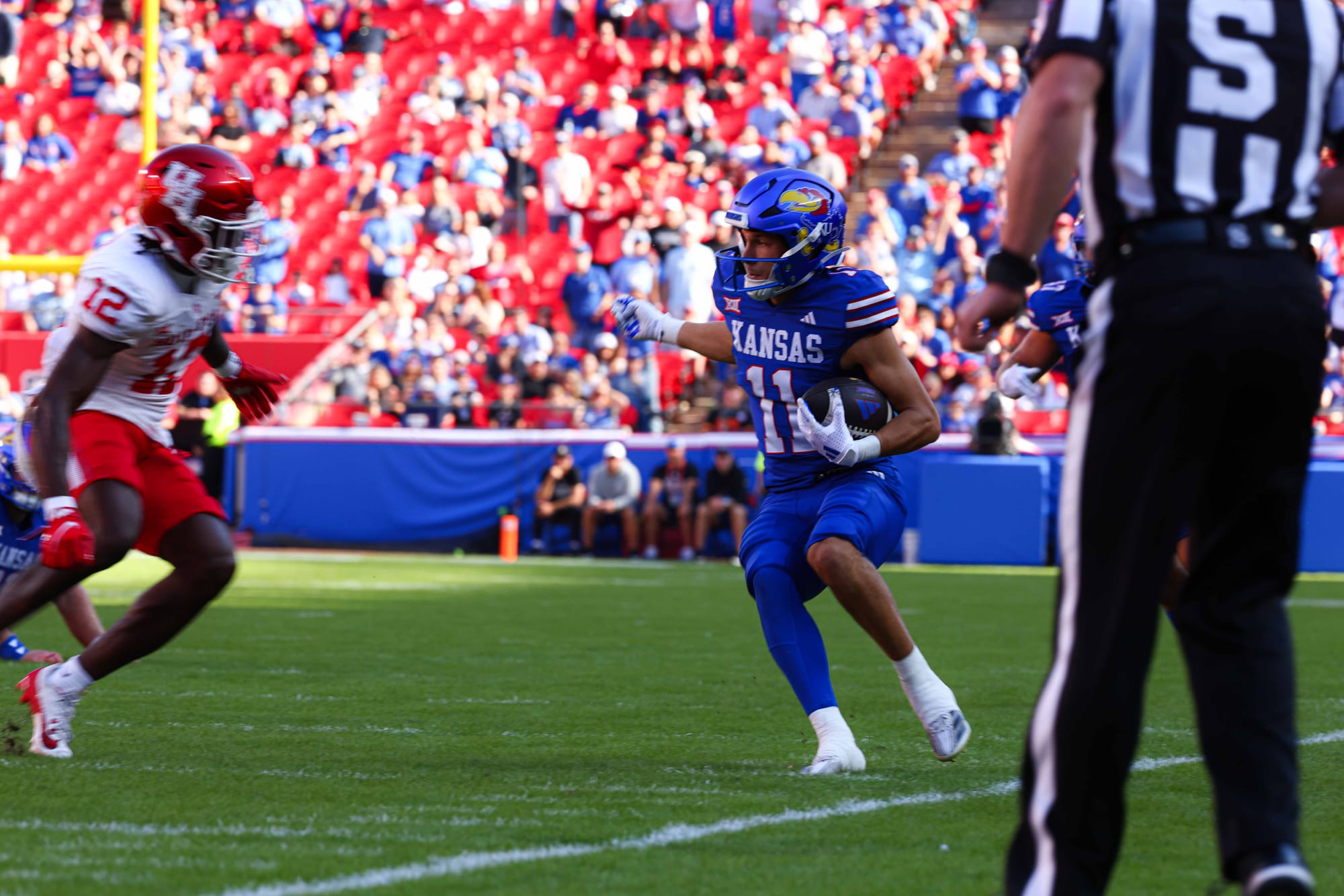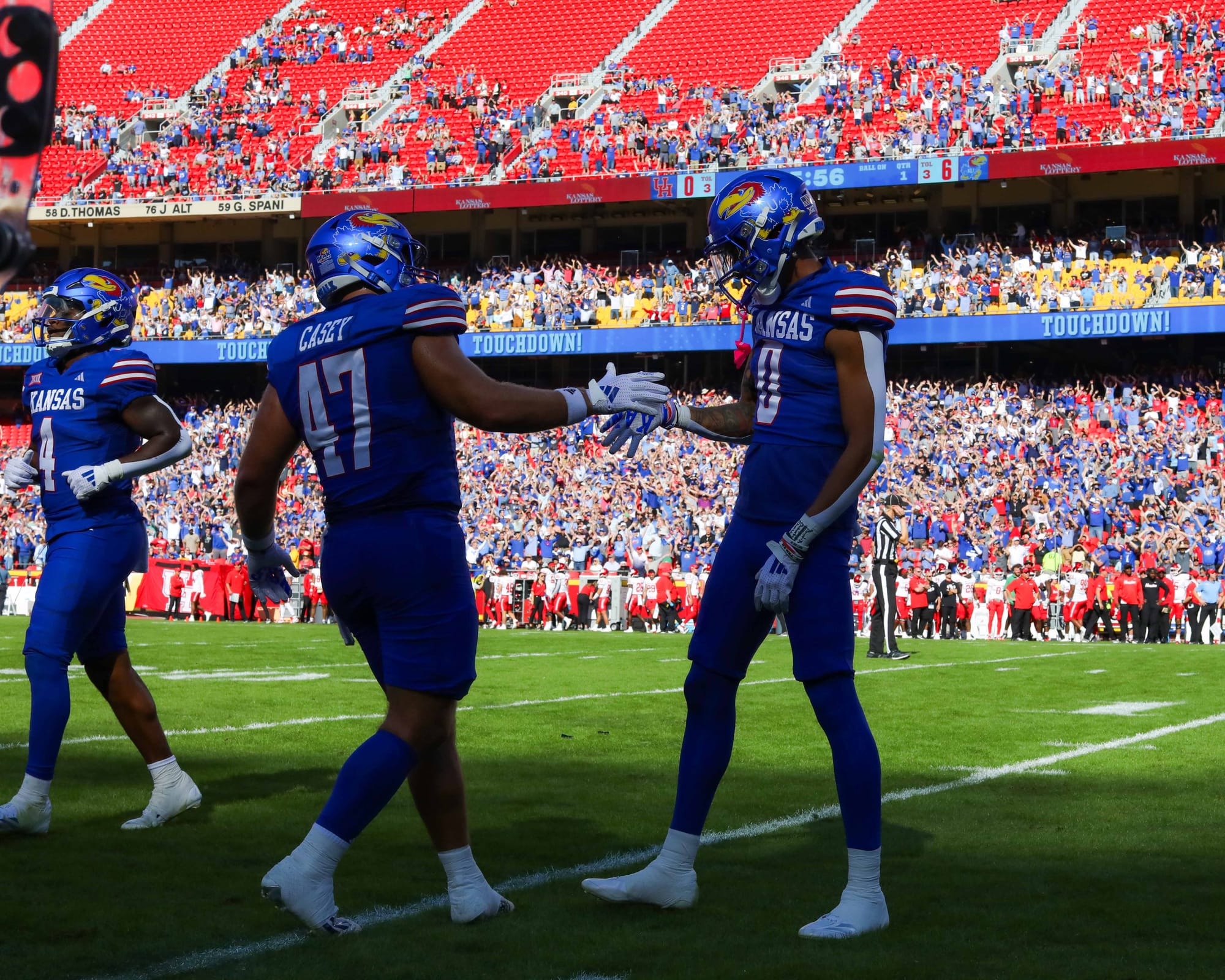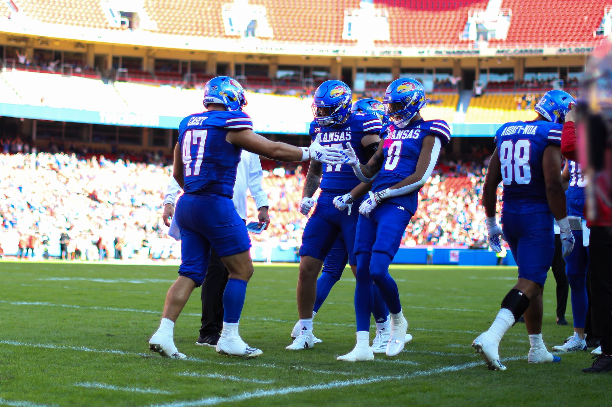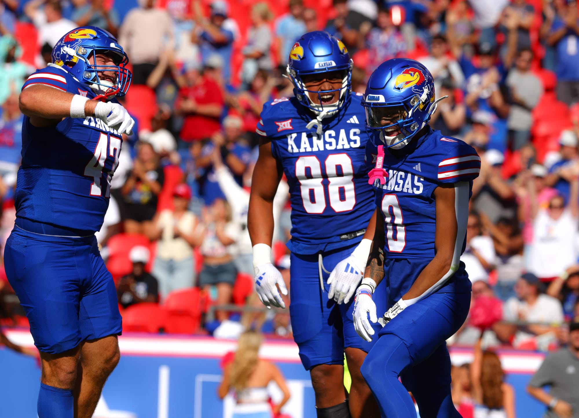 Kansas City, Missouri — The Kansas football team snapped its five-game losing streak in convincing fashion on Saturday, clobbering visiting Houston 42-14 at Arrowhead Stadium.