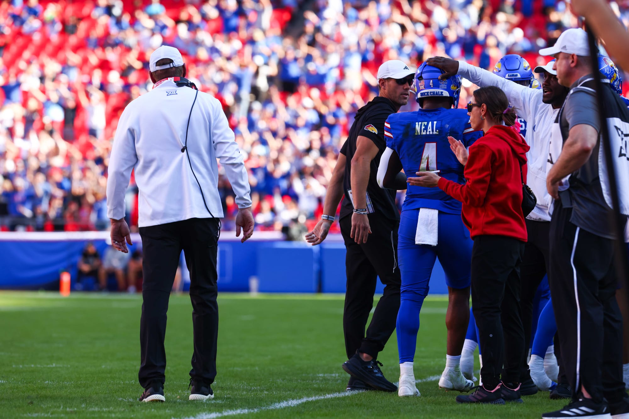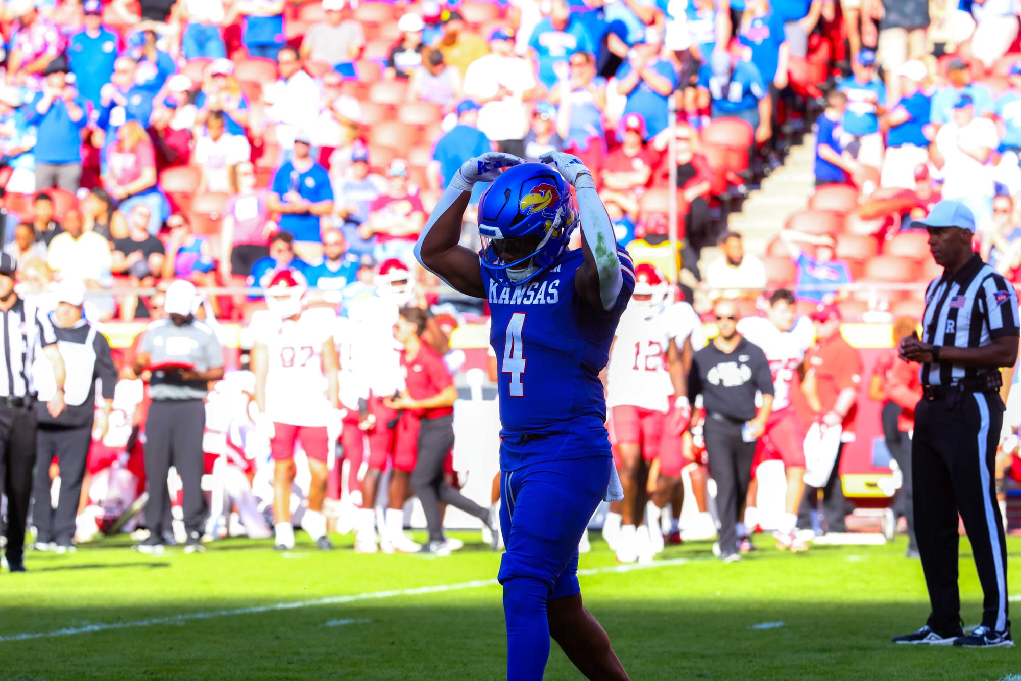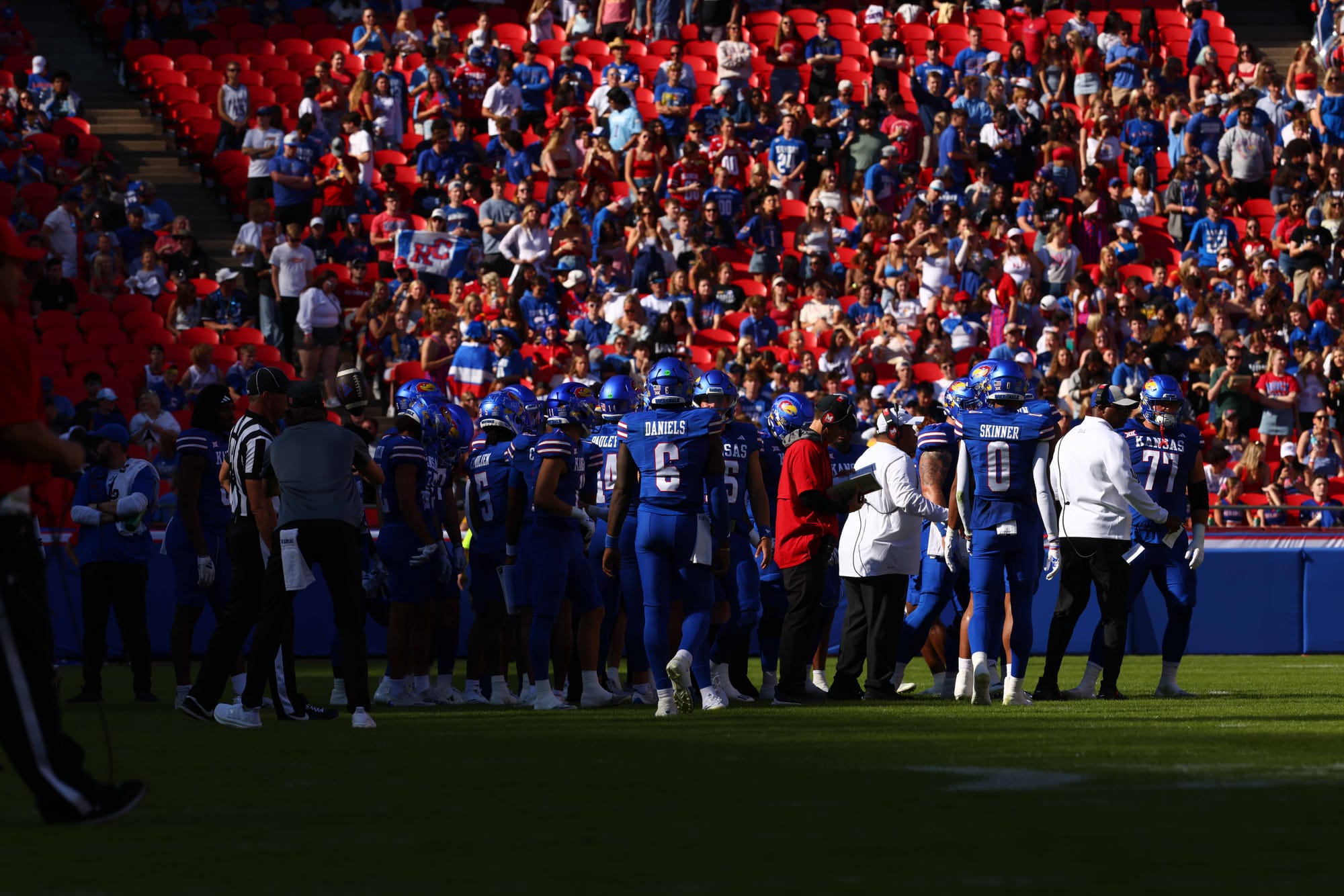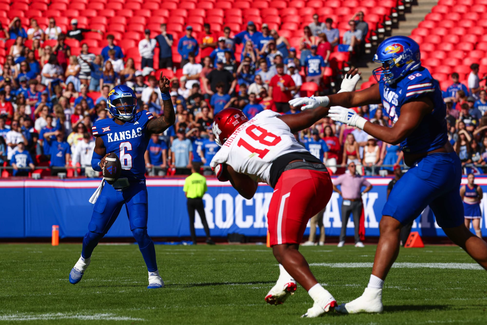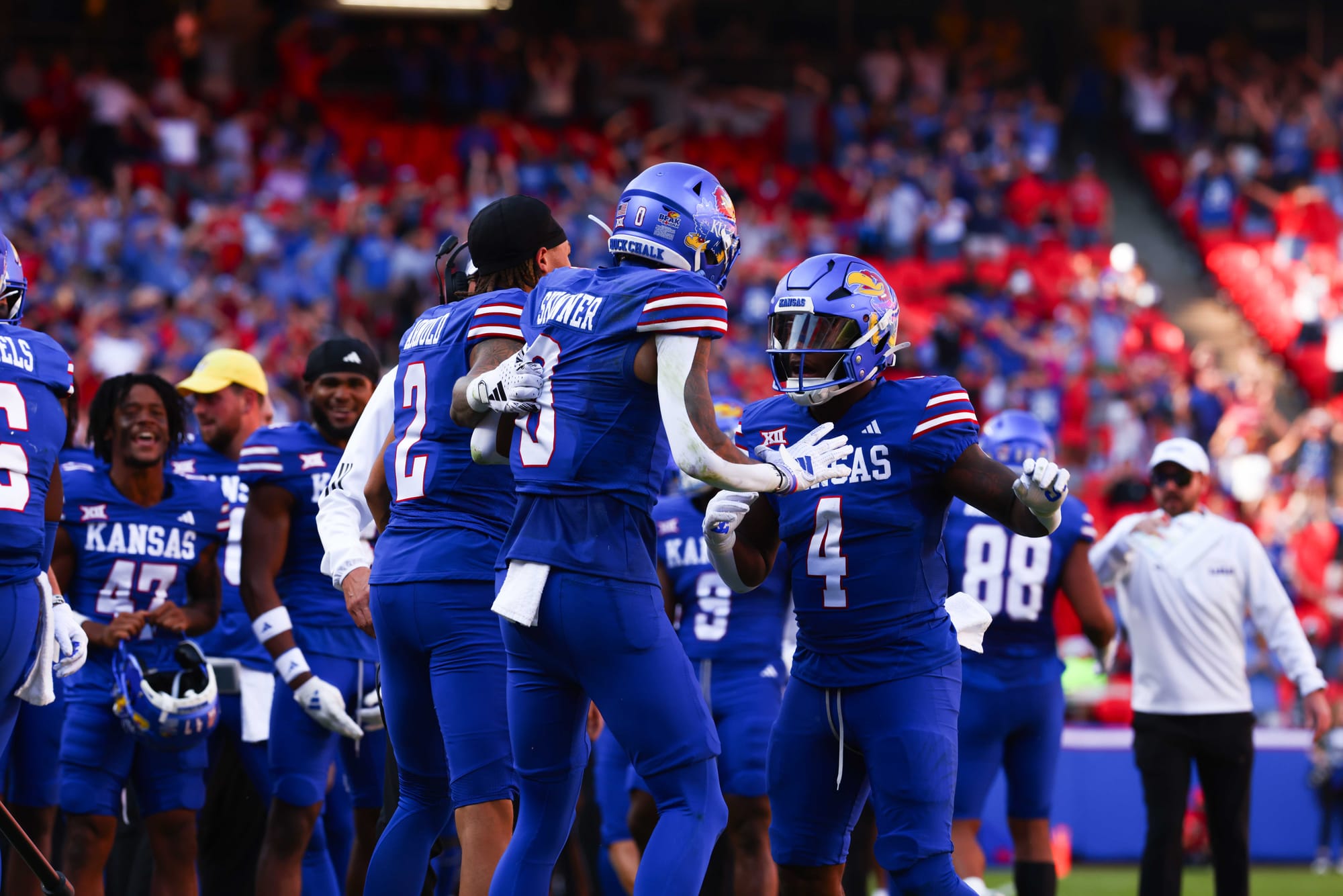 Kansas City, Missouri — The Kansas football team snapped its five-game losing streak in convincing fashion on Saturday, clobbering visiting Houston 42-14 at Arrowhead Stadium.