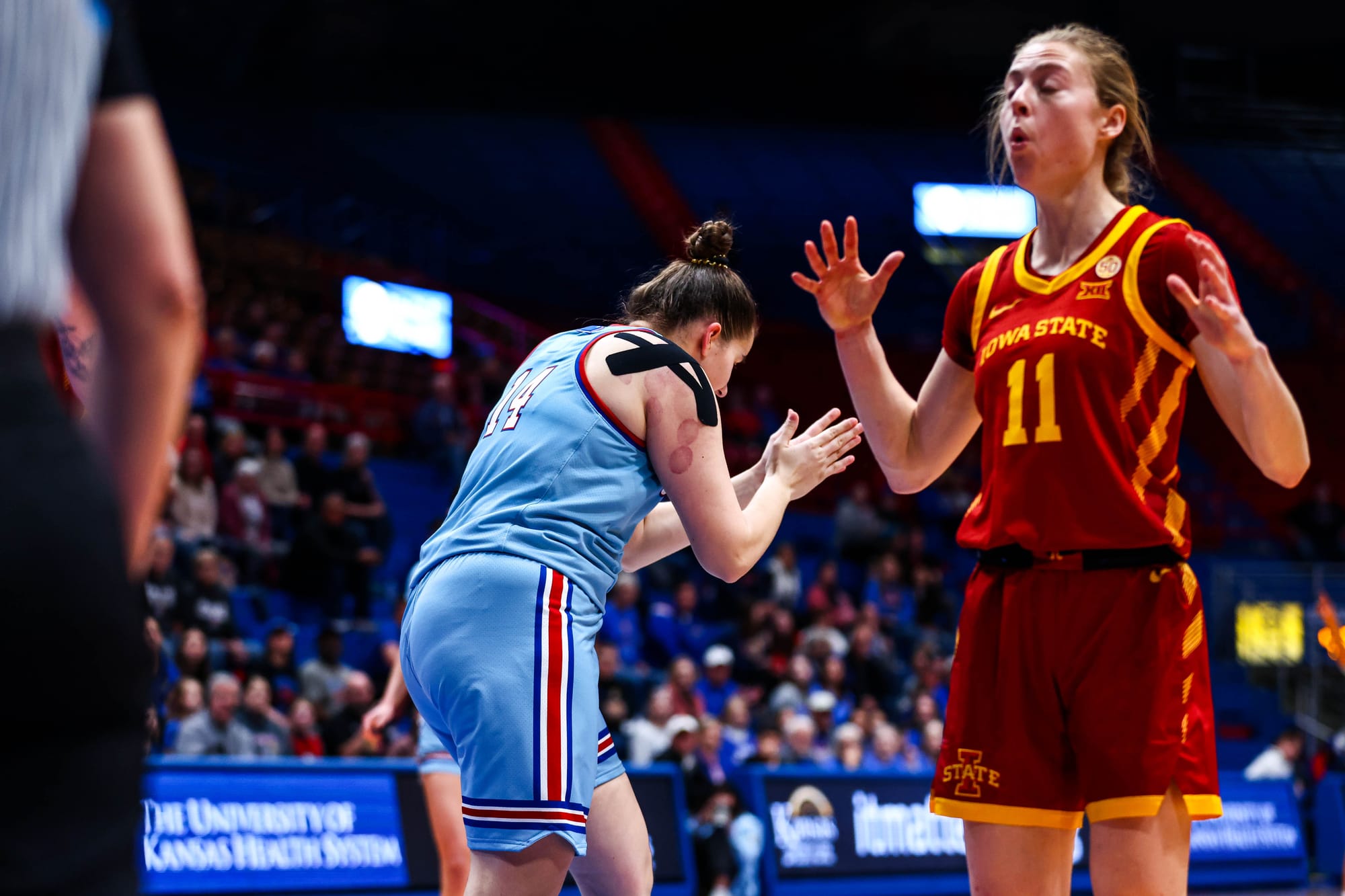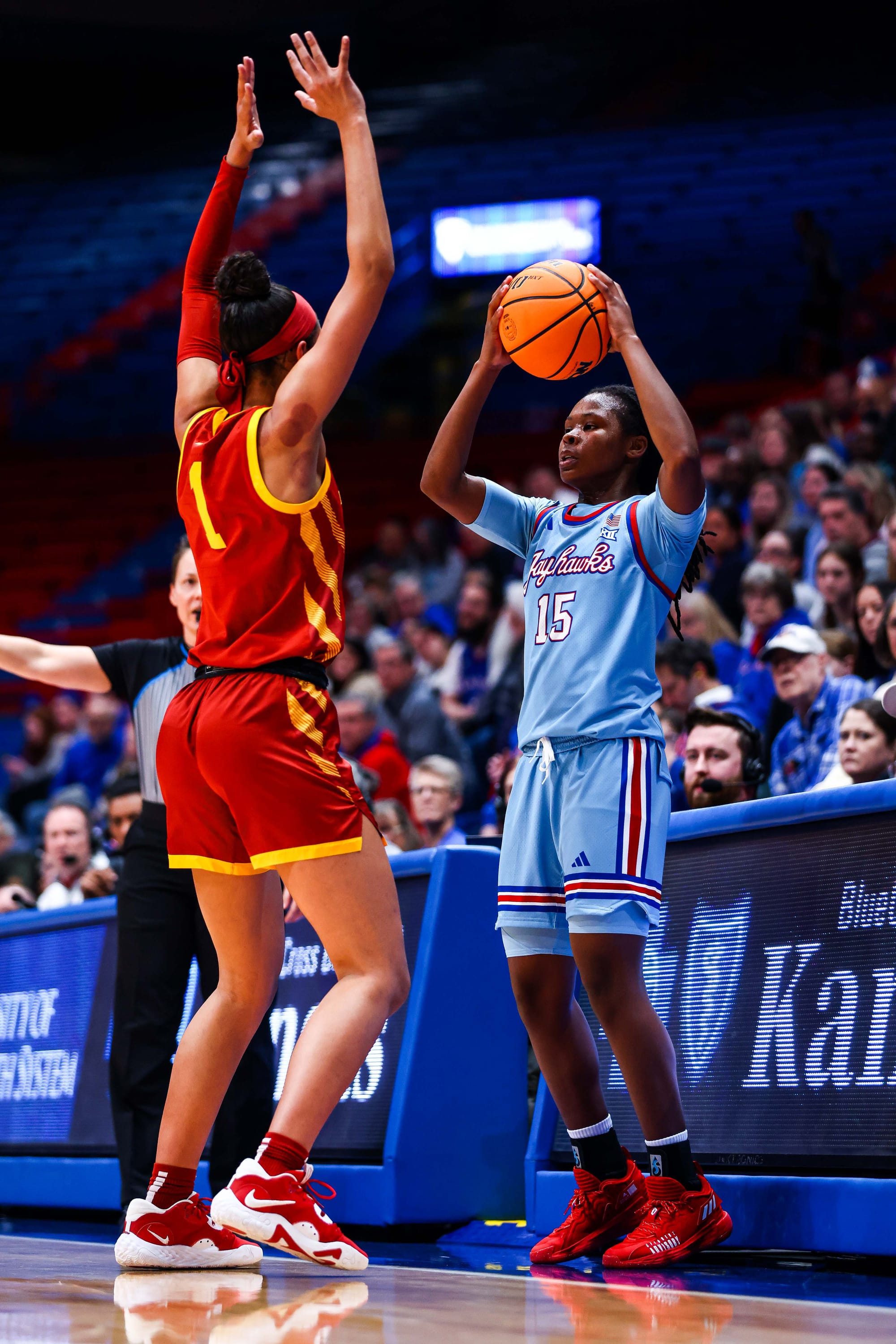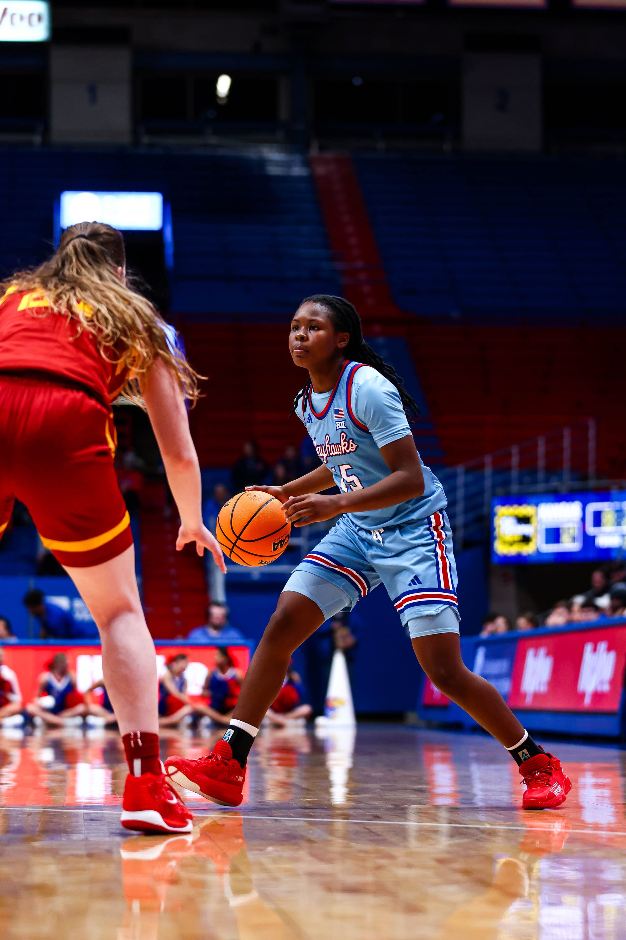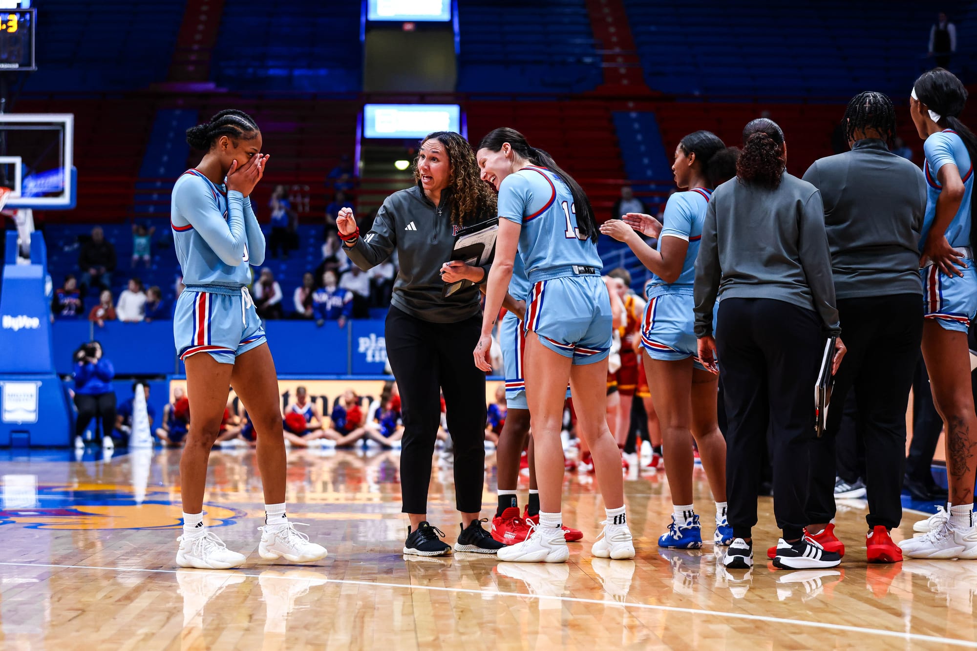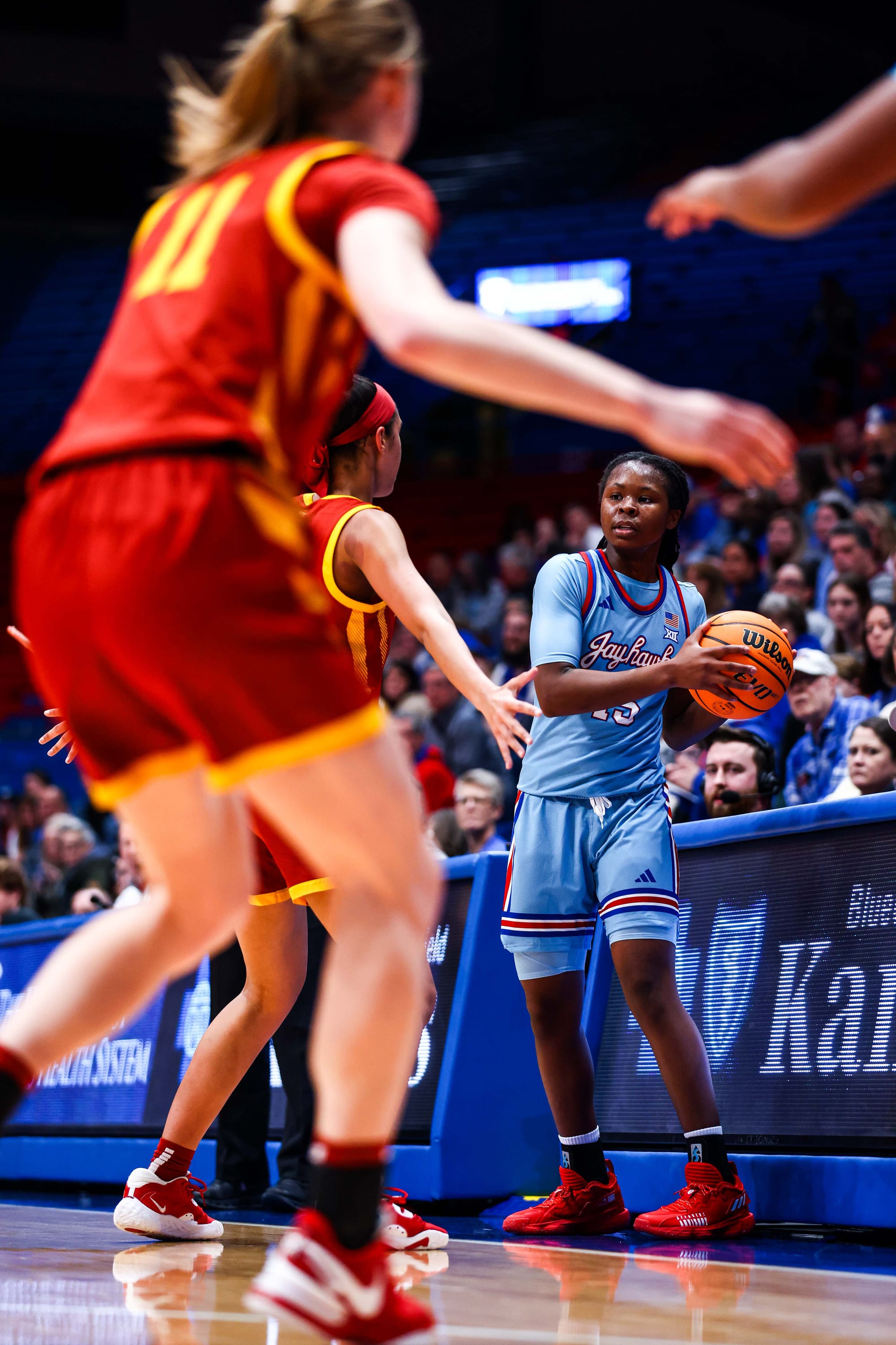 S'Mya Nichols (16), Zakiyah Franklin (13) and Wyvette Mayberry (13) led the KU offense, and the Jayhawks' defense, which KU coach Brandon Schneider called "exceptional" after the win, held ISU to 39% shooting and just 2 fastbreak points. In the first meeting, the Cyclones scored 19 in transition.