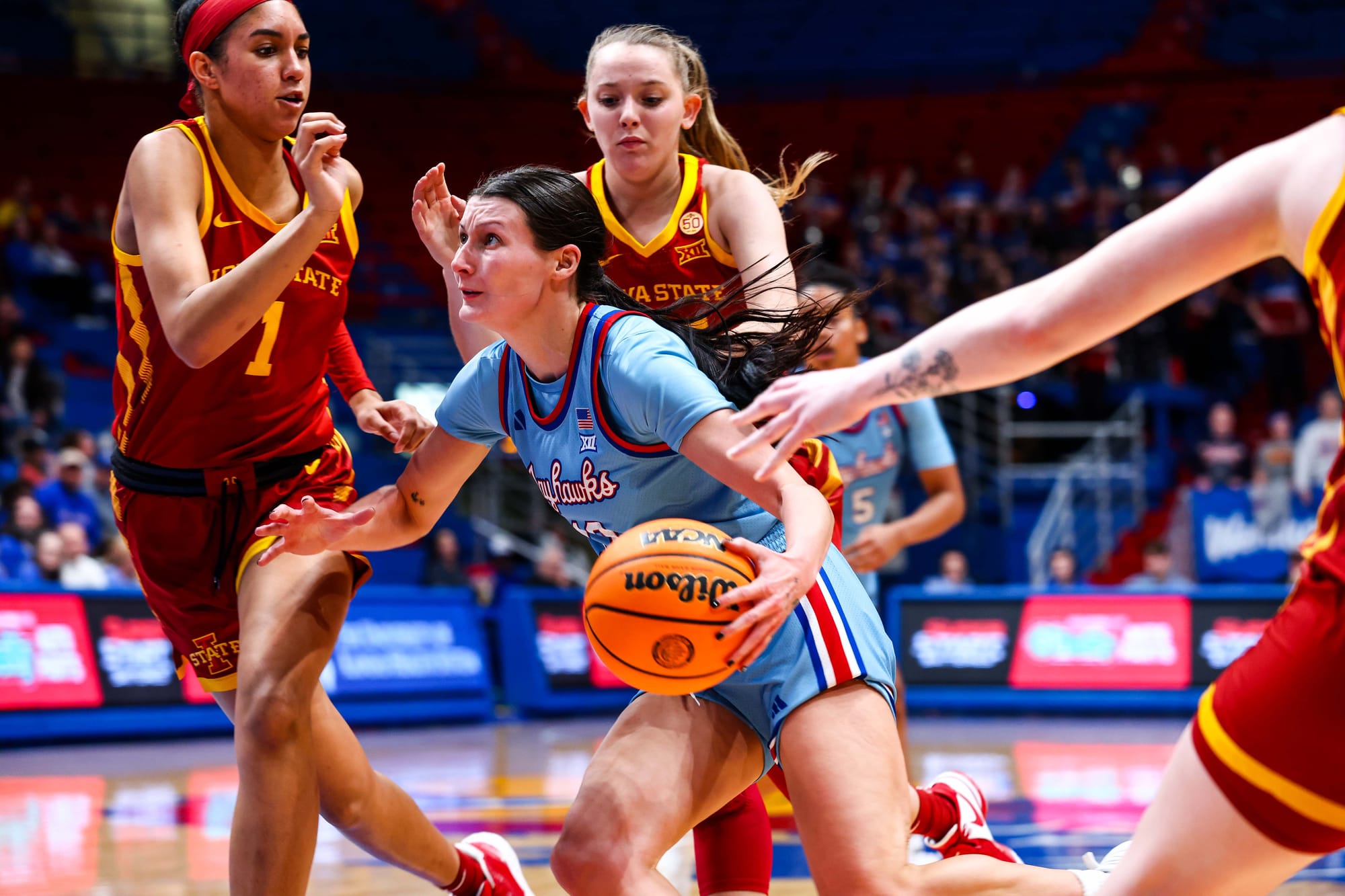 The Kansas women's basketball team picked up a huge, 60-58 win over Big 12 foe Iowa State on Wednesday night at Allen Fieldhouse.
