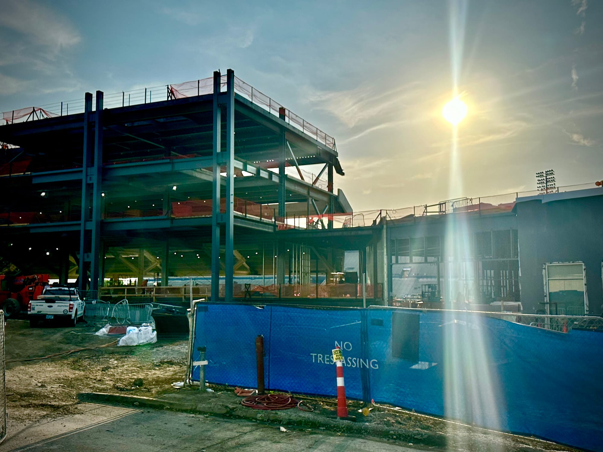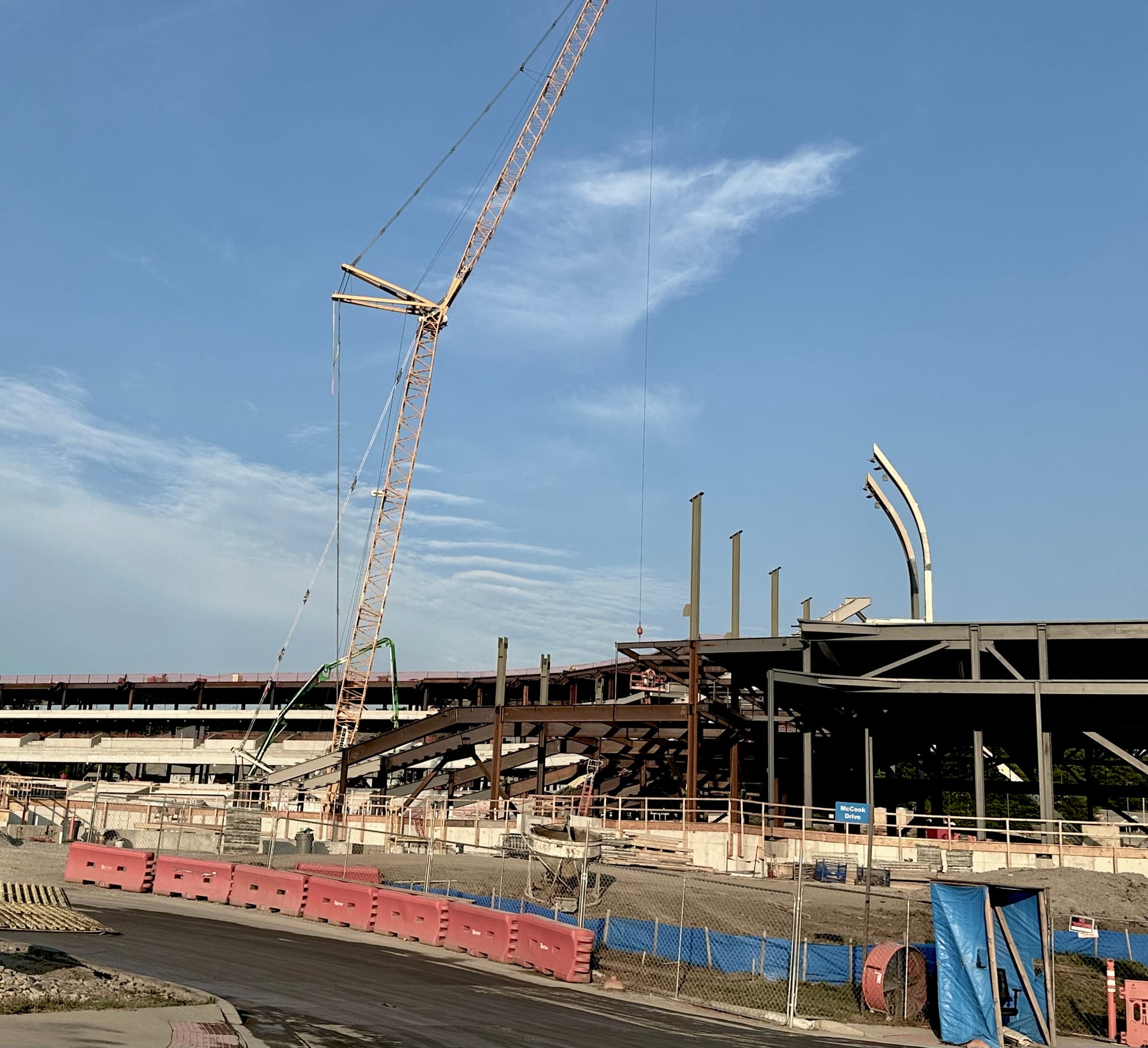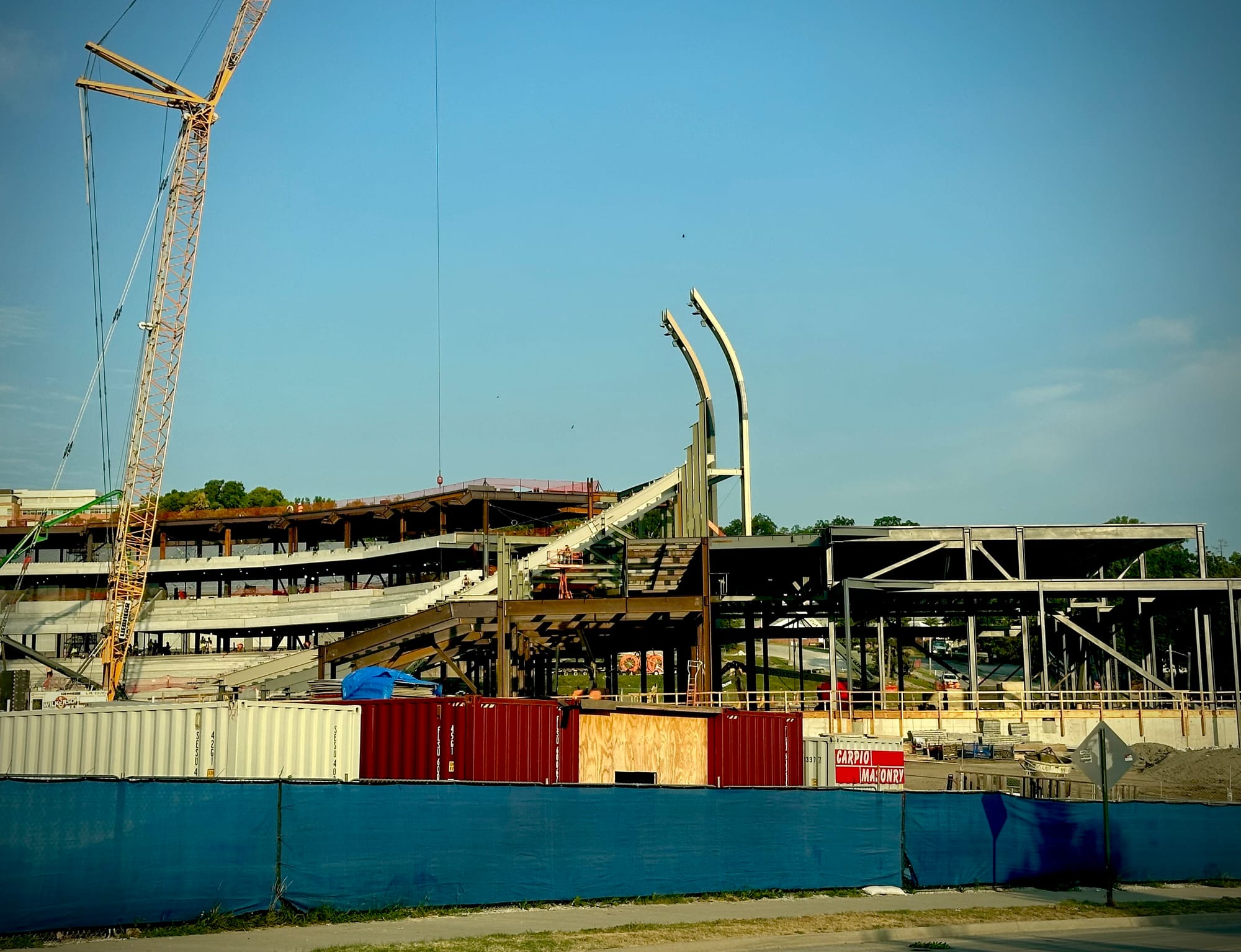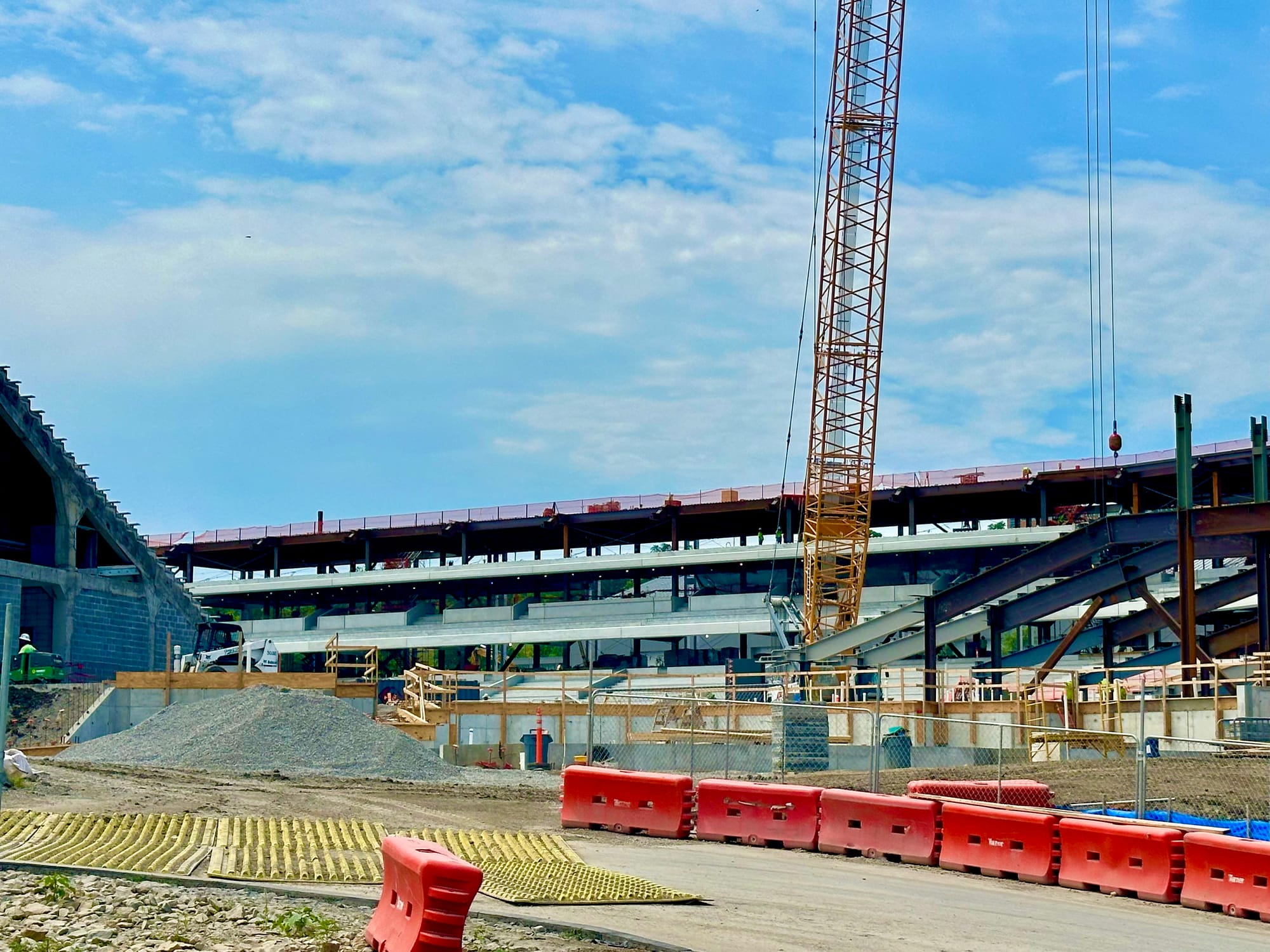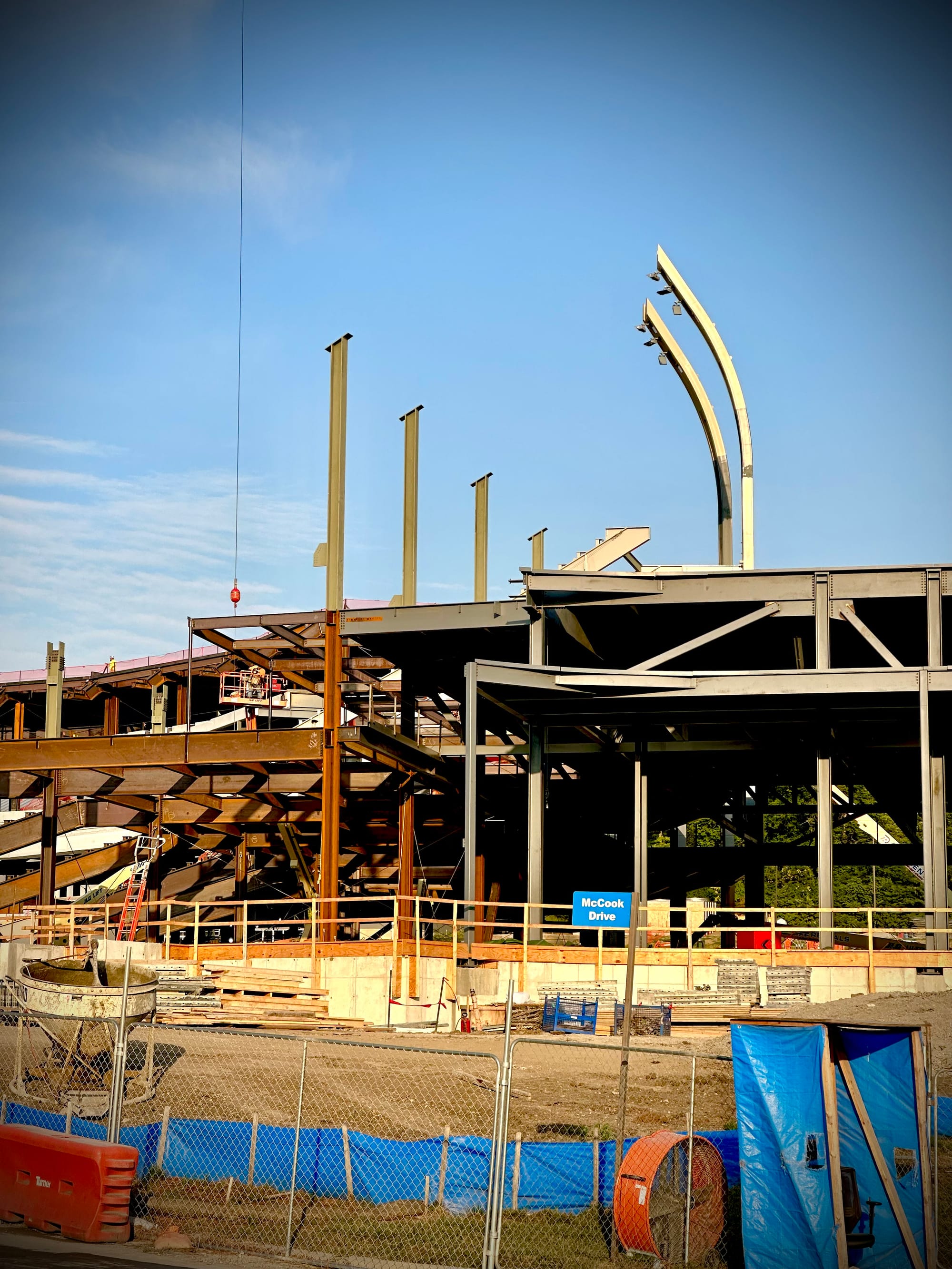 There's still plenty to be done and all kinds of work ahead, but the frame of the new stadium is now clearly visible and they've started to install the light poles that will give the new venue its unique and signature look.