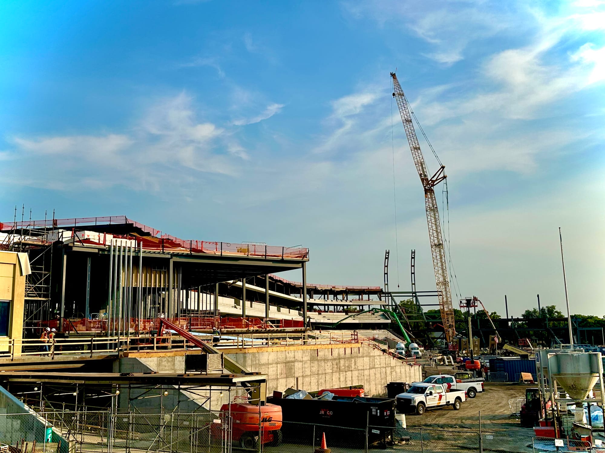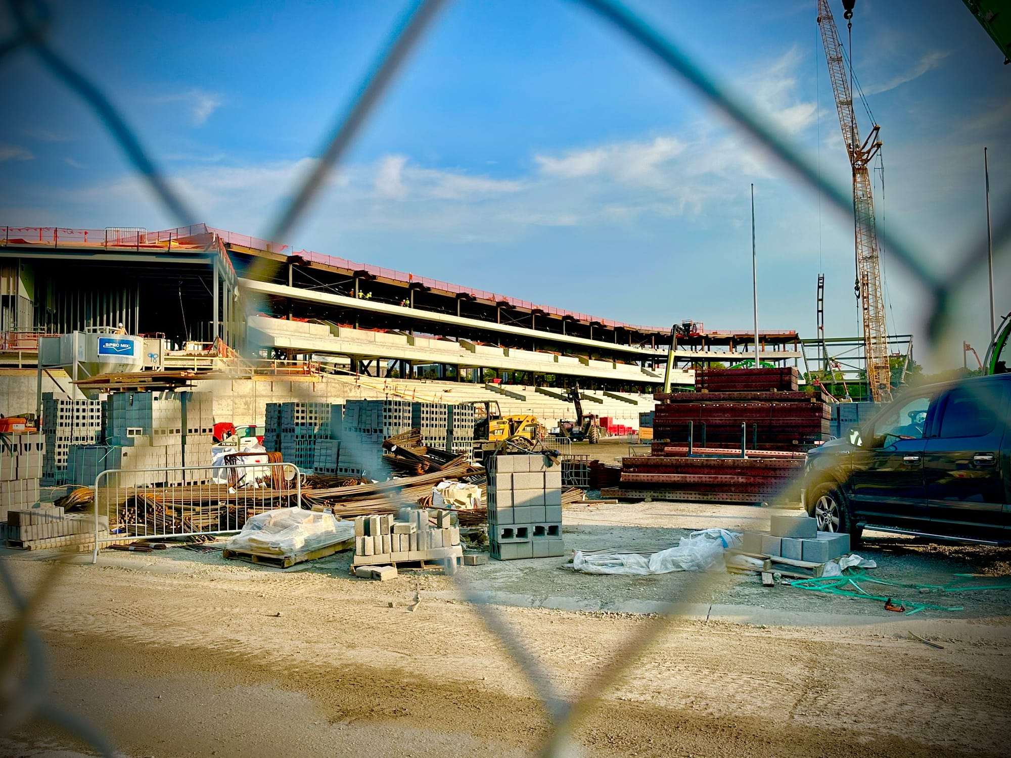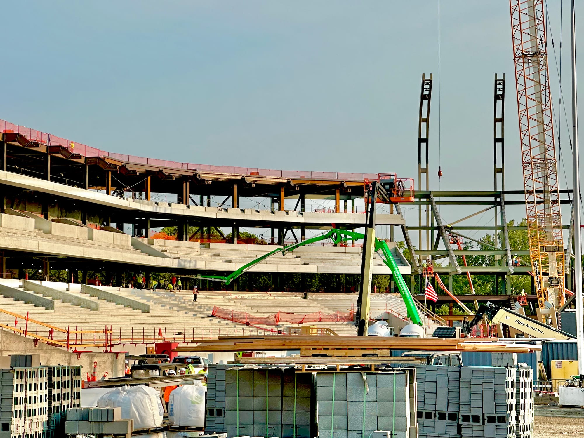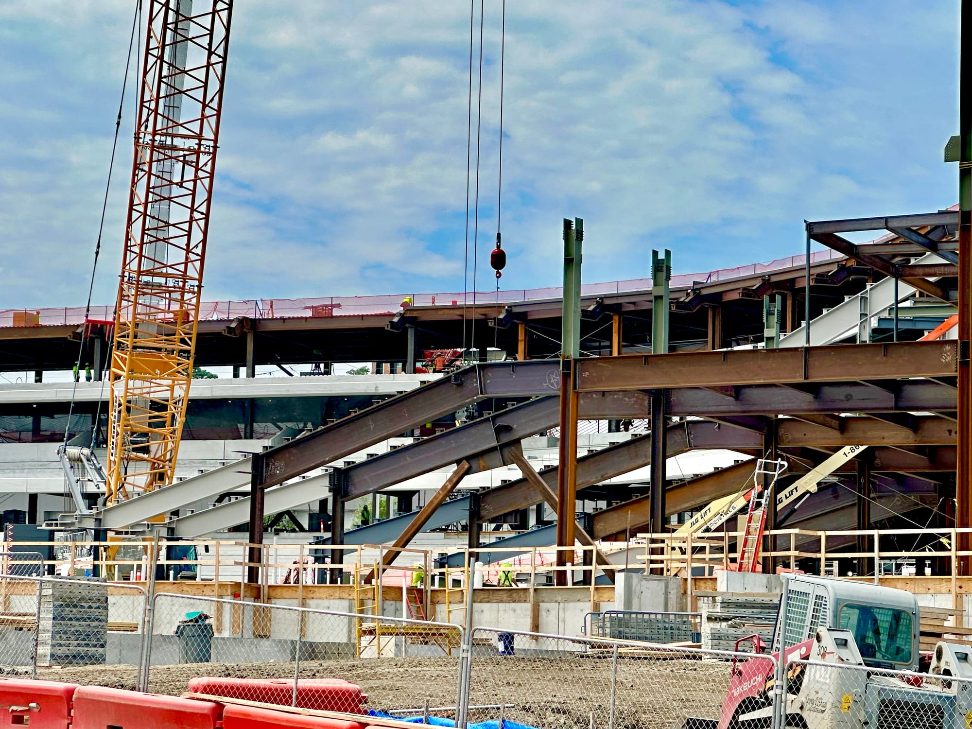 There's still plenty to be done and all kinds of work ahead, but the frame of the new stadium is now clearly visible and they've started to install the light poles that will give the new venue its unique and signature look.