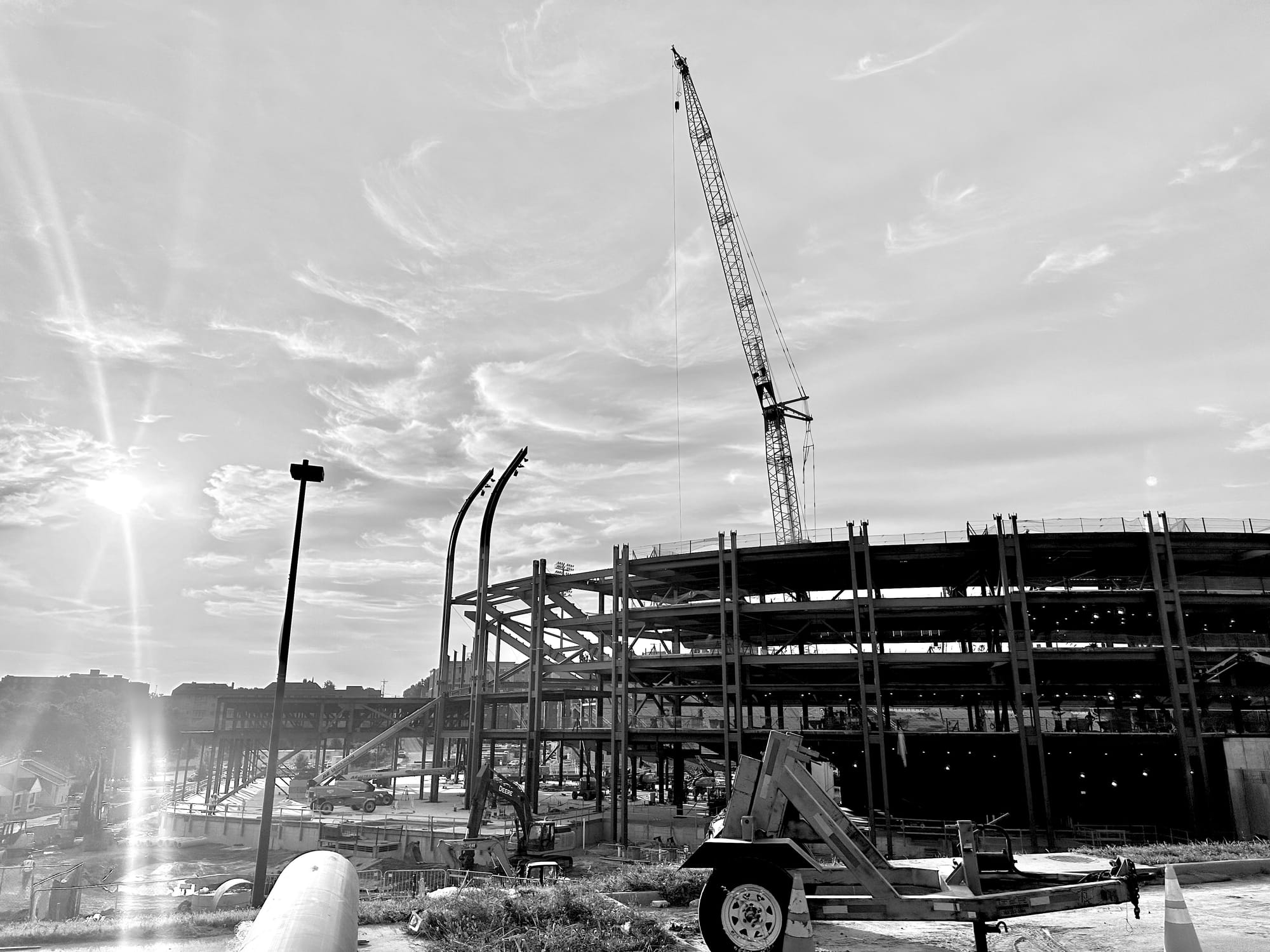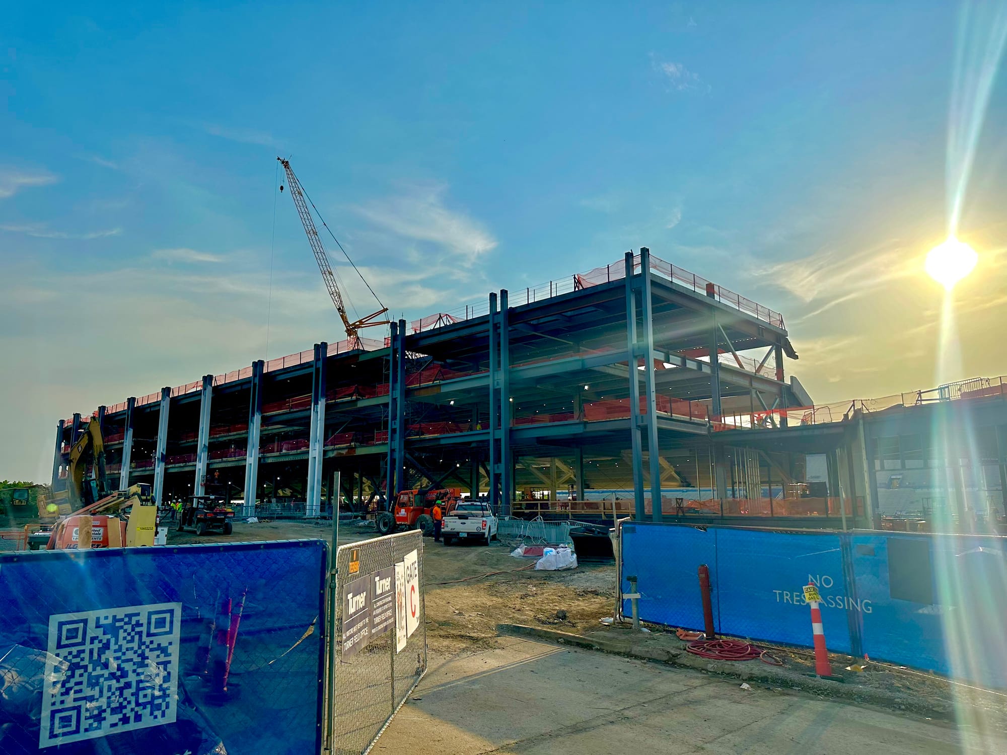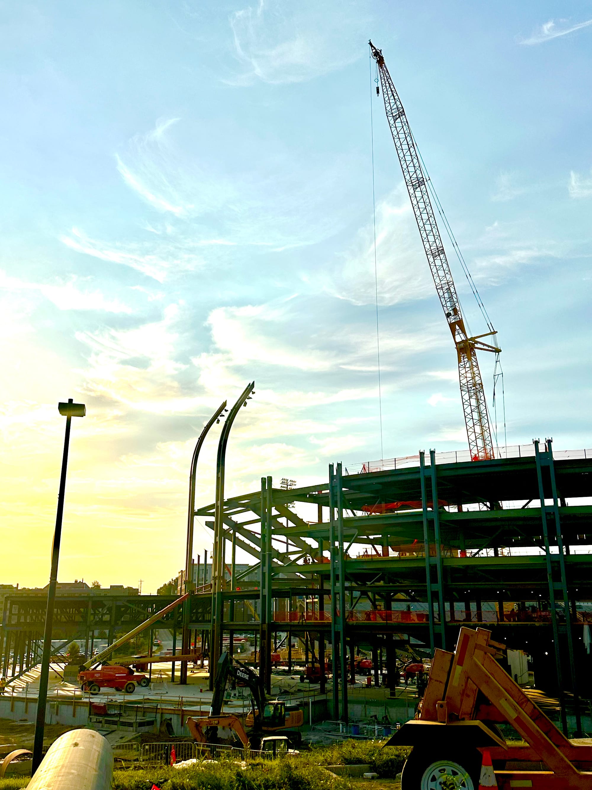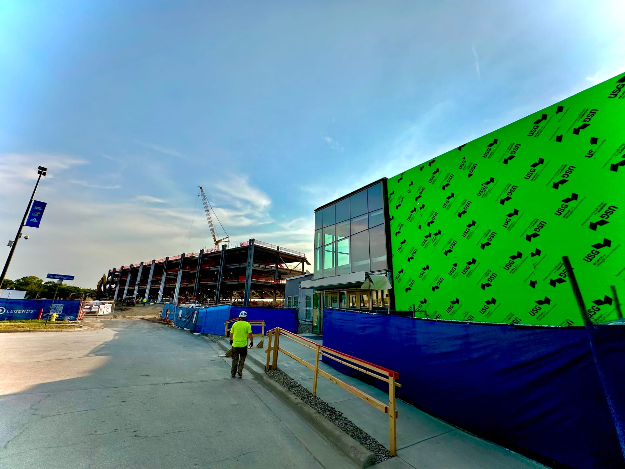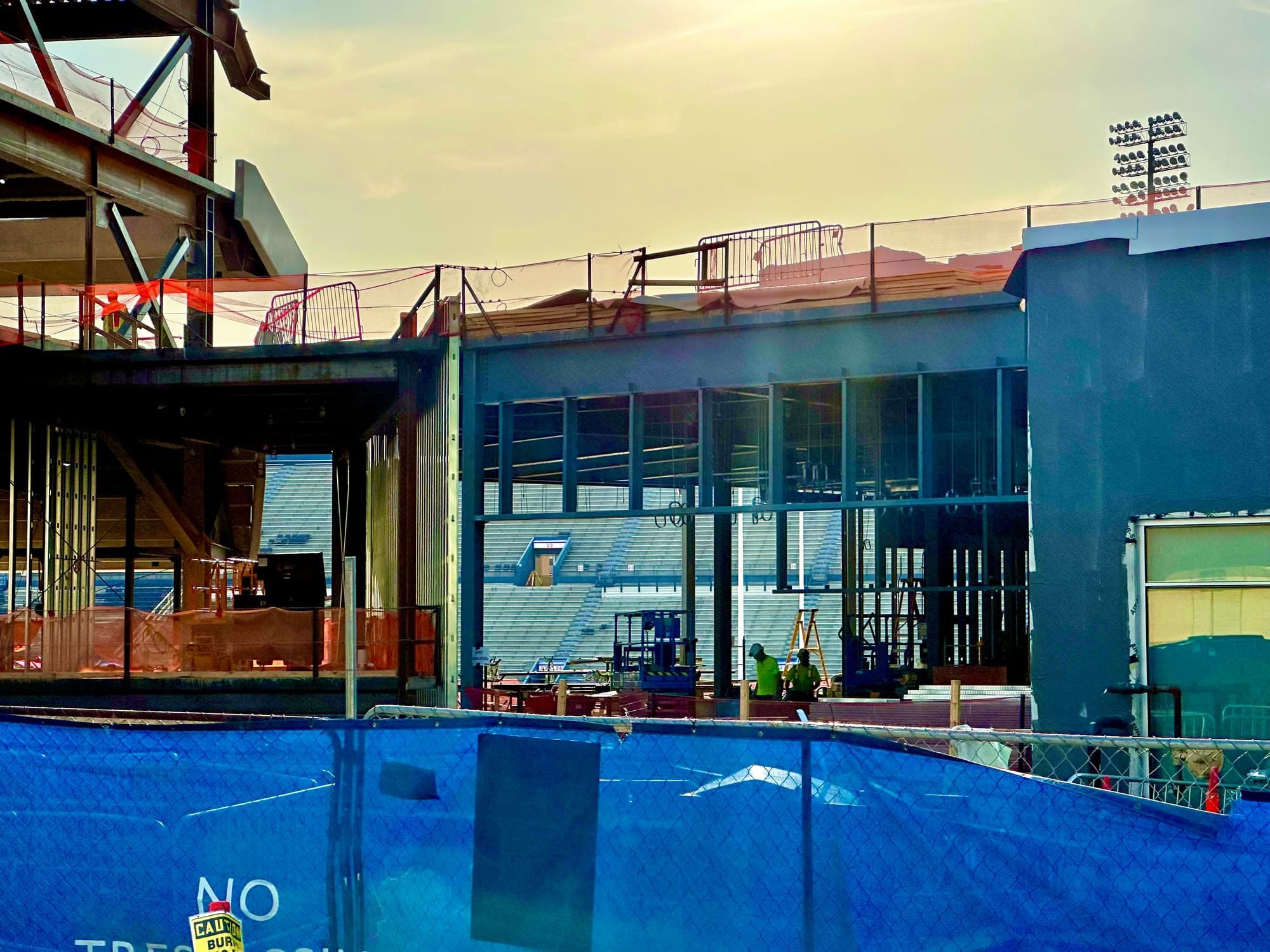 There's still plenty to be done and all kinds of work ahead, but the frame of the new stadium is now clearly visible and they've started to install the light poles that will give the new venue its unique and signature look.