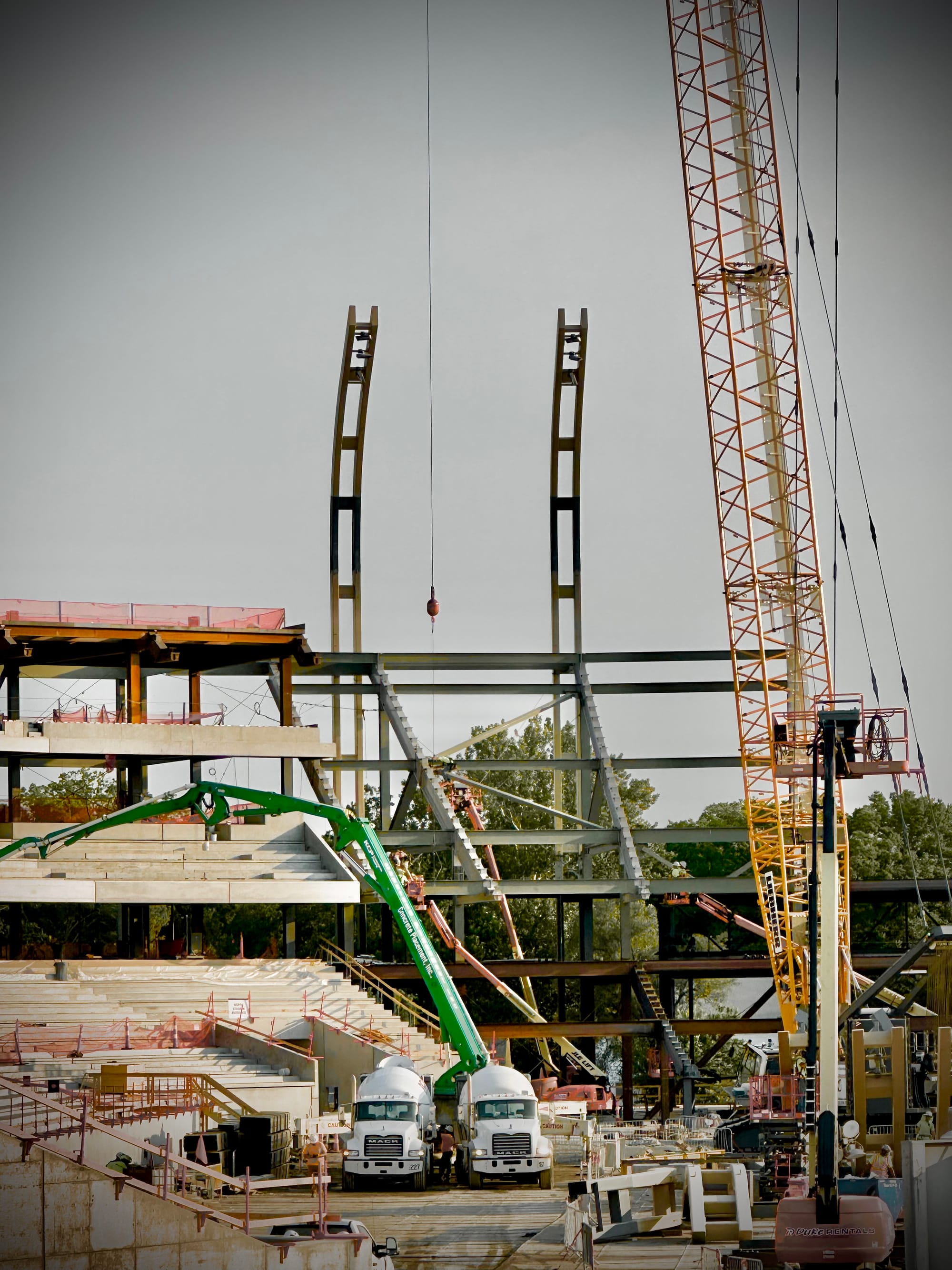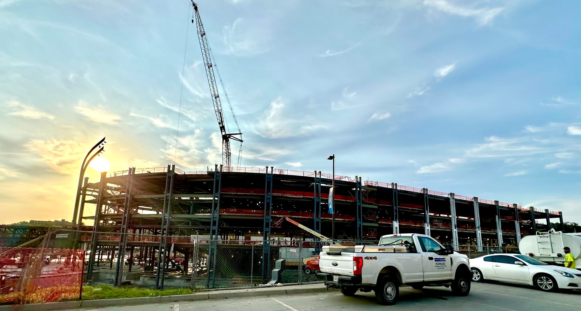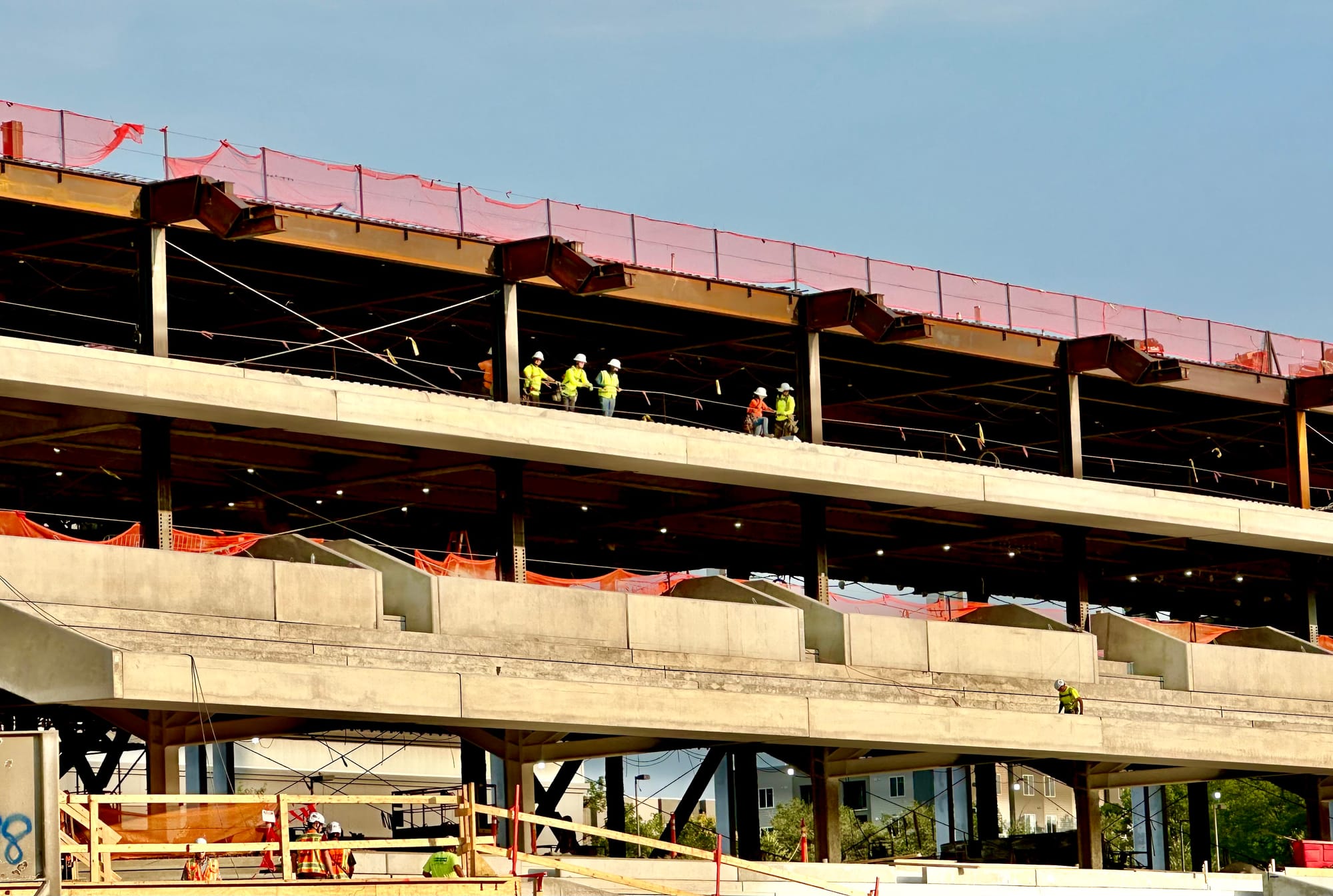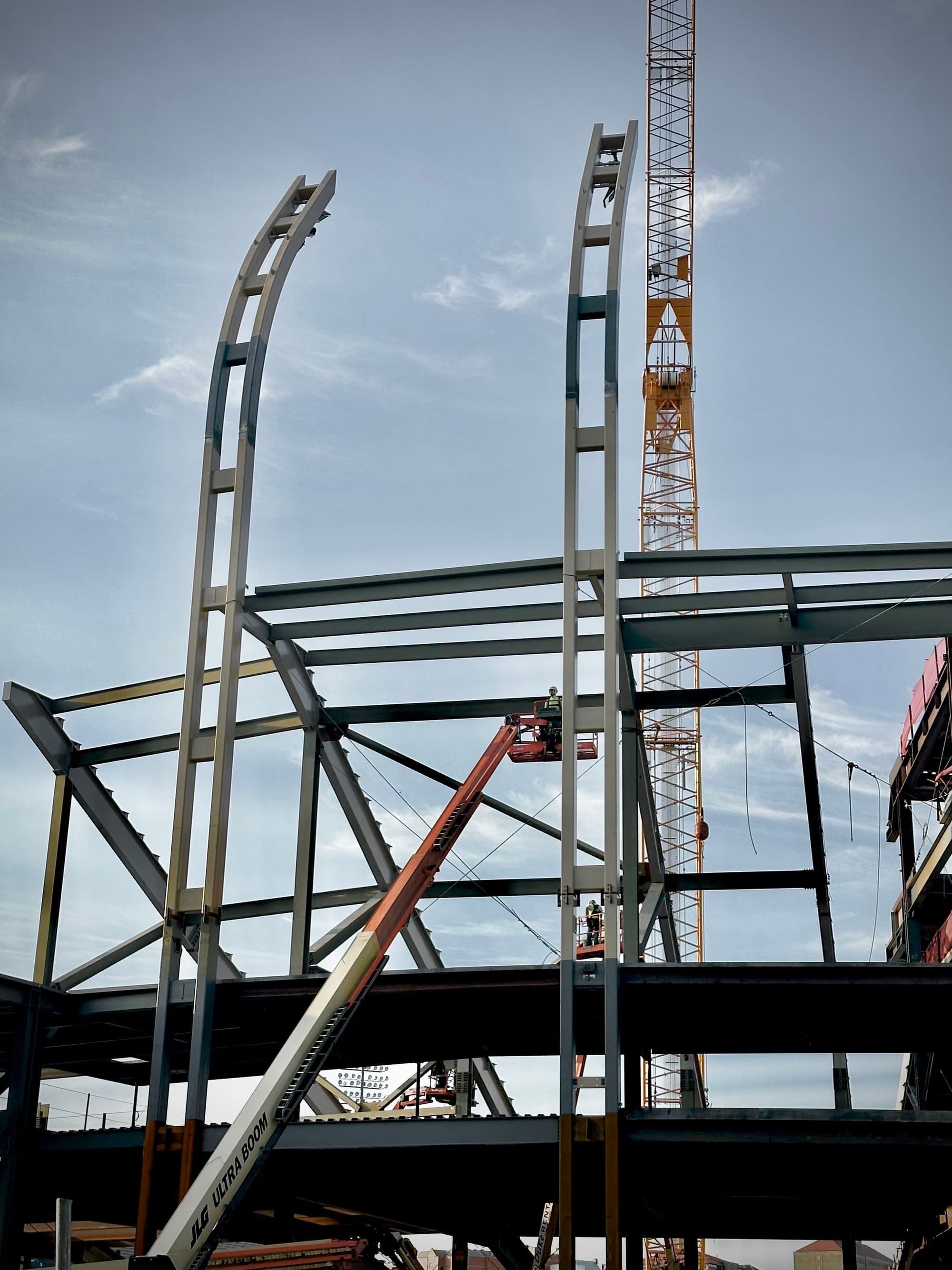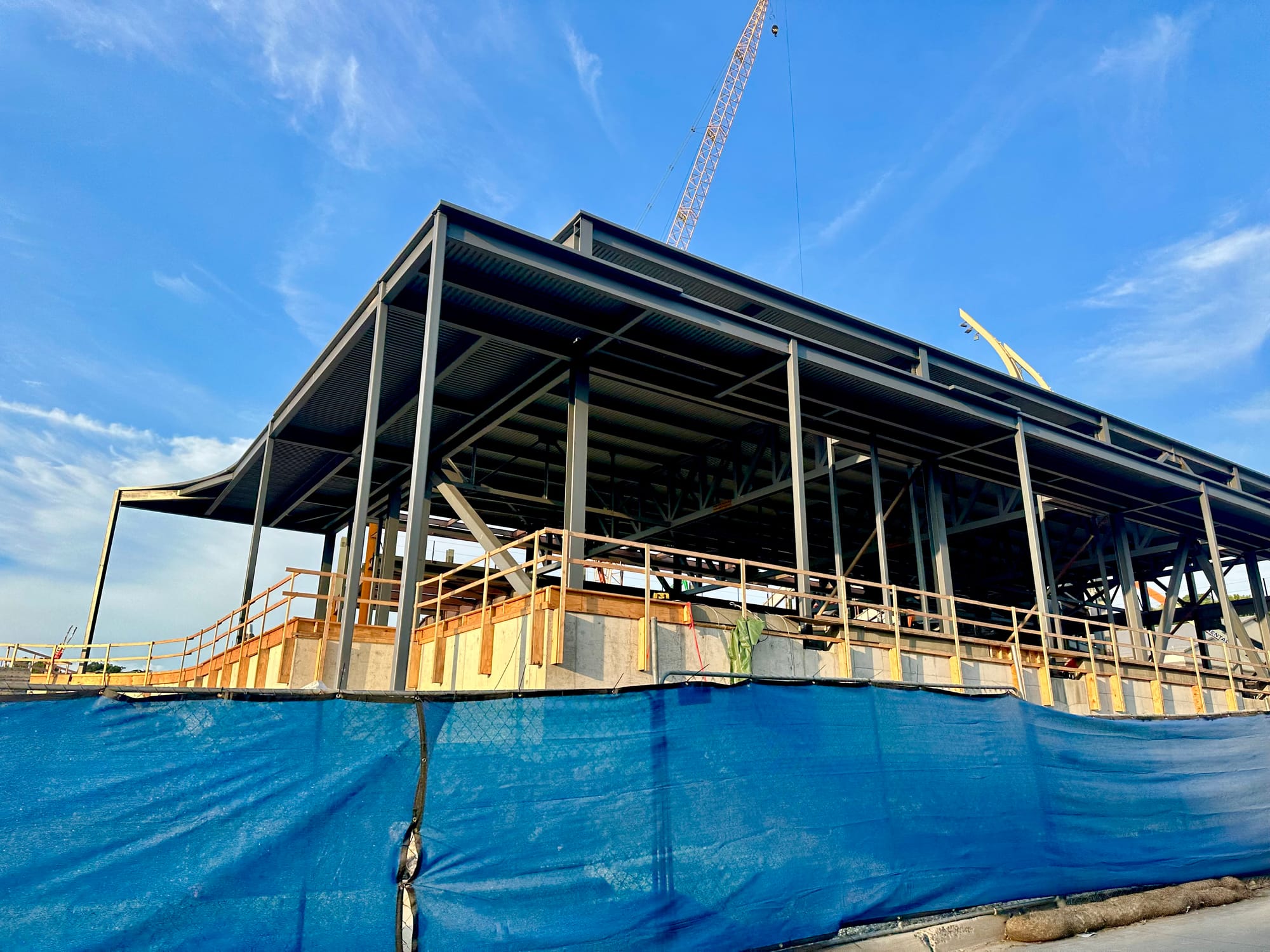 There's still plenty to be done and all kinds of work ahead, but the frame of the new stadium is now clearly visible and they've started to install the light poles that will give the new venue its unique and signature look.