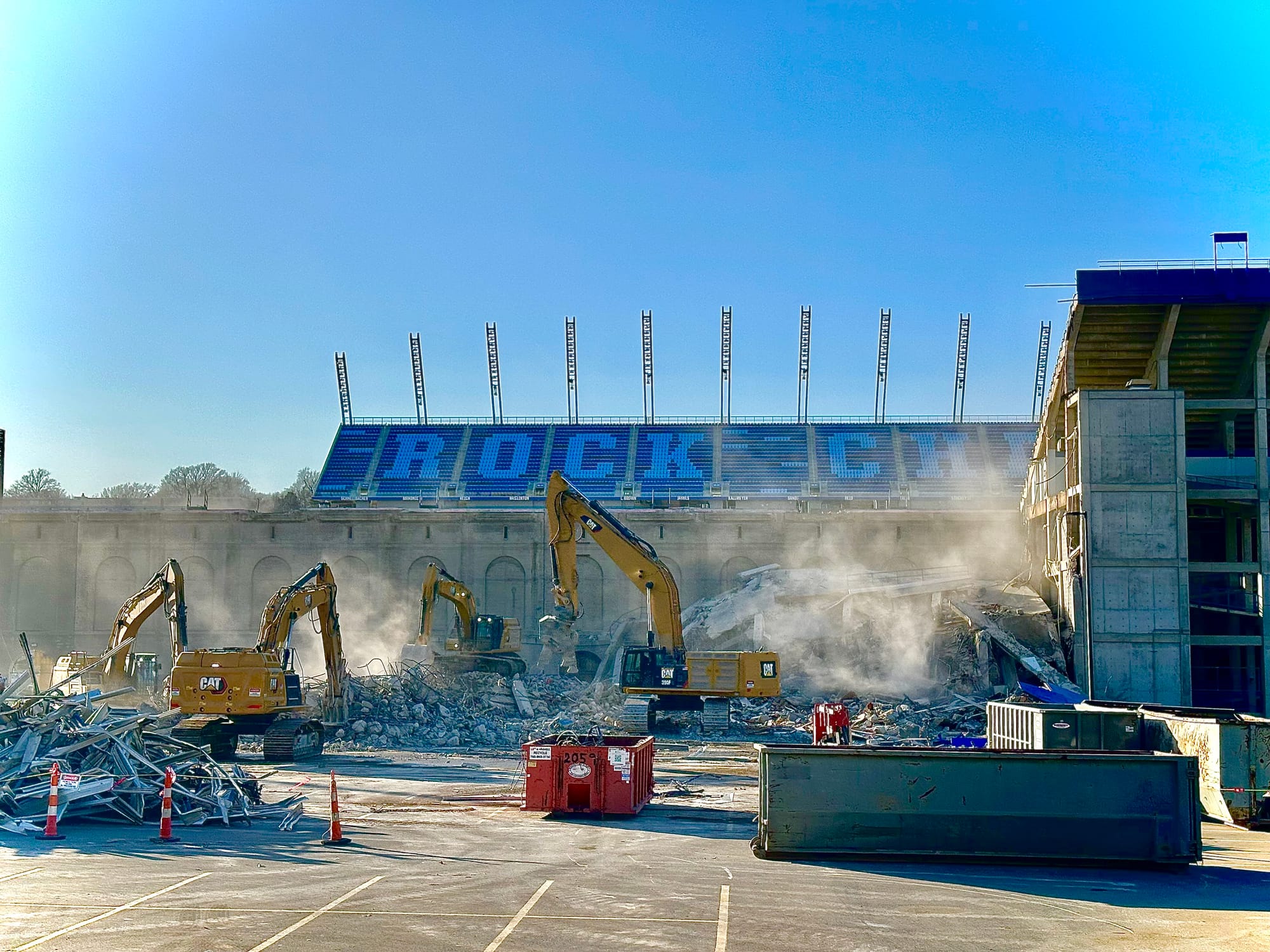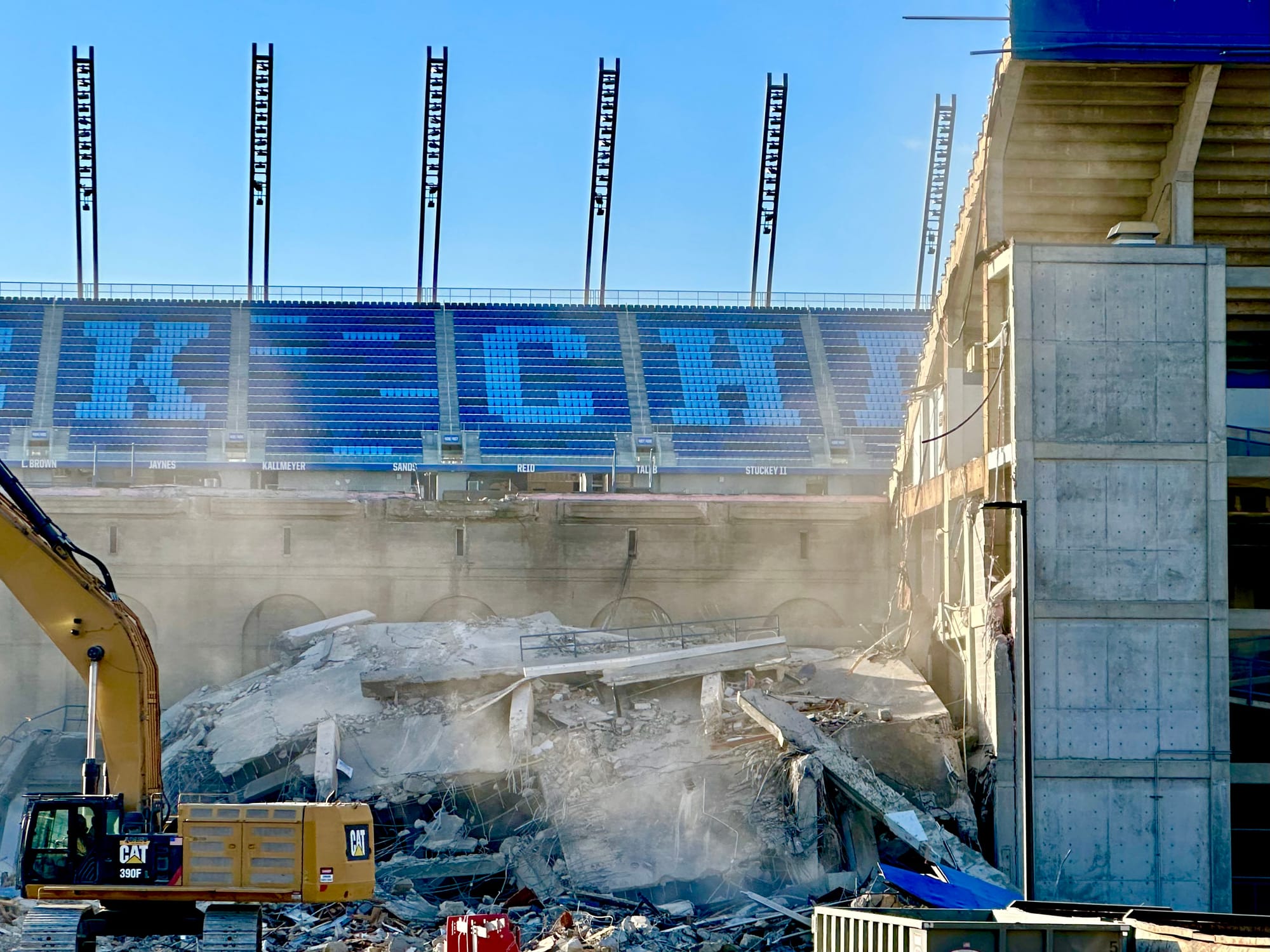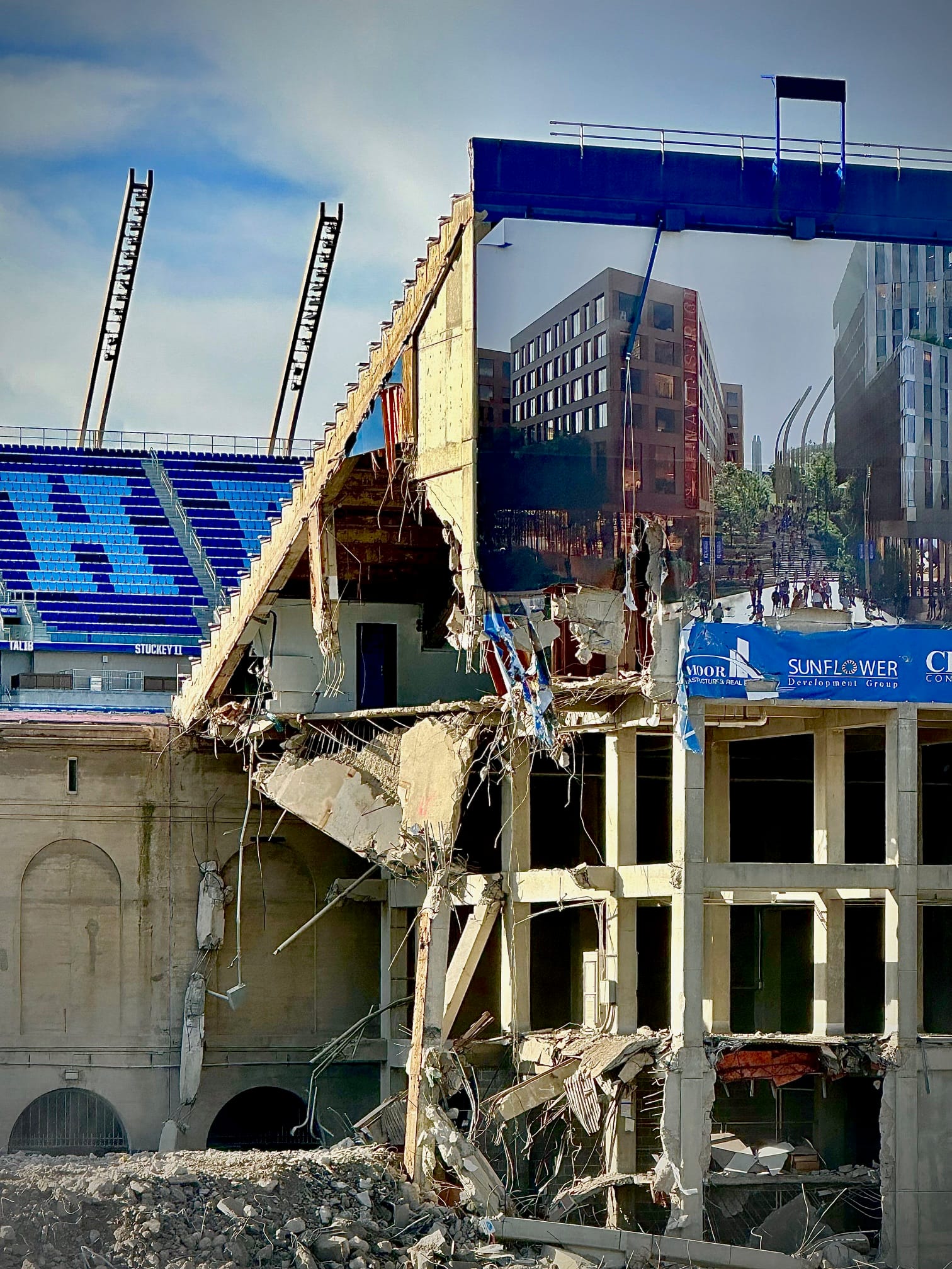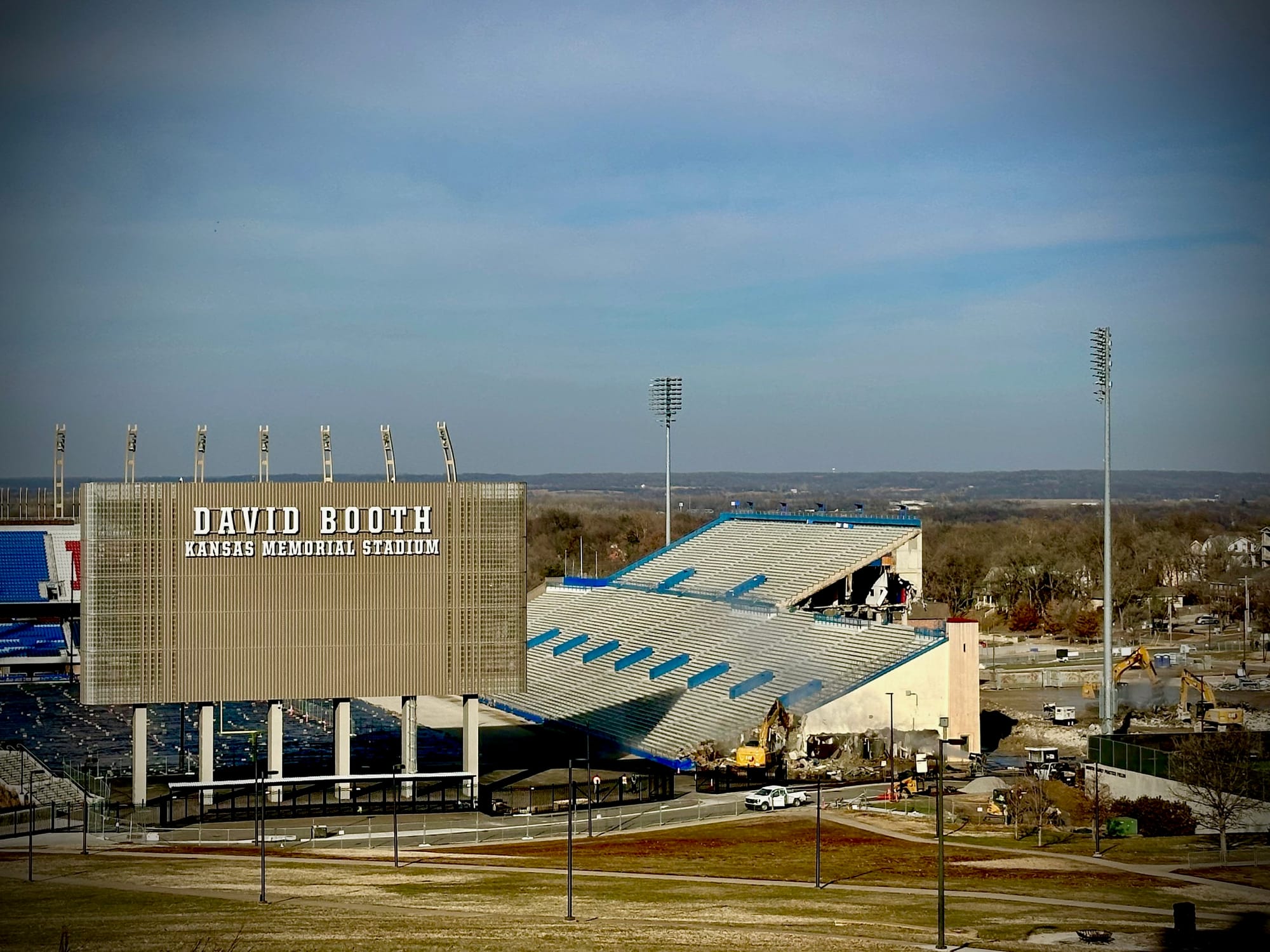Just like last year, when work on the Jayhawks' reimagined football venue began in the cold of December, demolition on the east side of The Booth got going in a big way last week.