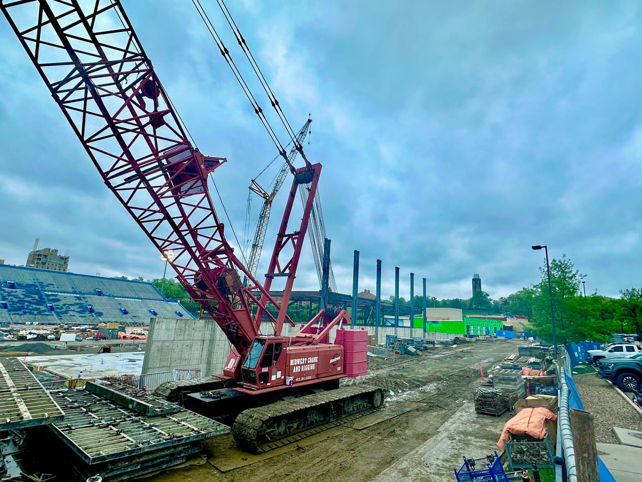 Hundreds of workers, dozens of different trucks and companies have been busy tearing down, clearing out, preparing new space and building in the spot where the new KU football stadium will stand.