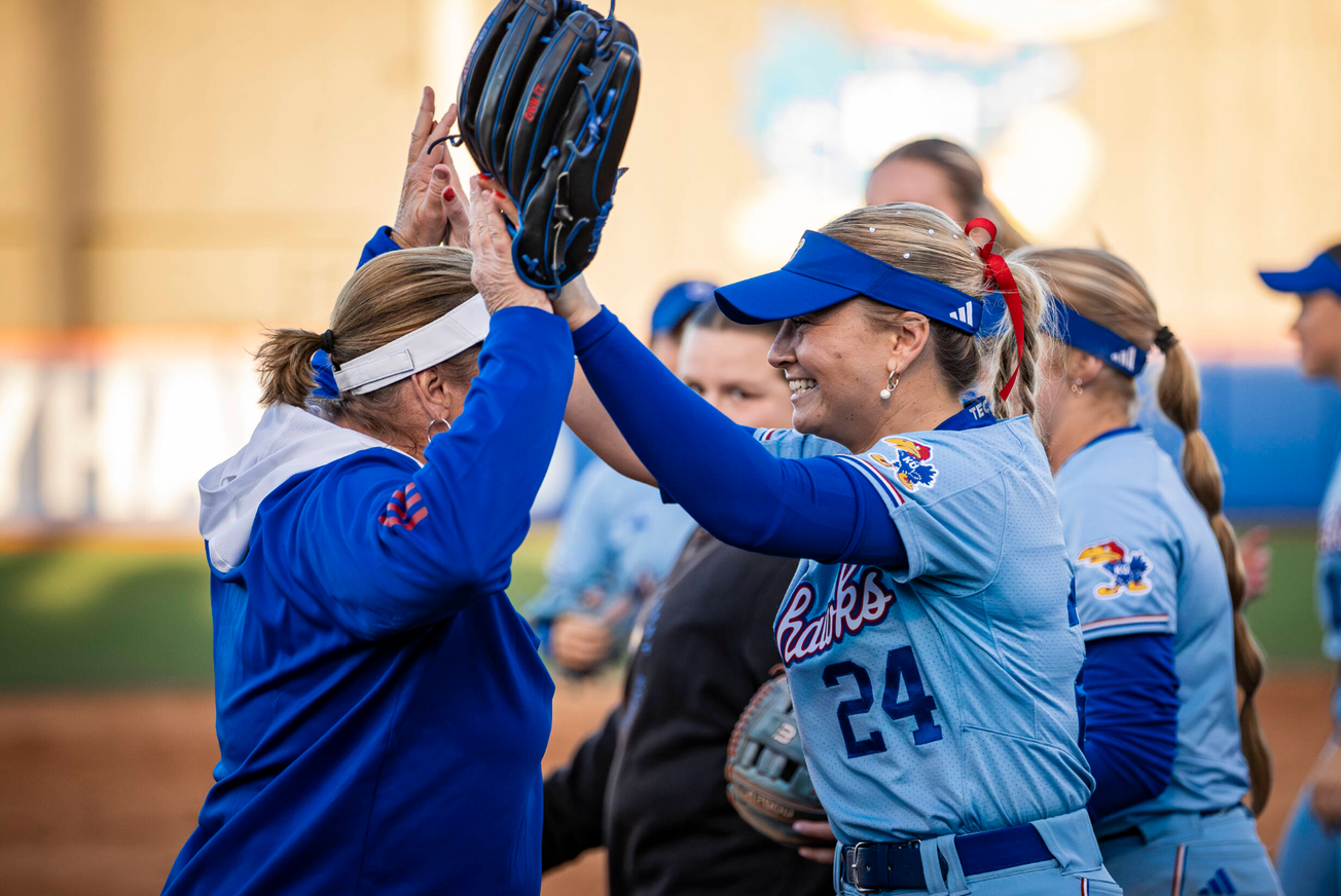 Heading into the fifth inning of Friday night’s home battle with No. 13 Baylor, Kansas softball ace Kasey Hamilton appeared to be well on her way to recording another shutout to add to her Big 12-leading total so far this season.