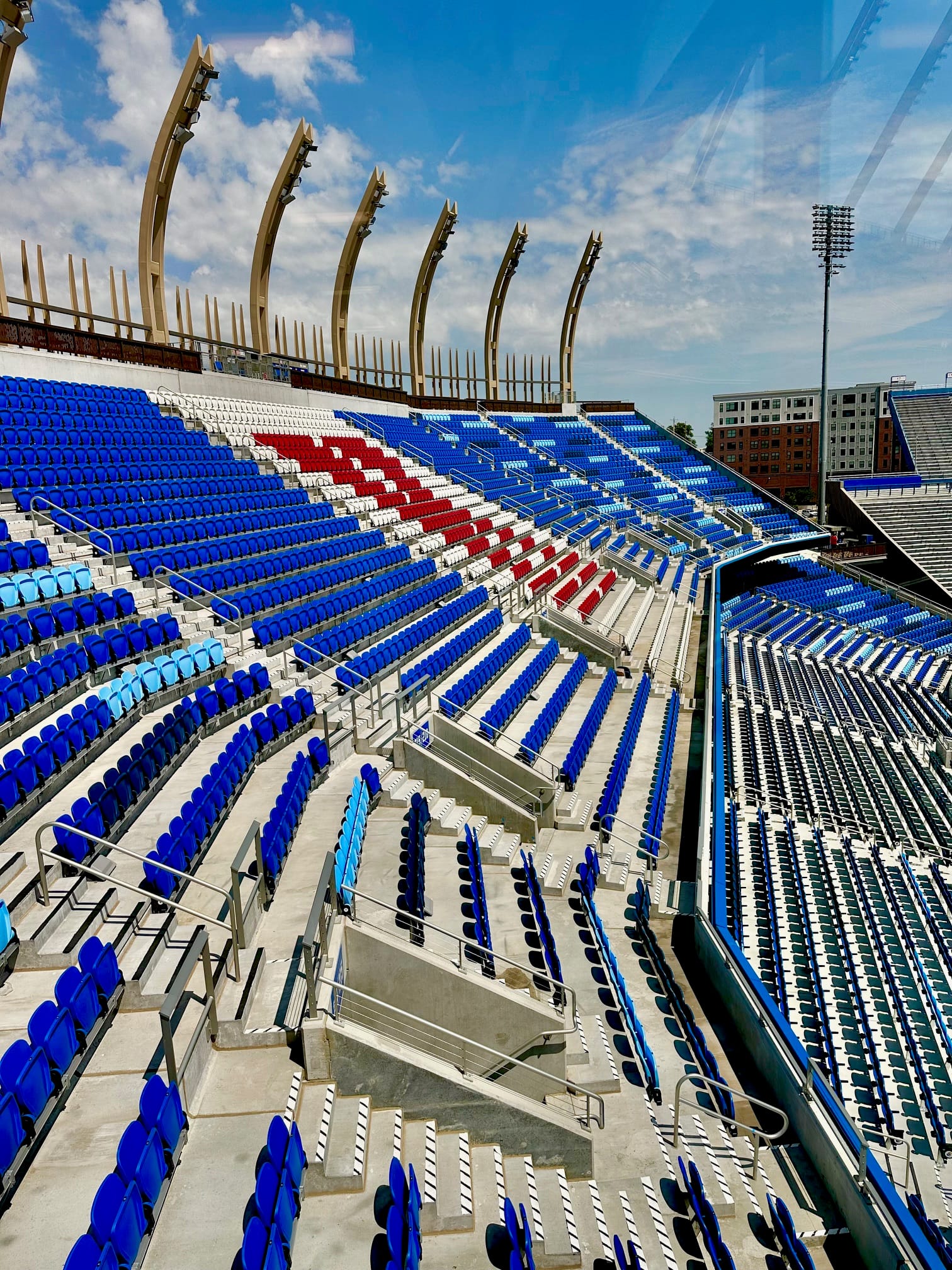 The line where old meets new, with a glimpse into the east side and old stadium on the far right.