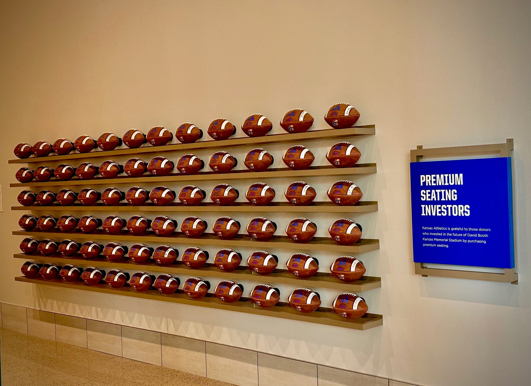 Two of the biggest families who made The Booth and the Anderson Family Football Complex possible have plaques honoring them inside the entry to the premium sections. Several other important and celebrated donors have areas of The Booth named for them throughout the inside and outside of the venue. A wall of autographed footballs from the first premium seating investors is displayed nearby the Booth and Anderson plaques.