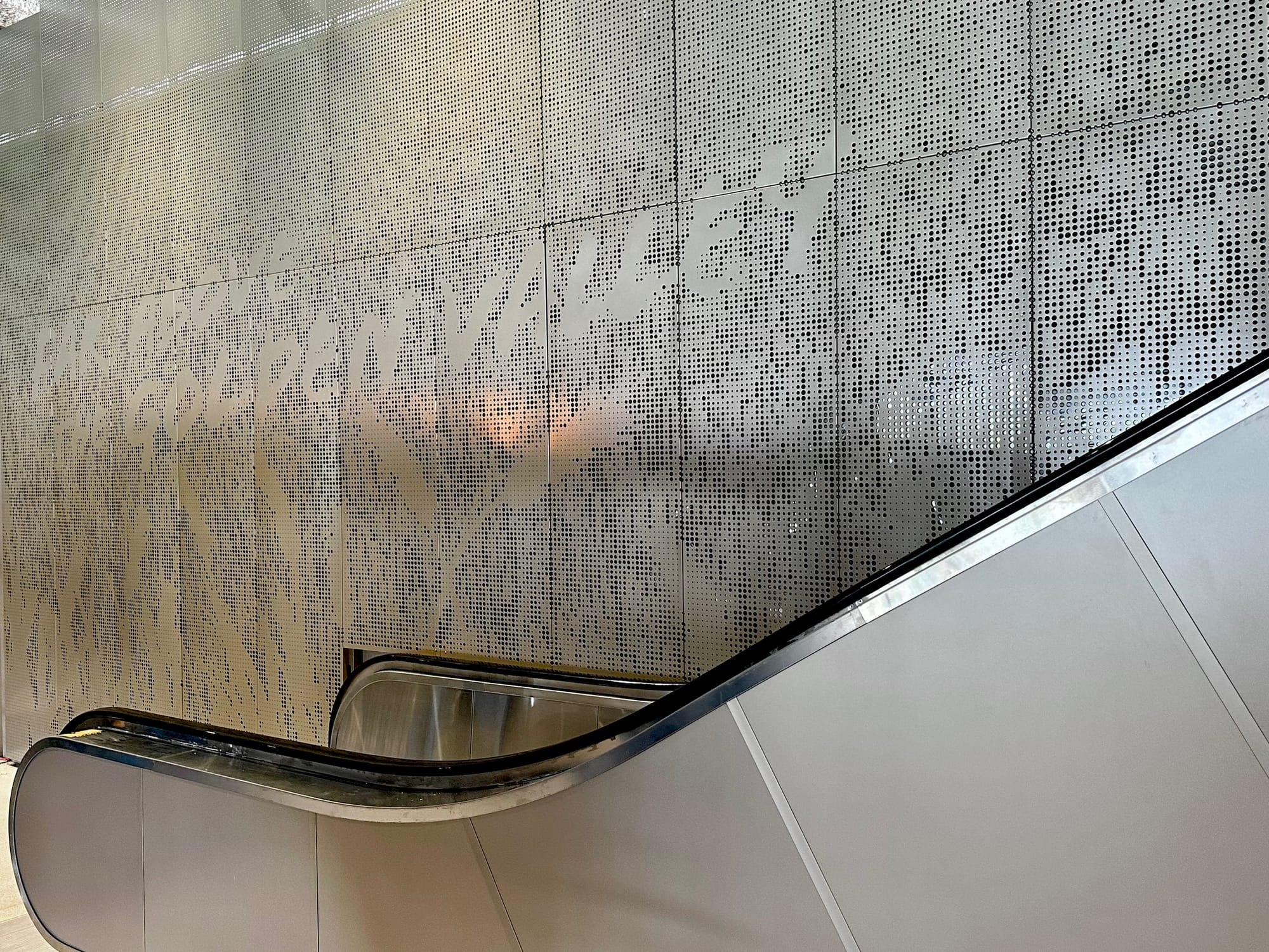 This escalator is the only one in Lawrence (and maybe the first in the city's history) and brings The Booth into a tie for having as many escalators as there are in the entire state of Wyoming. The "Far Above The Golden Valley" lyric, from the school's alma mater, is a cool touch.
