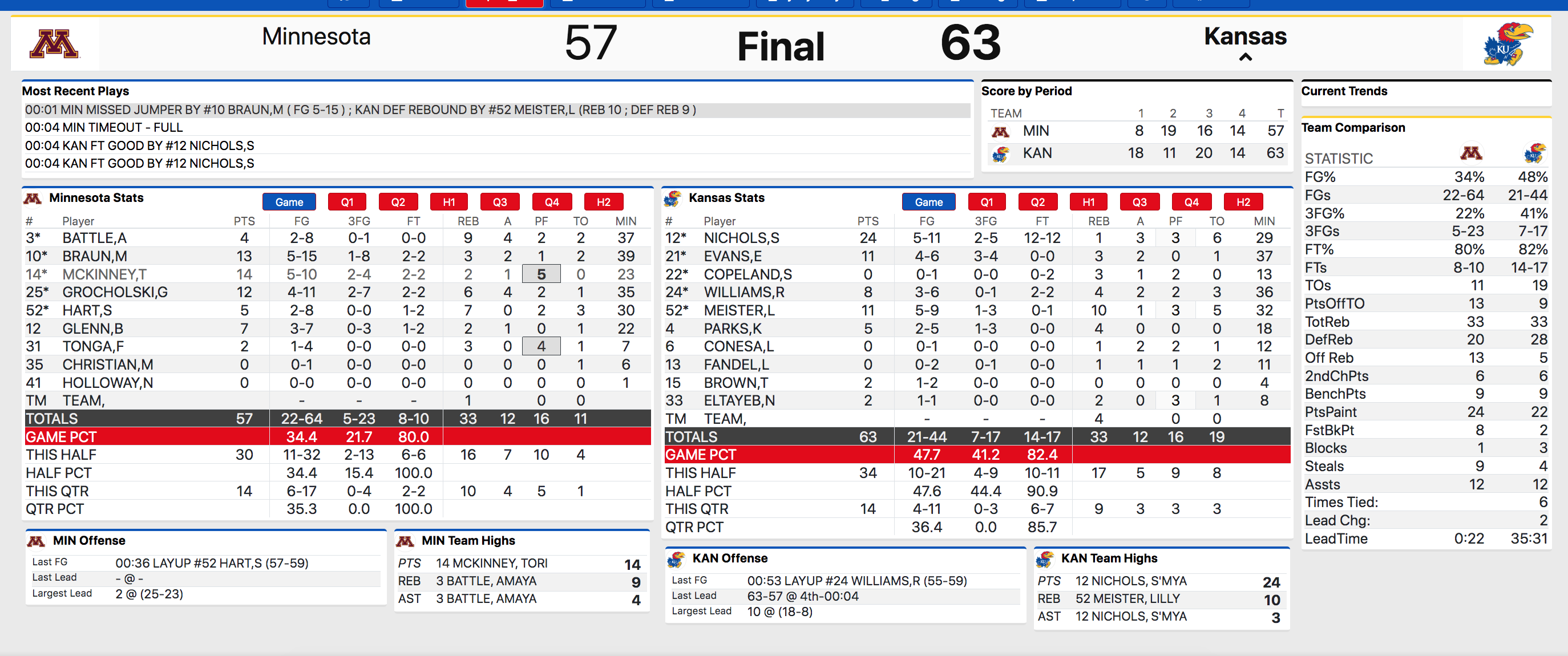 That’s the whole reason she left IU to come to Kansas. And to be able to reap the benefits of big minutes against and old friend was the whipped cream on top of Wednesday night’s Golden Gopher shake.