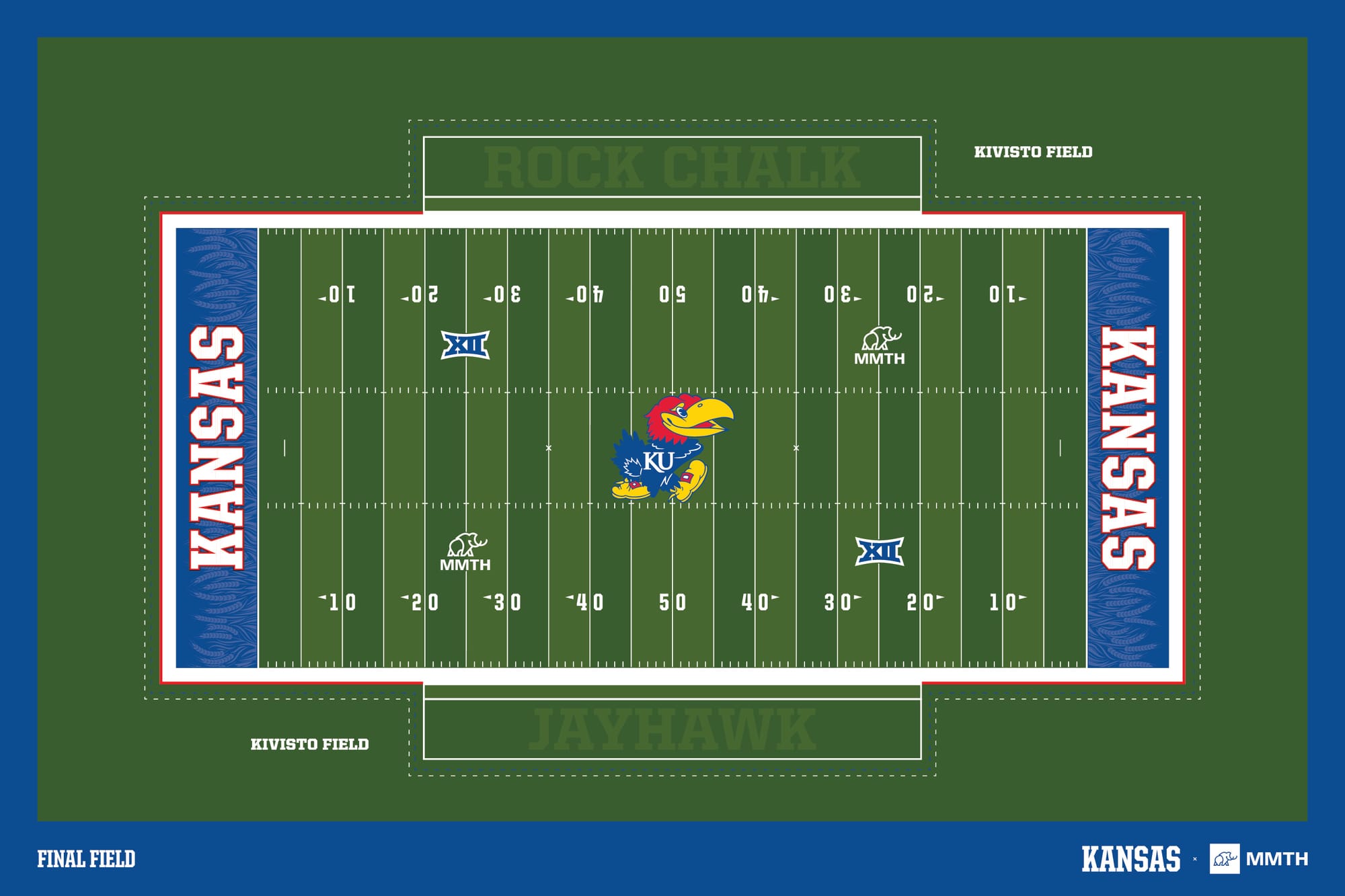 • Big 12 and MMTH logos at the 25 yard lines on each end
