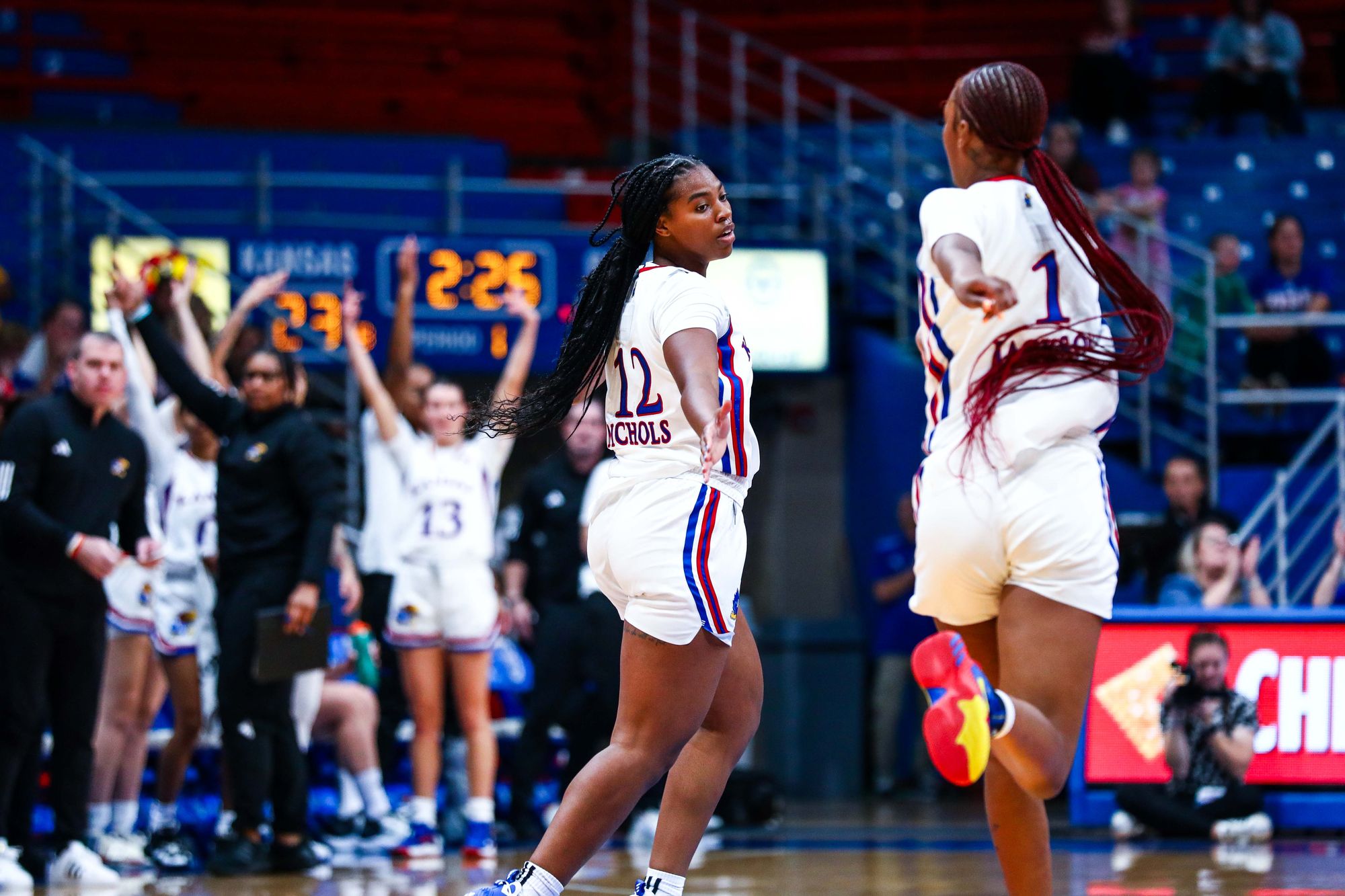 Enough to make an in-game gaffe seem more laughable than devastating. Midway through the second quarter, after KU center Taiyanna Jackson blocked a shot down low, Nichols, who had her back to the play, grabbed the bouncing ball, stepped out of bounds underneath the basket and inbounded the ball to a teammate.