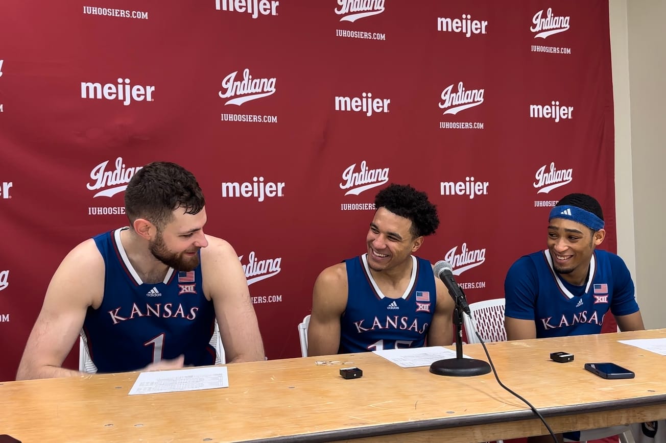 Bloomington, Indiana — Following Saturday's come-from-behind, 75-71 win by No. 2 Kansas over Indiana at Assembly Hall, the Jayhawks' three most experienced players met with the media to break down the victory.