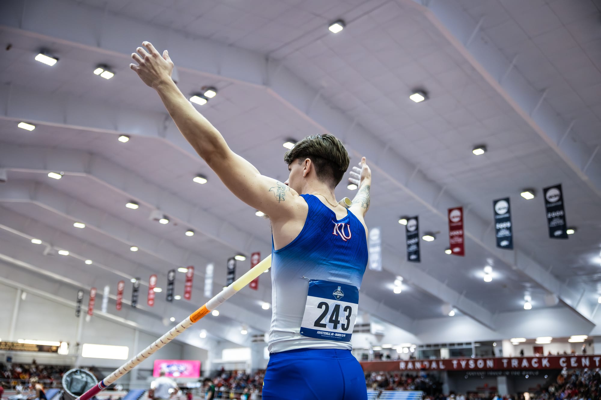 Zach Bradford currently has that at 5.81 meters, just ahead the two current Jayhawks.